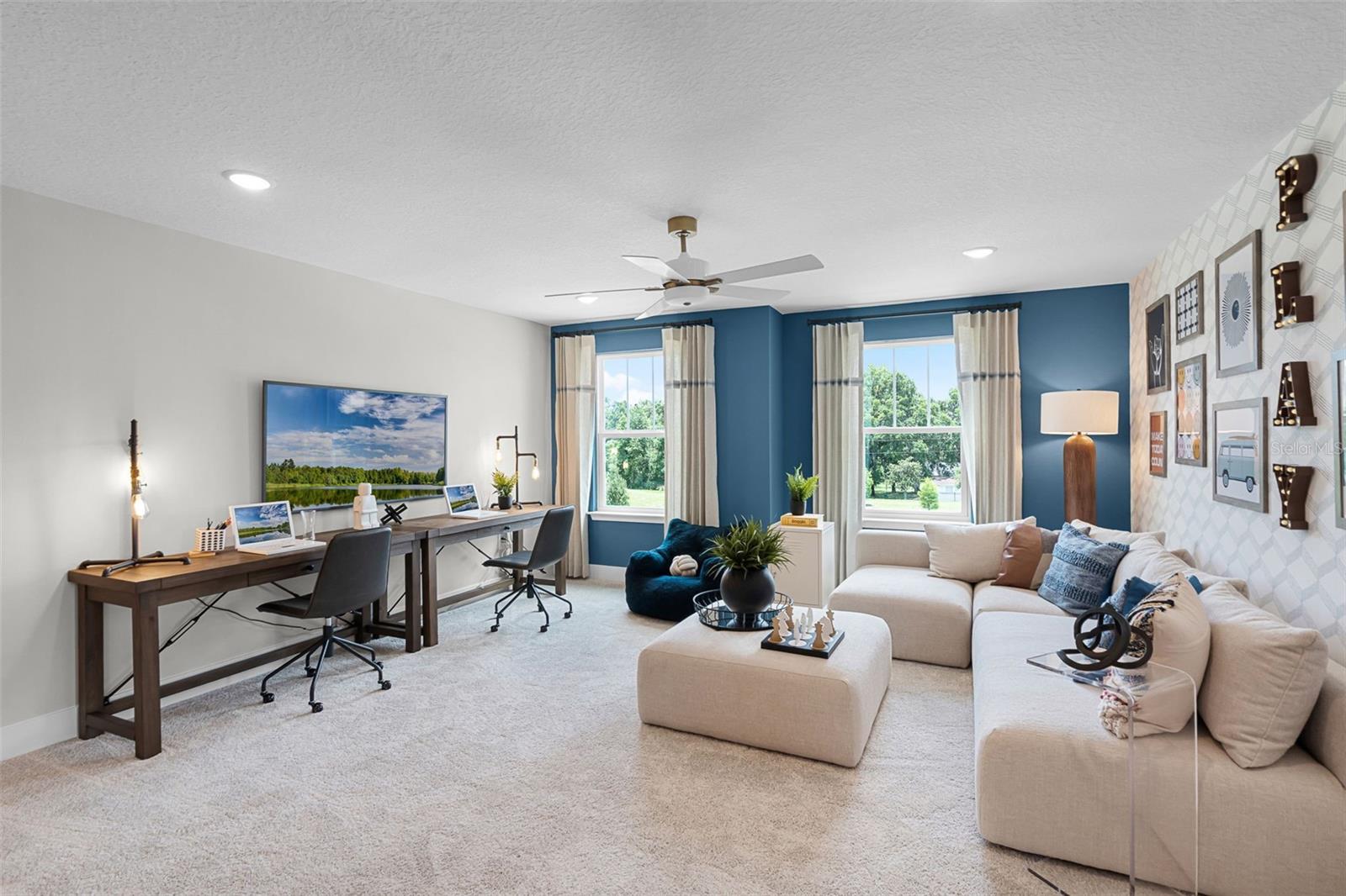Under Construction. Ready Now! Plus ask about our closing costs savings. NO CDD FEE. Stunning Designer Paxton Plan with 3-Car Garage in Eden Crest! Introducing a thoughtfully upgraded Paxton floor plan by Hartizen Homes, featuring 5 bedrooms, 4 full bathrooms, a spacious loft, and over 3,000 square feet of elegant living space. This home blends comfort, function, and luxury with its open-concept layout and carefully selected high-end finishes. Enjoy a gourmet kitchen with painted Linen cabinets, navy island accent, Quartz countertops (Ethereal White), stainless steel appliances, and double ovens. The expanded great room includes added LED lighting, perfect for entertaining or relaxing. Retreat to the luxurious owner's suite with upgraded windows, a spa-inspired bath with freestanding tub and walk-in shower, and a large walk-in closet. DISCLAIMER: Photos and/or drawings of homes may show upgraded landscaping, elevations and optional features that may not represent the lowest priced homes in the community. Pricing, Incentives and Promotions are subject to change at anytime. Promotions cannot be combined with any other offer. Ask the Sales and Marketing Representative for details on promotions.