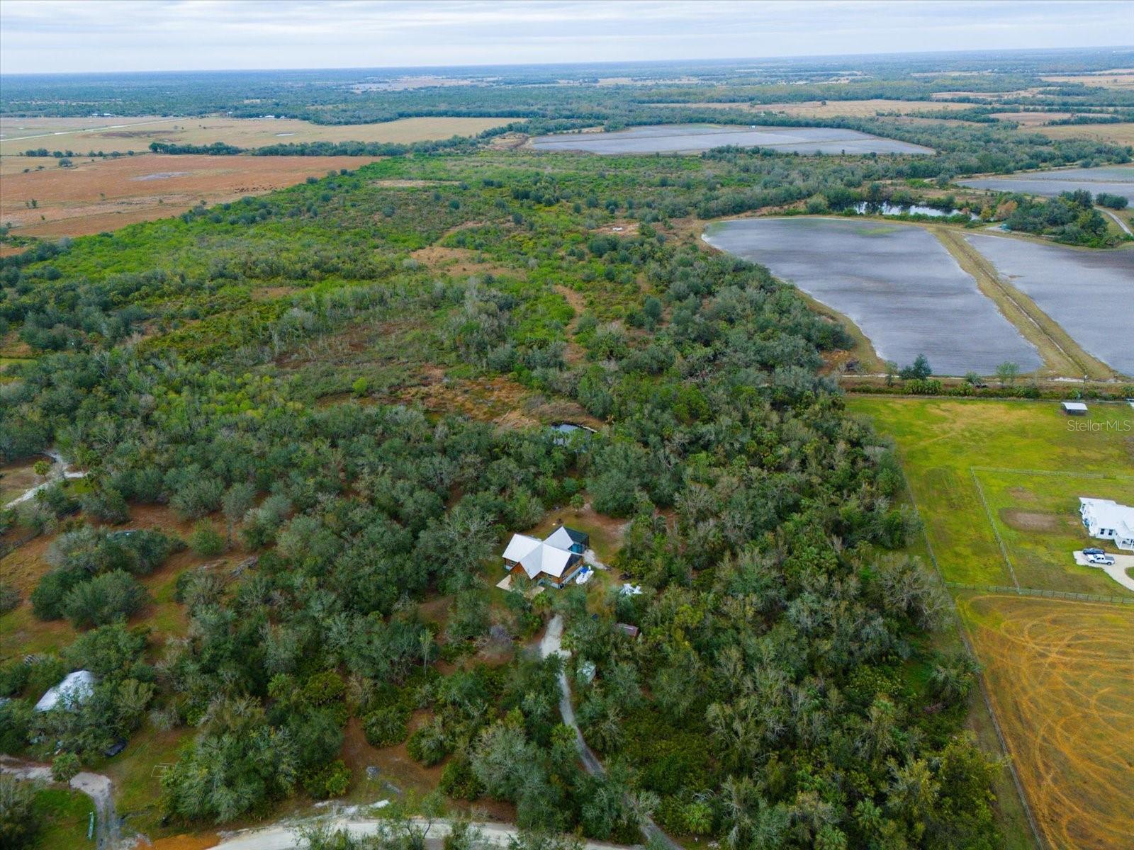 Discover a truly extraordinary property with this custom-built log cabin, a rare gem in the heart of Florida. Set on nearly six acres of peaceful countryside, this home offers the perfect combination of privacy, tranquility, and modern conveniences, all while being just minutes from town. You are greeted by a covered front porch providing a cozy space to unwind and take in the surrounding nature. Inside, the open floor plan showcases soaring cathedral ceilings, creating a bright and spacious living area. This 3-bedroom, 2-bathroom home is thoughtfully designed, featuring a primary suite with a private ensuite bathroom and two additional bedrooms that share a convenient Jack and Jill bath. Finished loft adds additional usable interior space; could be a kids play area, storage, or office! The kitchen is a chef's delight with stainless steel appliances, ample workspace, and easy flow to the dining area, where double French doors lead to the screened-in lanai. A laundry room with built-in cabinets and counter space adds practicality to the home. Outdoors, the heated pool, complete with a new salt cell generator, is the centerpiece of the expansive lanai, offering an ideal spot for relaxation and entertaining. Beyond the pool, the property features a stocked pond with a dock, perfect for fishing or simply enjoying the serene water views, all while two sheds provide extra storage or workspace. Modern upgrades and amenities include a whole-house reverse osmosis system, a grinder pump septic system, and a new pressure tank for the well. The home is built to last with hurricane impact windows and a durable metal roof. This is not a kit home but a one-of-a-kind masterpiece, crafted with care and distinction. Offering abundant wildlife, scenic views, and unmatched tranquility, this property is the ultimate retreat. Schedule a private showing today to experience the unique beauty of this custom log cabin.