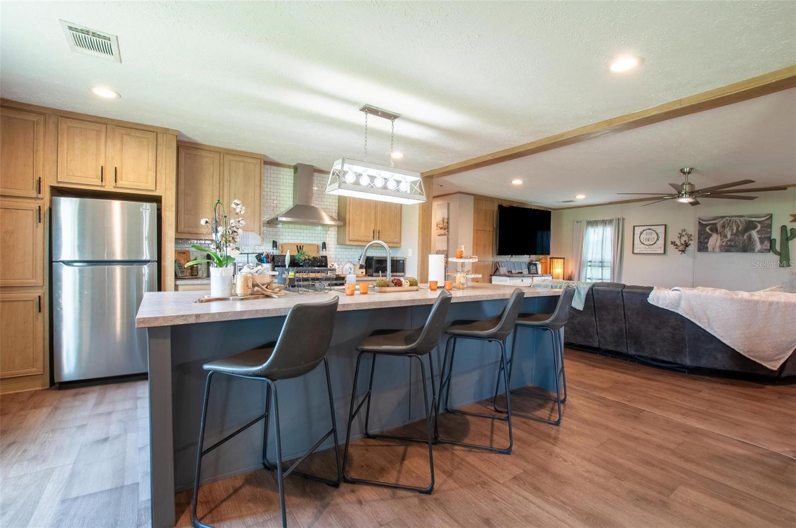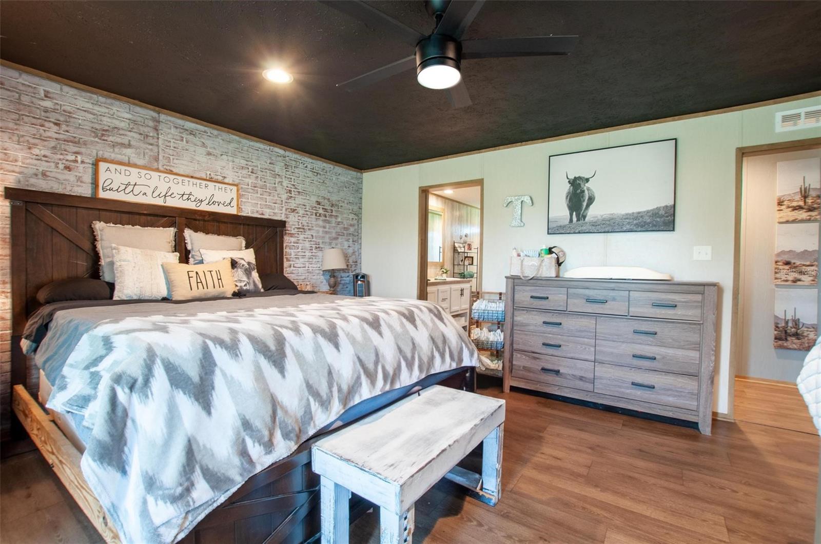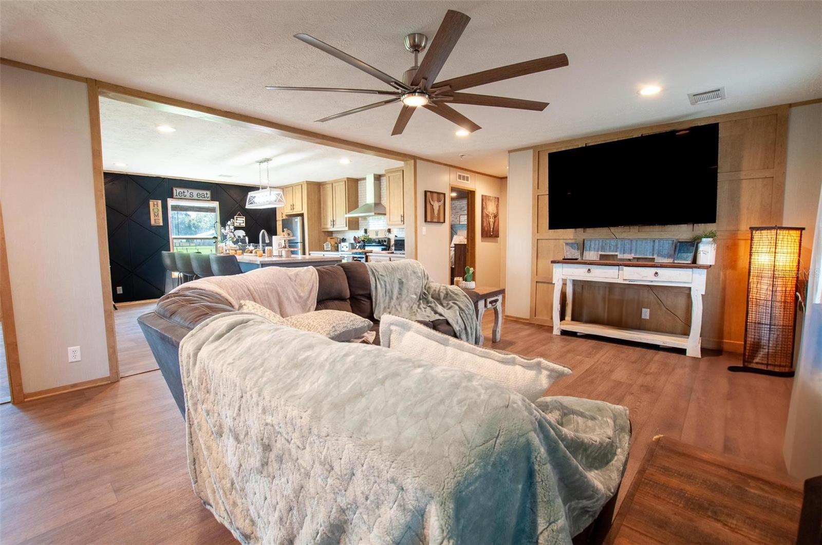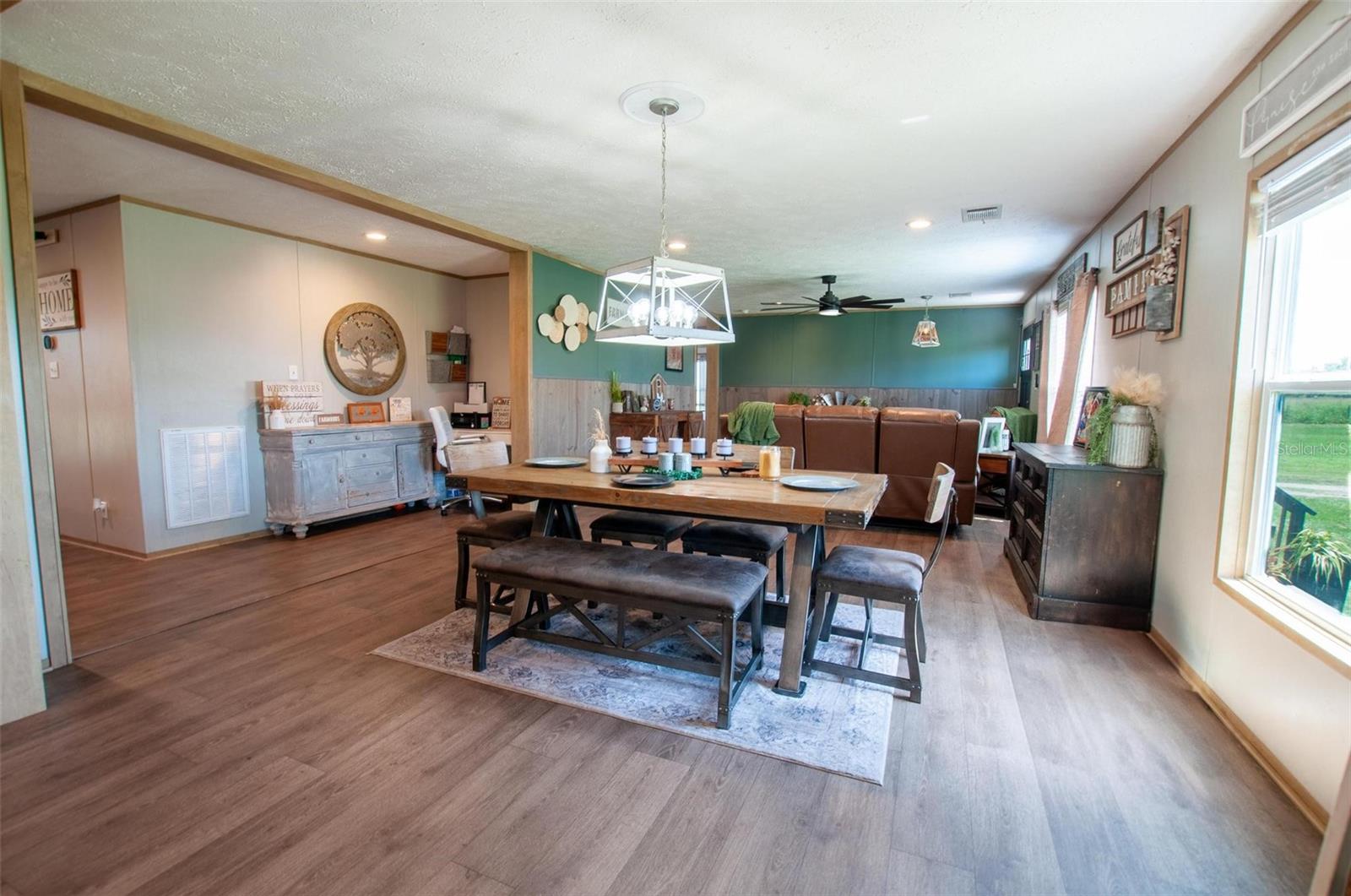 Welcome to 4951 SE Airport Road! Discover the perfect blend of modern comfort and rural charm with this beautifully updated 2023 manufactured farmhouse situated on a fully fenced 5.9-acre spread in desirable DeSoto County, Florida. Step inside to find a fresh, stylish interior featuring updated and customized finishes, a spacious open floor plan, and modern farmhouse touches throughout. The light and bright living area has a seamless flow from living and dining into the chef’s kitchen and additional family room. The kitchen boasts a large island with seating, stainless steel appliances, and plenty of space for entertaining and family meals. The primary suite is a private retreat with a luxurious en-suite bathroom featuring a large walk-in closet and complete with double vanities, and walk-in shower. Three additional bedrooms and the second full size bathroom can be found on the opposite side of the home to provide the desirable split bedroom design. Each of the bedrooms are of a generous size and provide plenty of room for multiple furniture sets and styles. Outside, the property is thoughtfully set up for agricultural use or recreational enjoyment. It includes a large pole barn with RV hookup, fenced pastures ready for all types of livestock one paddock supports a pond for livestock, irrigation or relaxation. The home has also just had an extensive revamp featuring brand new siding, skirting, paint, woodwork, floors and water softener system. This home is ideal for those seeking a large home with hobby farm just bring your livestock and enjoy country living at its best because this is the Florida countryside lifestyle you’ve been looking for. Schedule your private showing today and come experience the freedom and beauty of rural DeSoto County!