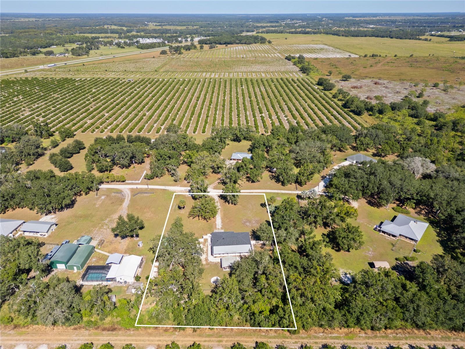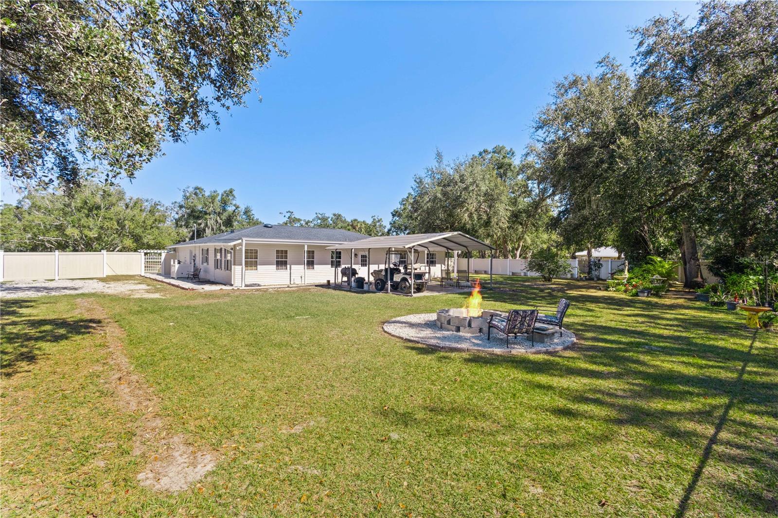 Welcome to your own slice of Southern serenity, where charm and comfort blend beautifully under a brand-new 2024 roof. Tucked away on 1.5 acres of peaceful Florida countryside, this charming retreat sits at the end of a private road on a quiet cul-de-sac surrounded by orange groves. Step onto the welcoming front porch—the perfect spot to sip your morning coffee and take in glowing sunrises or unwind as the sky turns gold at sunset. Inside, over 2,558 square feet of comfortable living space unfolds, featuring three spacious bedrooms, two inviting living areas, and a versatile bonus room that could easily serve as a fourth bedroom, home office, den, or even a private retreat off the master suite. The heart of the home is the expansive kitchen, boasting abundant cabinetry, generous counter space, and classic tile accents that add a timeless touch. The adjoining dining area invites cozy weeknight dinners or weekend family gatherings. The master suite is a true escape, complete with an updated bath and a modern walk-in shower. Each bedroom offers walk-in closets for ample storage and comfort. In the bonus room, a wood-burning fireplace adds warmth and ambiance—perfect for relaxed evenings or lively game nights. Step outside and you’ll discover your own backyard oasis, ideal for effortless indoor-outdoor living. Host weekend barbecues beneath the wide-open Florida sky or gather around the firepit as the sun sets, enjoying the peaceful crackle of the flames and the quiet sounds of country life. Enjoy the peace of the garden area or relax under the shade of the covered area. For those who love space and versatility, the property also includes a massive 20x45 detached garage—perfect for RV parking, a workshop, or all your recreational gear. Additionally, the backyard also has a large shed tucked behind the garage for even more storage. From the cozy fireplace to the inviting firepit and sprawling yard, this home embodies the warmth of Southern charm with all the comfort and convenience you’ve been searching for. Come see for yourself why this is more than just a home—it’s a lifestyle.
