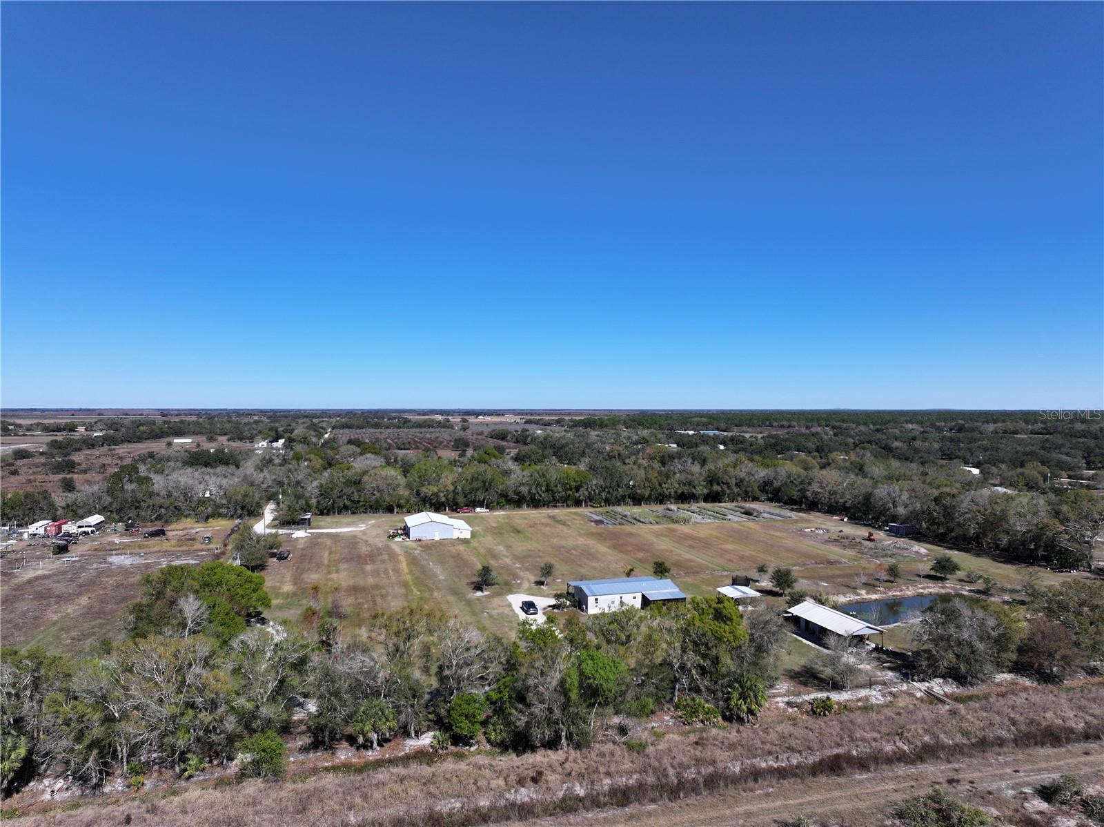 Discover the perfect blend of space, functionality and privacy on this fully fenced 10-acre property featuring 4-bedroom, 2 bath home designed for both comfort living and working from home. The residence offers a welcoming covered porch and a rear screened lanai, ideal for enjoying peaceful outdoor views. The interior offers an open floor plan with an island kitchen and split bedrooms. The property is thoughtfully improved with a detached covered parking area, pond and chicken coop, making it well-suited for those seeking a rural lifestyle with modern conveniences. A standout feature is the impressive 40 x 60 workshop with three bay doors, perfect for equipment, storage or business use. Attached to the workshop is a 16 x 40 home office with its own kitchen and bathroom, providing a private and functional workspace or guest suite. The right corner of the property includes a nursery already started with an irrigation system in place, offering excellent potential for agricultural or hobby use. Located at the end of the road, this property provides exceptional privacy while still offering ample space for a variety of uses. Make an appointment for your private viewing today!