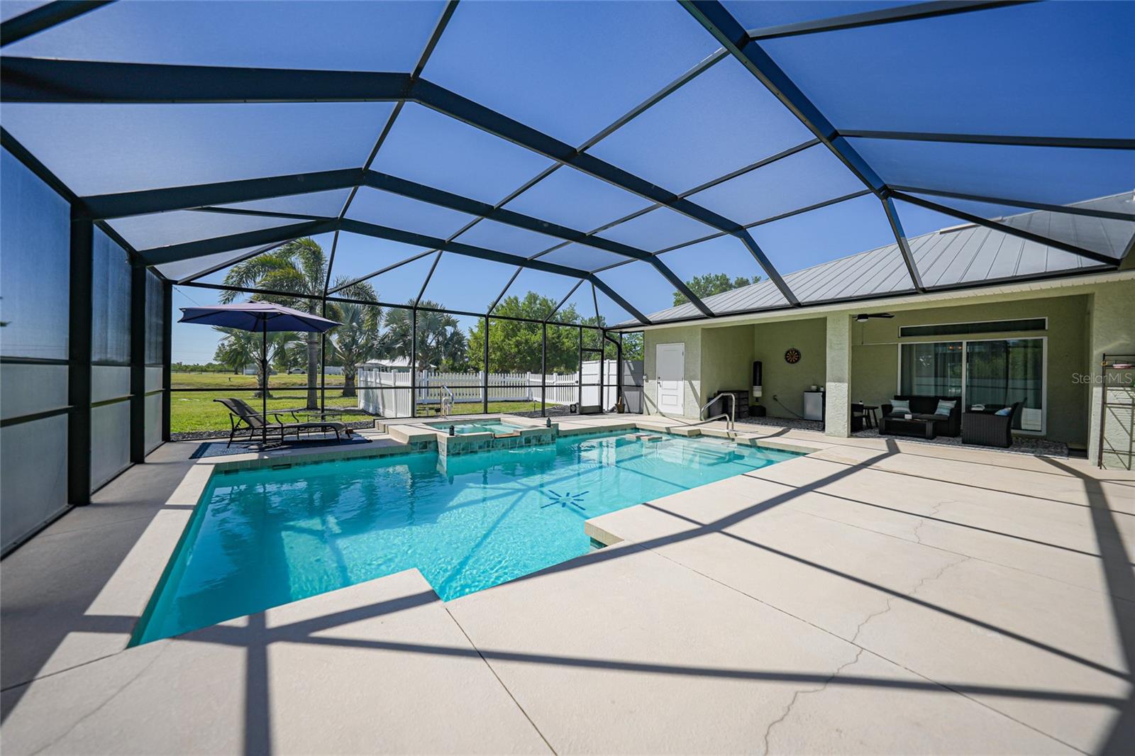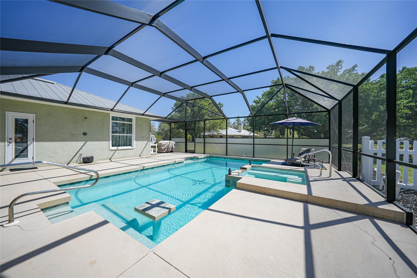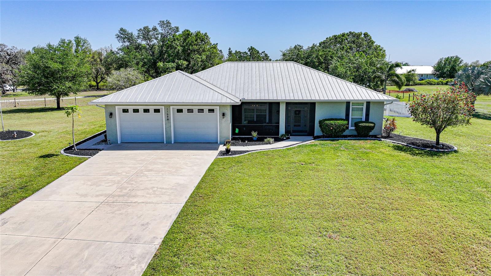 This custom-built beauty isn’t just a house—it’s a lifestyle! Sitting on nearly three-quarters of an acre right across from an incredible golf course, this four-bedroom, three-bath home has all the space, style, and storage you could ask for. With a newly added screened-in front porch, you can sip your morning coffee while taking in the peaceful Florida breeze. Step inside to a light-filled living room where sliders open straight to your backyard oasis. The open floor plan flows into a cozy family room and a kitchen that’s truly the heart of the home. Whether you’re whipping up a gourmet meal or just grabbing a snack, you’ll love the huge island, breakfast bar, wood cabinets, stainless steel appliances, and walk-in pantry. The primary suite is your personal retreat, featuring walk-in closets, dual sinks, a walk-in shower, and plenty of storage. The three guest rooms are just as spacious, and one even comes with a Murphy bed—perfect for hosting without sacrificing space. A guest bath conveniently opens to the lanai, making poolside living even easier. Speaking of the pool—it’s the kind you dream about! Sparkling and inviting, it comes with a spa, outdoor shower, and a covered lanai where you can kick back and relax year-round. Plus, the brand-new pool cage (2024) means everything is fresh and ready to go. For those who need extra storage, the oversized two-car garage includes a tandem bay, perfect for your golf cart, tools, or weekend adventure gear. And if you have furry family members, they’ll love the dedicated dog run in the side yard. With a metal roof, a newer HVAC system (2020), and a prime location near golfing, dining, fishing, and transportation, this home checks every box. Did I mention the home has all new flooring with extra soft and squishy carpet in the bedrooms??? This home is fun, functional, and full of character— it's just waiting for you to make it your own! Don’t wait too long to see it. Homes like this don’t last!