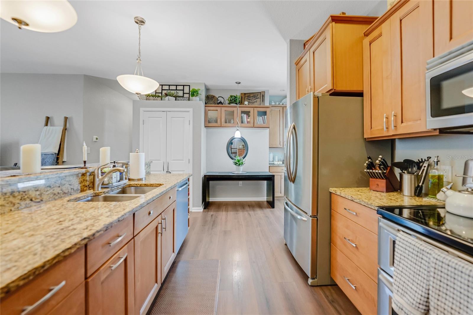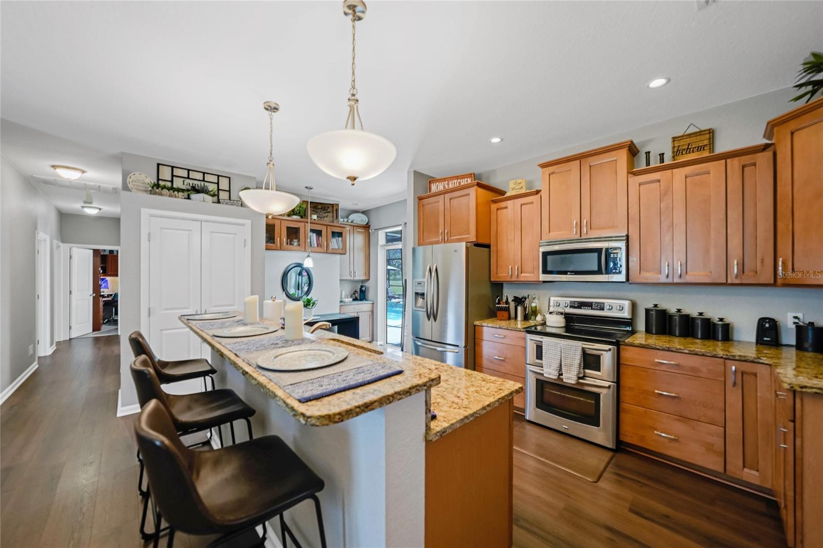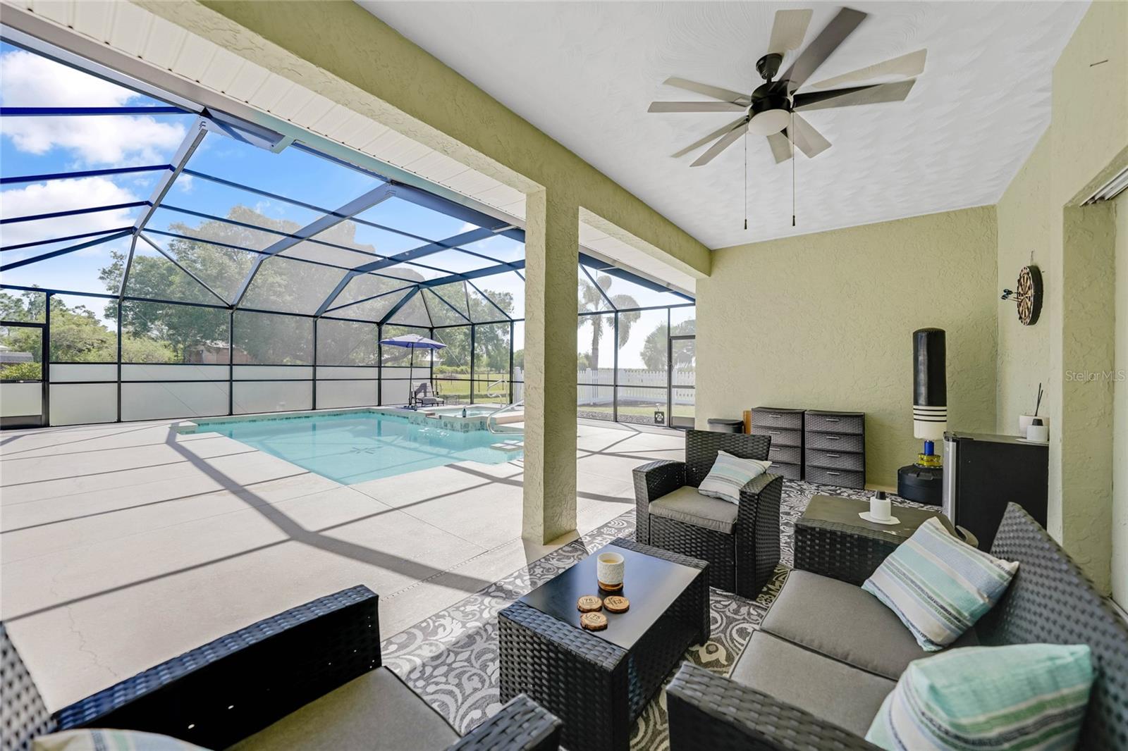 This custom-built beauty isn’t just a house—it’s a lifestyle! Sitting on nearly three-quarters of an acre right across from an incredible golf course, this four-bedroom, three-bath home has all the space, style, and storage you could ask for. With a newly added screened-in front porch, you can sip your morning coffee while taking in the peaceful Florida breeze. Step inside to a light-filled living room where sliders open straight to your backyard oasis. The open floor plan flows into a cozy family room and a kitchen that’s truly the heart of the home. Whether you’re whipping up a gourmet meal or just grabbing a snack, you’ll love the huge island, breakfast bar, wood cabinets, stainless steel appliances, and walk-in pantry. The primary suite is your personal retreat, featuring walk-in closets, dual sinks, a walk-in shower, and plenty of storage. The three guest rooms are just as spacious, and one even comes with a Murphy bed—perfect for hosting without sacrificing space. A guest bath conveniently opens to the lanai, making poolside living even easier. Speaking of the pool—it’s the kind you dream about! Sparkling and inviting, it comes with a spa, outdoor shower, and a covered lanai where you can kick back and relax year-round. Plus, the brand-new pool cage (2024) means everything is fresh and ready to go. For those who need extra storage, the oversized two-car garage includes a tandem bay, perfect for your golf cart, tools, or weekend adventure gear. And if you have furry family members, they’ll love the dedicated dog run in the side yard. With a metal roof, a newer HVAC system (2020), and a prime location near golfing, dining, fishing, and transportation, this home checks every box. Did I mention the home has all new flooring with extra soft and squishy carpet in the bedrooms??? This home is fun, functional, and full of character— it's just waiting for you to make it your own! Don’t wait too long to see it. Homes like this don’t last!