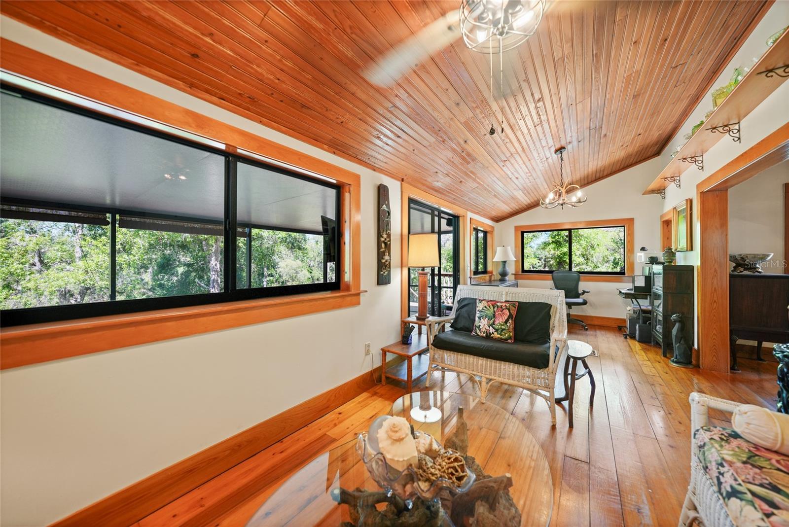 Tucked away under a lush canopy of trees, this one-bedroom, two-bathroom hidden bungalow isn’t just a home—it’s an escape from the ordinary. With over 300 feet of Peace River frontage, this is where adventure meets serenity, where mornings start with the sound of the river and nights end under a sky full of stars by the fire pit. Step inside, and you’re wrapped in the warmth of real cypress wood—from the floors to the ceilings to the trim. The open kitchen is a dream, with stainless steel appliances and endless views to inspire your next riverfront meal. The bedroom is cozy, the bathroom is perfect, and as a bonus, a loft space is ready to be a guest retreat, a storage nook, or your personal hideaway. Outside, nature does what it does best—stuns. A winding driveway leads you in, a pond with a fountain sets the scene, and steps down to the riverbank give you instant access to some of the best kayaking, canoeing, and fossil hunting around. Got gear? No problem—the detached outbuilding is ready for your tools and river toys. And let’s talk porches—a wraparound for rocking chairs and a screened-in back porch for slow, breezy dinners. At just over 2 acres, the wildlife is as abundant as the peace you’ll find here. This isn’t just a cabin. It’s an experience. A retreat. A place where life slows down and adventure picks up. Ready to disappear into your own riverside paradise? (Recent updates to the home include: 2022 A/C and ductwork, 2022 water heater, 2024 house pump, 2023 dishwasher, 2024 microwave, 2022 pressure tanks, 2022 lift station pump, 2024 shower doors, 2024 three ceiling fans)