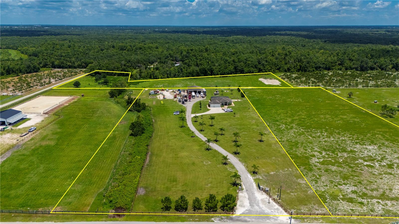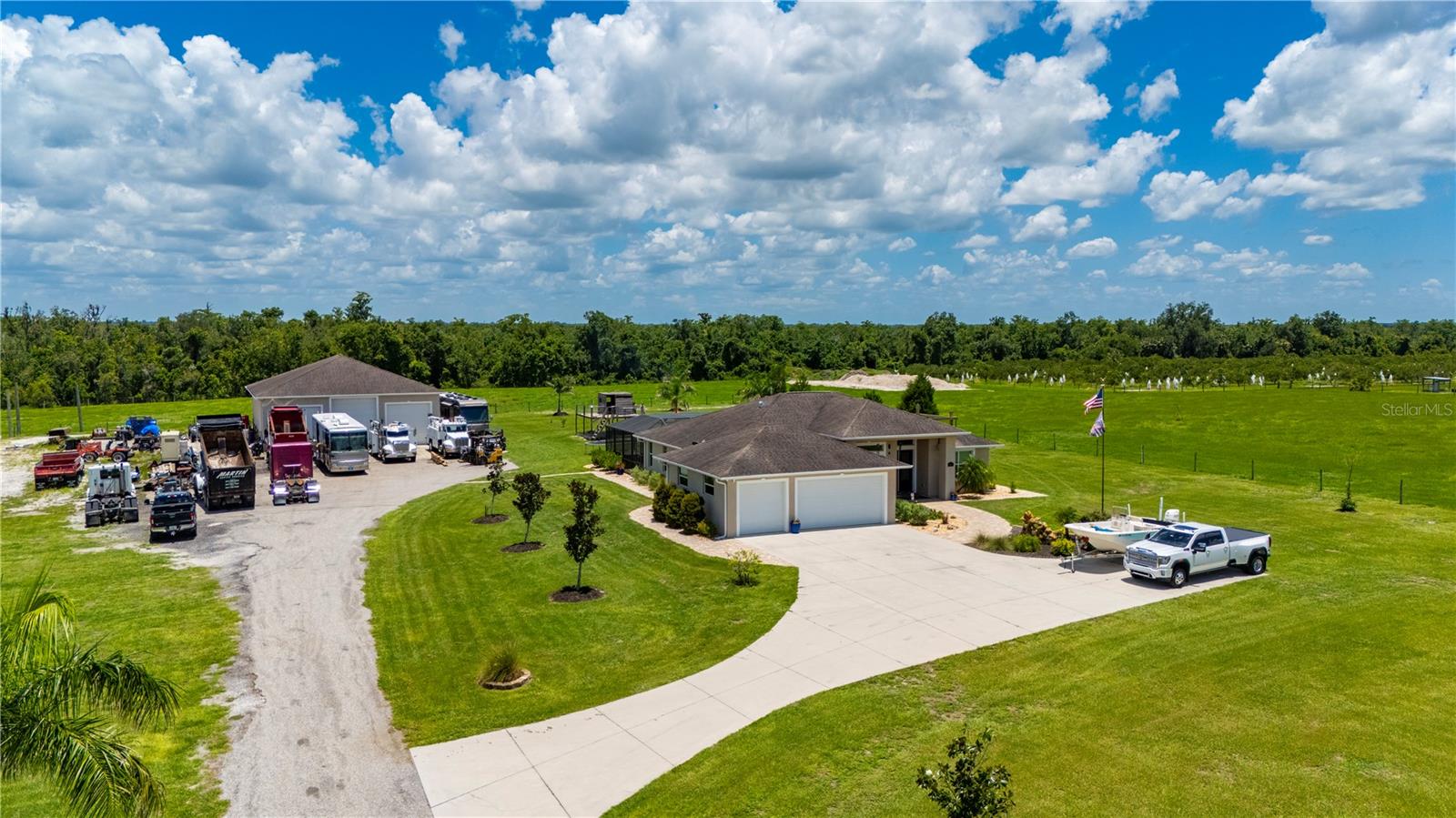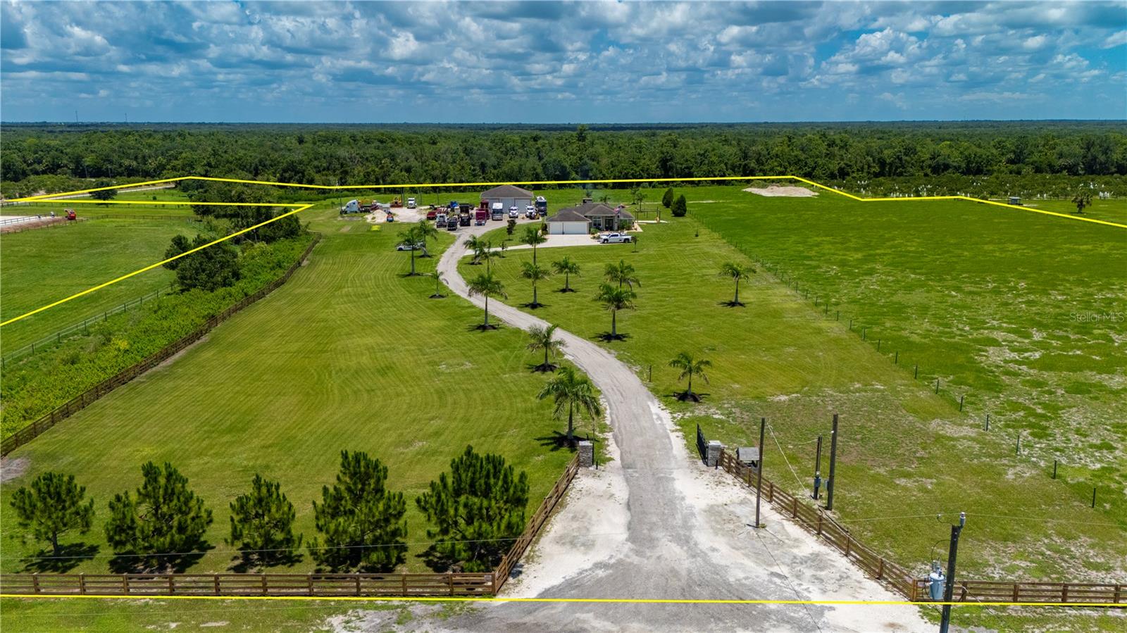 Endless Potential on 16+ Acres! This one-of-a-kind property with a thoughtfully crafted home, a fully equipped outbuilding, and over 16 acres of fenced pasture backed by a nature preserve, offers space to live, work, and create on your terms. 2017 custom-built home offers over 2,000 sqft of solid construction, with every detail built for durability and comfort. All block cores were rodded and poured, with impact-rated windows and sliders throughout. Inside, the heart of the home is a stunning kitchen outfitted with custom-crafted Arlington Cherry cabinetry, stainless steel appliances, a built-in cooktop, and cabinet-mounted convection oven and microwave. Plus, a whole-home reverse osmosis water system. The home’s layout features 3 bedrooms, 2 bathrooms, and an office/den, along with wide 9-foot handicap-accessible doors and tray ceilings in the living and main bedrooms. Custom matching built-ins in the office, dining, mudroom, and laundry space add both style and storage. Wood-plank style tile flows throughout, and two of the bedrooms open directly to the lanai. Outside, a heated saltwater pool and freestanding hot tub create a private oasis overlooking scenic, protected land-an ideal spot to unwind or entertain under open skies. And then there's the shop! The 46x56 commercial-style building is a true asset, built with the same uncompromising quality: solid concrete walls, insulated and air-conditioned interior, 16-foot ceiling with attic storage, and full poured slabs around the exterior. It includes RO water, 350 amp electric service which includes 50 AMP RV Service, commercial overhead doors, H/O lighting, an air compressor system, and even a 12,000 lb vehicle lift. With three-phase electric available at the property line, it’s built to handle serious equipment, fabrication, automotive, or creative enterprise. Other highlights include two 6inch wells, a full security system with audio/video recording, lighted soffits, and frontage on SW Brewer Ave across all three parcels-giving you options for access, expansion, or future development. Whether you're an entrepreneur, a homesteader, or simply seeking room to grow, this property stands ready with unmatched infrastructure, peaceful surroundings, and the freedom to make it your own.