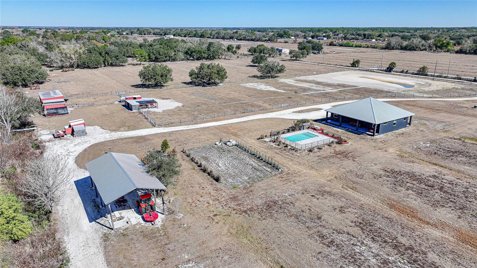 Welcome to the End Of The Road Farm. This is NOT a hobby farm. This is a turn-key, boots-on, coffee-on-the-porch, eggs-before-emails kind of property. Custom built in 2021 and lovingly owned by one owner, this 15-acre homestead is being sold mostly furnished, which means you can arrive with your suitcase and start living the life immediately. Let’s start outside, because the land is doing the absolute most. You’ve got a livestock barn with power, a shipping container with power, A/C, and two generators, a 10x20 greenhouse with irrigation, multiple chicken coops including a brooder, and a well house featuring a whole-farm reverse osmosis system plus an outdoor shower. There’s a massive 24x48 pole barn with RV hookup, the beginnings of a thoughtfully planned food forest with lemongrass, herbs, passion fruit, dragon fruit, and sea grape, a 40x80 irrigated garden, and so much open land it’s currently used as a hay field. Add in a 2-acre pond, underground power, power run throughout the property, and Starlink equipment already in place, and this farm is built for real living, not just dreaming. And yes. The animals come with it. Four cows and over 30 chickens are already home. Now let’s talk about the house, because it is absolutely the star of the show. The custom home features a gorgeous open floor plan with soaring ceilings that immediately make the space feel grand yet welcoming. The kitchen is a dream come true with hand-selected hickory cabinetry, granite countertops, and a classic farmhouse sink that fits the lifestyle perfectly. Three bedrooms and two bathrooms give everyone room to breathe, and the large utility room makes everyday life actually functional. The primary suite is a true retreat with two walk-in closets and a supersized bathroom featuring a walk-in shower with dual shower heads. It’s the kind of space that makes mornings slower and evenings quieter. Then there’s the backyard oasis. An inground heated pool, beautifully landscaped and surrounded by a large travertine pool deck, gives you a resort-level place to unwind after a long day on the land or to host unforgettable gatherings under the stars. This property isn’t just a home. It’s a vision already brought to life. If you’ve been waiting for a farm that actually works, one that’s beautiful, intentional, and ready on day one, this is it. (There is so much more to love about this property and a full marketing brochure is available upon request.)