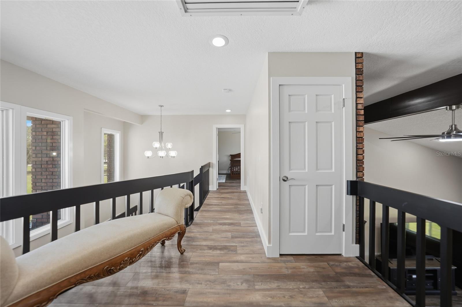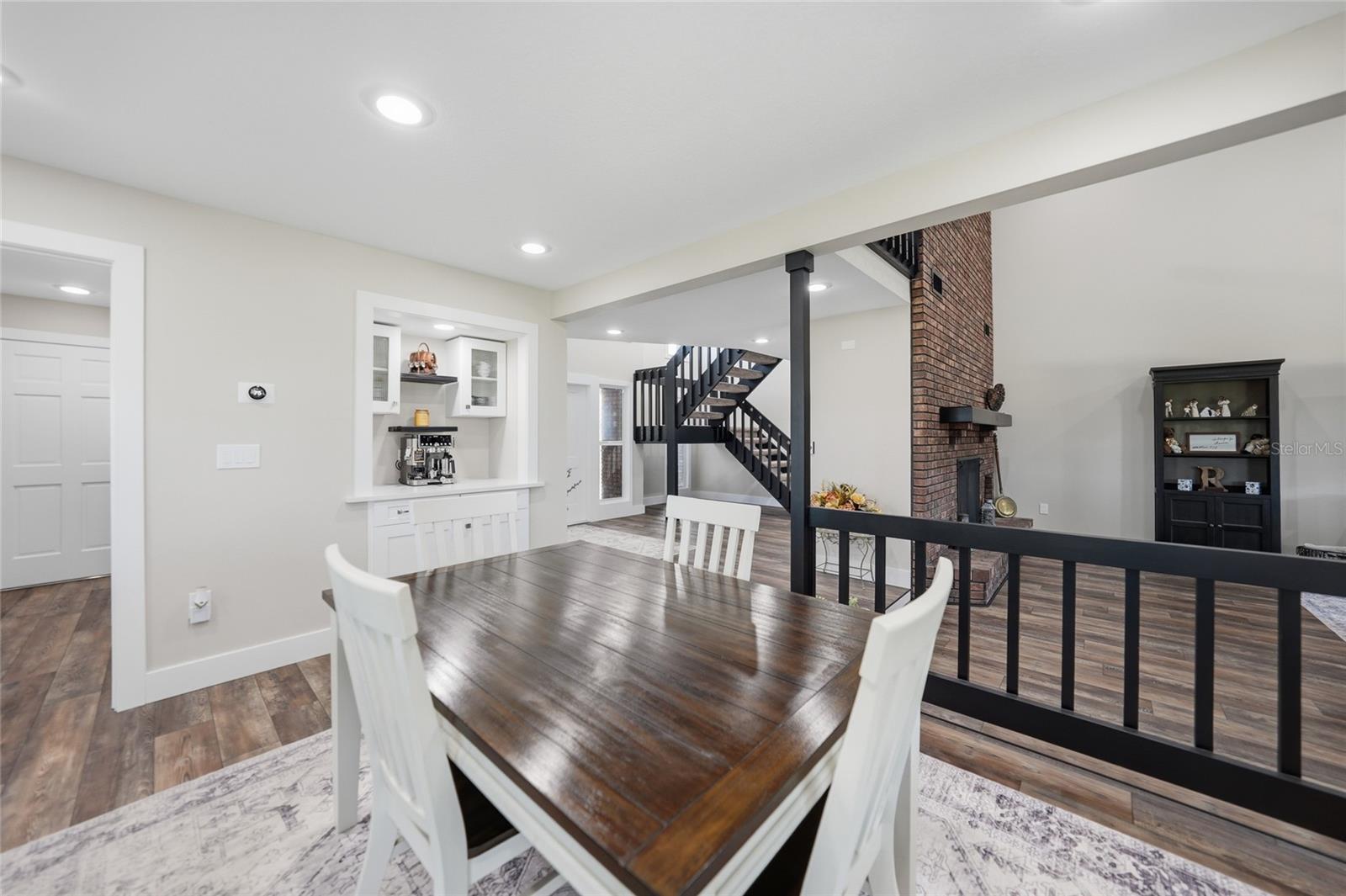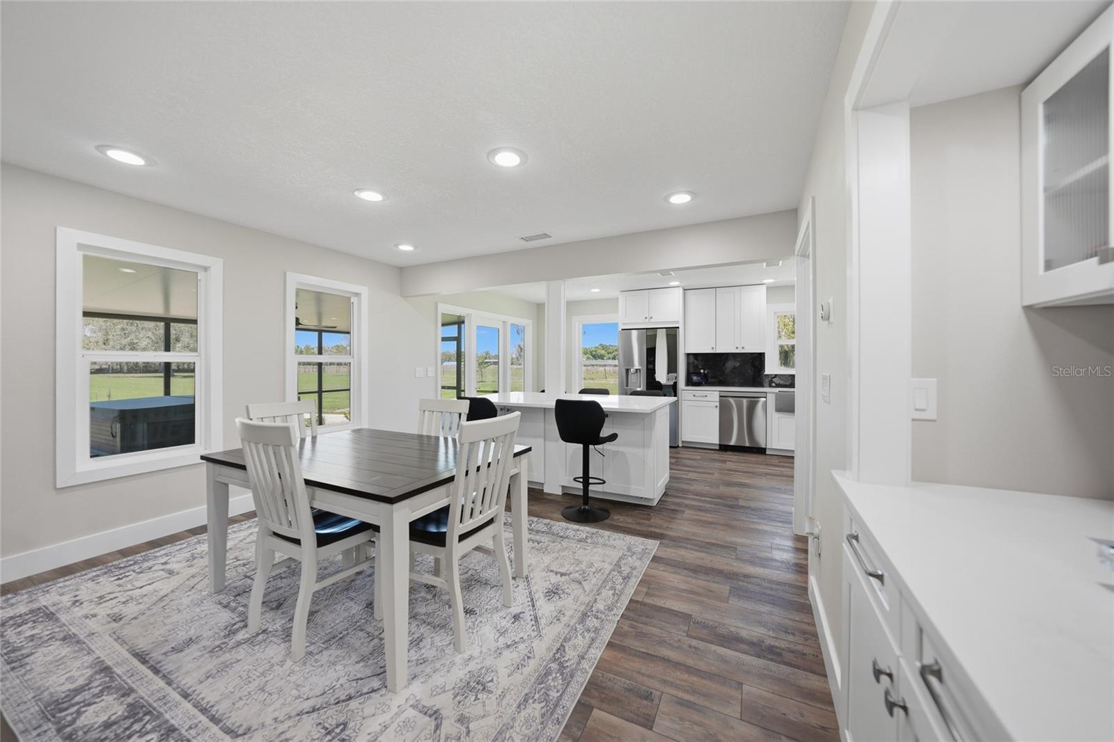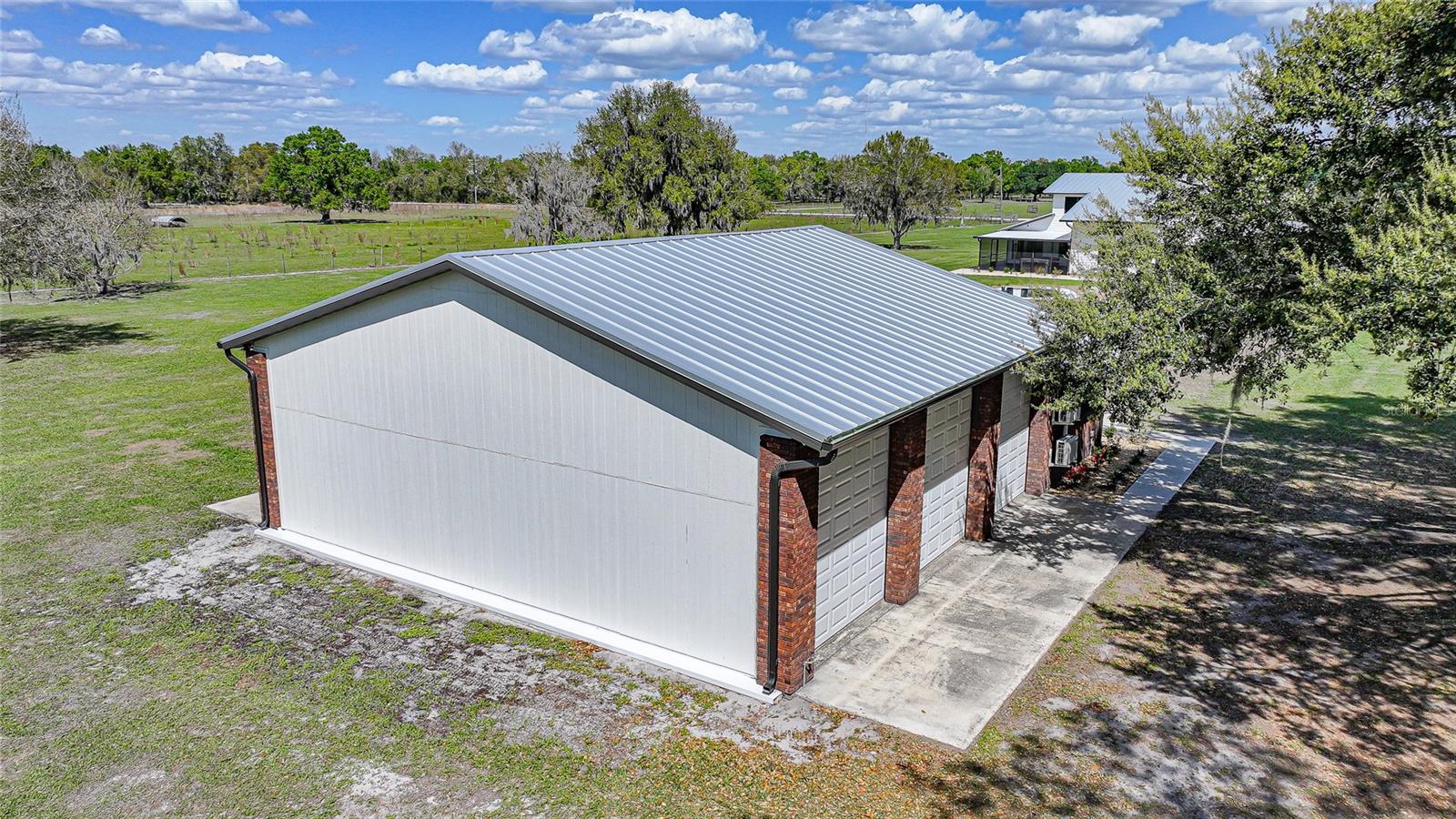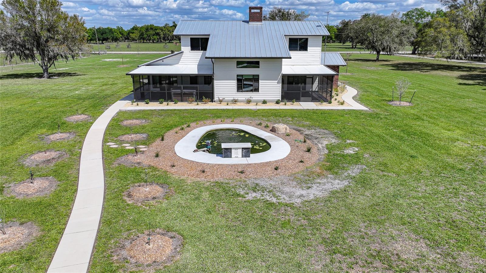 Welcome to your private 5 acre estate, where luxury meets functionality and every detail has been thoughtfully designed to impress. As you arrive, a long concrete driveway leads you to this stunning two-story brick home, showcasing exceptional curb appeal and a welcoming covered front porch. Step through the grand double doors into an impressive foyer featuring soaring ceilings and beautiful luxury vinyl flooring that flows throughout the main living areas. The heart of the home is the meticulously updated kitchen, perfectly suited for both everyday living and entertaining. It boasts quartz countertops, stainless steel appliances, pot filler, farmhouse sink, an oversized gas range with hood vent, and a convenient drawer microwave. The expansive double sided island offers ample seating, while the walk-in pantry is fully equipped with additional cabinetry, a second refrigerator, and freezer. Just off the kitchen, the dining area features a built-in coffee bar, creating a perfect space to start your day. The living room is equally impressive with its soaring ceilings, abundant natural light, and cozy wood burning fireplace. Each downstairs room offers direct access to the surrounding porches, allowing you to fully enjoy the peaceful views of your property. The spacious primary suite is located on the first floor and serves as a private retreat, complete with a large walk-in closet and a luxurious en suite bathroom featuring a standalone soaking tub and walk-in shower. The suite also includes its own private porch, perfect for relaxing in tranquility. Upstairs, you’ll find two generously sized guest bedrooms, each with oversized closets, connected by a walkway that overlooks both the living room and the grand entryway below. Additional interior features include a large laundry room and a versatile bonus space connected to the attached garage, offering endless possibilities for storage, a home office, or hobby area. Step outside and follow the beautifully landscaped concrete pathway past a serene koi pond with a filtration system, leading you to the impressive detached garage and potential in-law suite or man cave. The expansive 6+ car garage features five 11' foot garage doors and an open layout ideal for car enthusiasts, workshops, or a hobby farm setup, garage is accessible using the deeded side road/easement. Within the garage, the in-law suite offers two rooms, is fully air-conditioned, and includes rough-in plumbing for a future kitchenette and bathroom—ready for your customization. Built to stand out, this property also features a durable metal roof, hurricane impact windows, propane tankless water heater, gas dryer, wired for a generator and countless upgrades throughout. This one-of-a-kind estate offers space, luxury, and versatility all in one. Call today to schedule your private tour!
