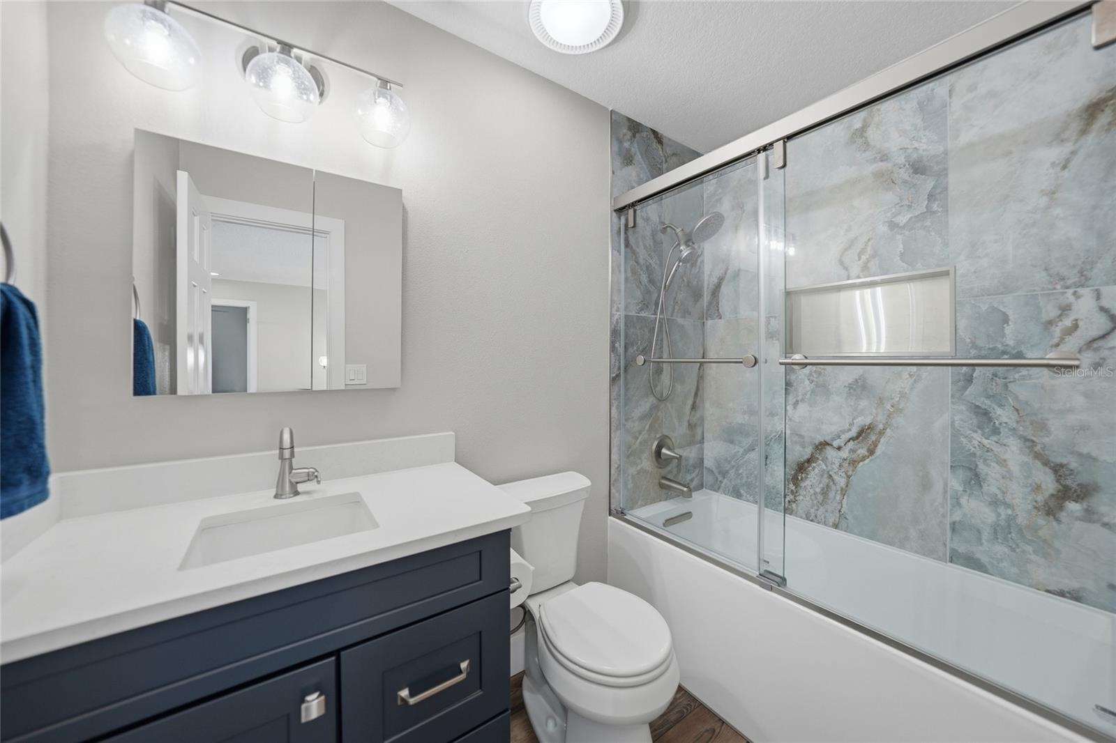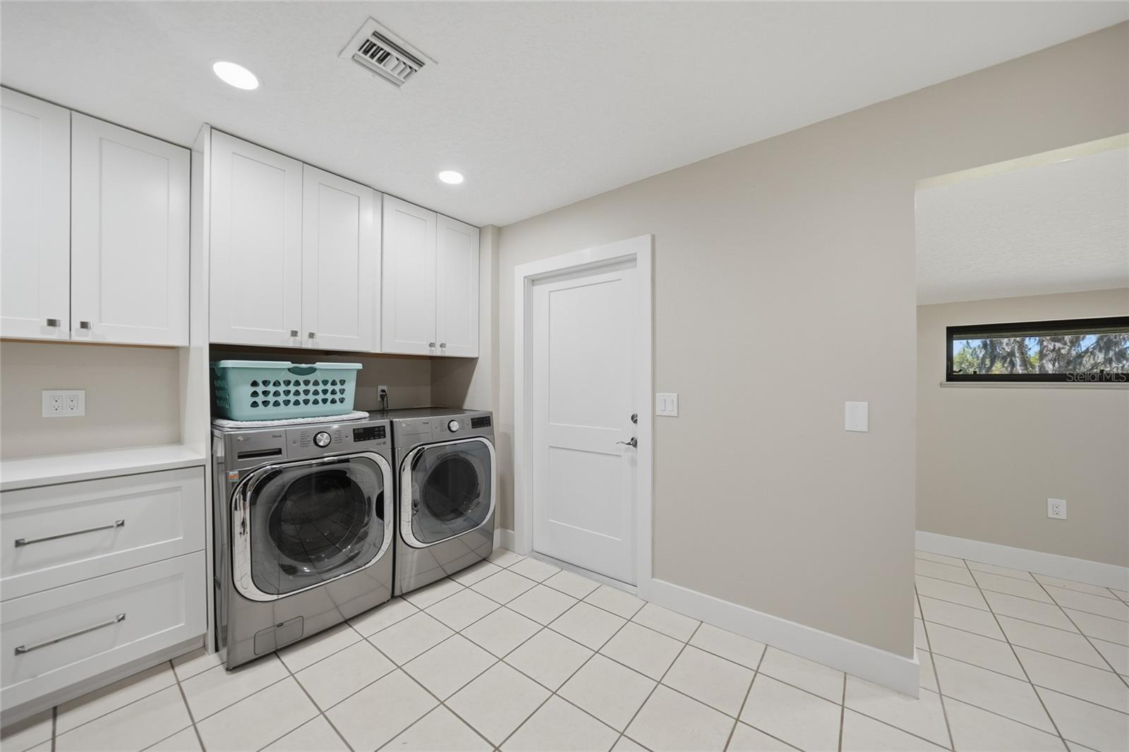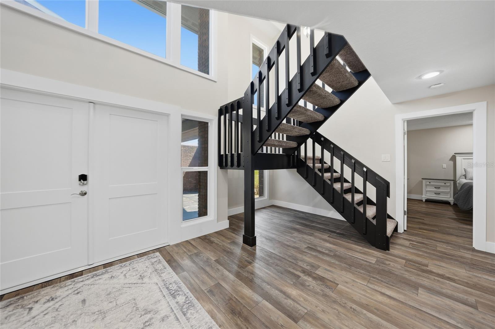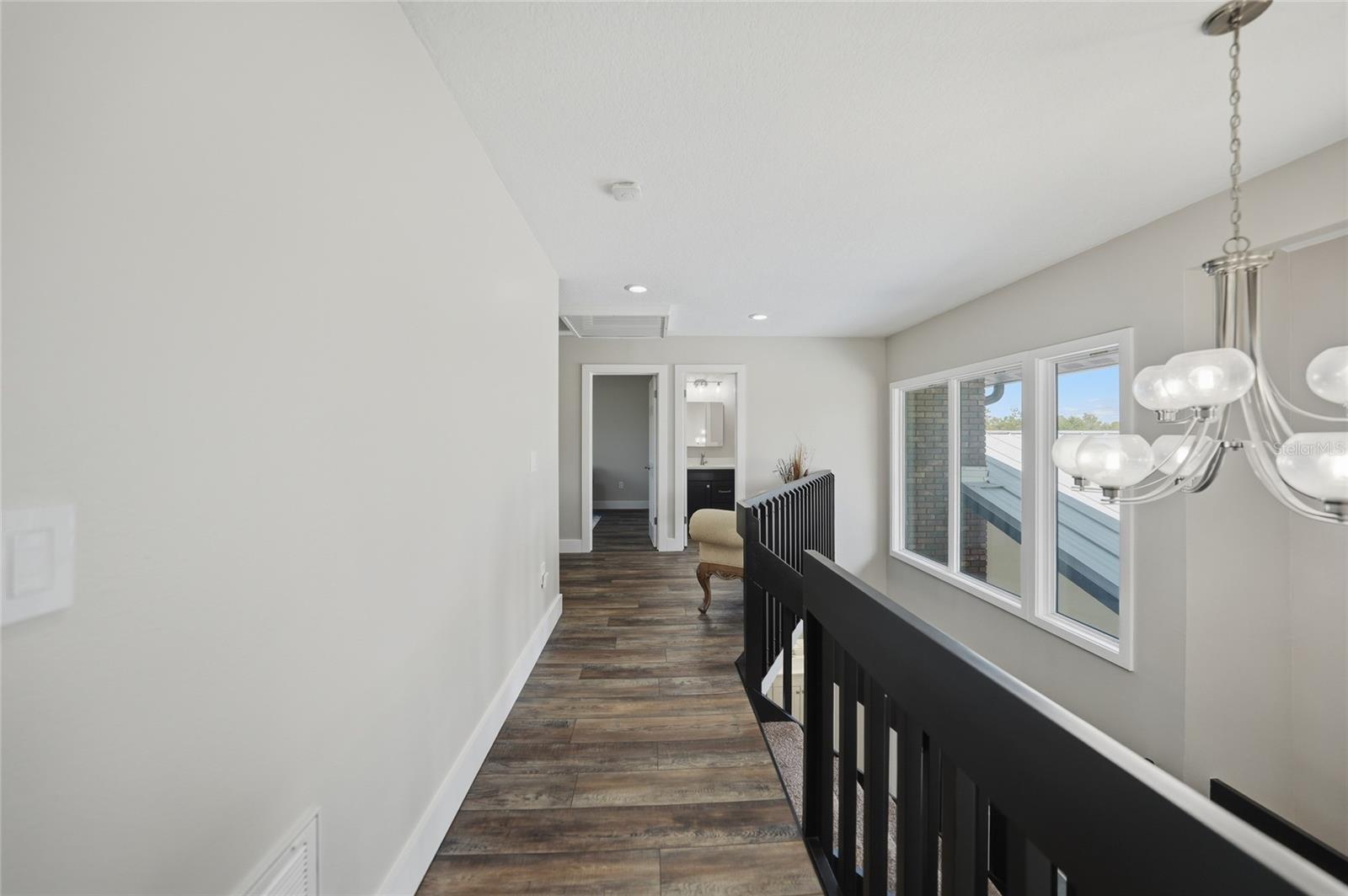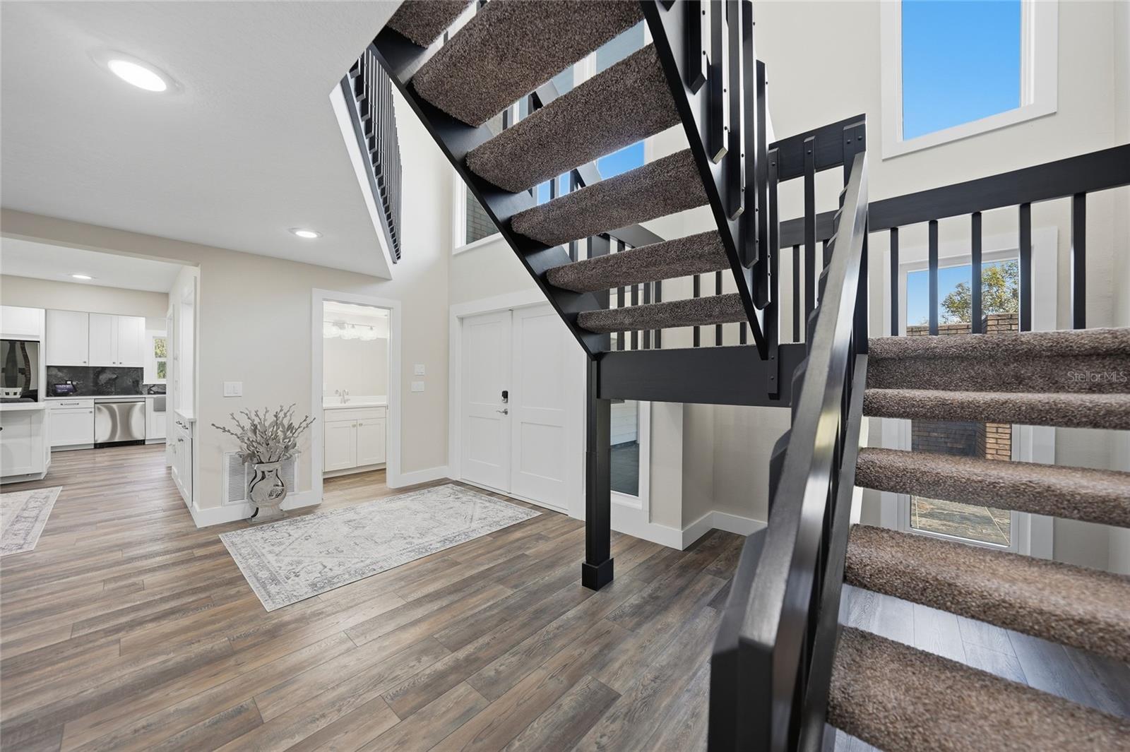 Welcome to your private 5 acre estate, where luxury meets functionality and every detail has been thoughtfully designed to impress. As you arrive, a long concrete driveway leads you to this stunning two-story brick home, showcasing exceptional curb appeal and a welcoming covered front porch. Step through the grand double doors into an impressive foyer featuring soaring ceilings and beautiful luxury vinyl flooring that flows throughout the main living areas. The heart of the home is the meticulously updated kitchen, perfectly suited for both everyday living and entertaining. It boasts quartz countertops, stainless steel appliances, pot filler, farmhouse sink, an oversized gas range with hood vent, and a convenient drawer microwave. The expansive double sided island offers ample seating, while the walk-in pantry is fully equipped with additional cabinetry, a second refrigerator, and freezer. Just off the kitchen, the dining area features a built-in coffee bar, creating a perfect space to start your day. The living room is equally impressive with its soaring ceilings, abundant natural light, and cozy wood burning fireplace. Each downstairs room offers direct access to the surrounding porches, allowing you to fully enjoy the peaceful views of your property. The spacious primary suite is located on the first floor and serves as a private retreat, complete with a large walk-in closet and a luxurious en suite bathroom featuring a standalone soaking tub and walk-in shower. The suite also includes its own private porch, perfect for relaxing in tranquility. Upstairs, you’ll find two generously sized guest bedrooms, each with oversized closets, connected by a walkway that overlooks both the living room and the grand entryway below. Additional interior features include a large laundry room and a versatile bonus space connected to the attached garage, offering endless possibilities for storage, a home office, or hobby area. Step outside and follow the beautifully landscaped concrete pathway past a serene koi pond with a filtration system, leading you to the impressive detached garage and potential in-law suite or man cave. The expansive 6+ car garage features five 11' foot garage doors and an open layout ideal for car enthusiasts, workshops, or a hobby farm setup, garage is accessible using the deeded side road/easement. Within the garage, the in-law suite offers two rooms, is fully air-conditioned, and includes rough-in plumbing for a future kitchenette and bathroom—ready for your customization. Built to stand out, this property also features a durable metal roof, hurricane impact windows, propane tankless water heater, gas dryer, wired for a generator and countless upgrades throughout. This one-of-a-kind estate offers space, luxury, and versatility all in one. Call today to schedule your private tour!