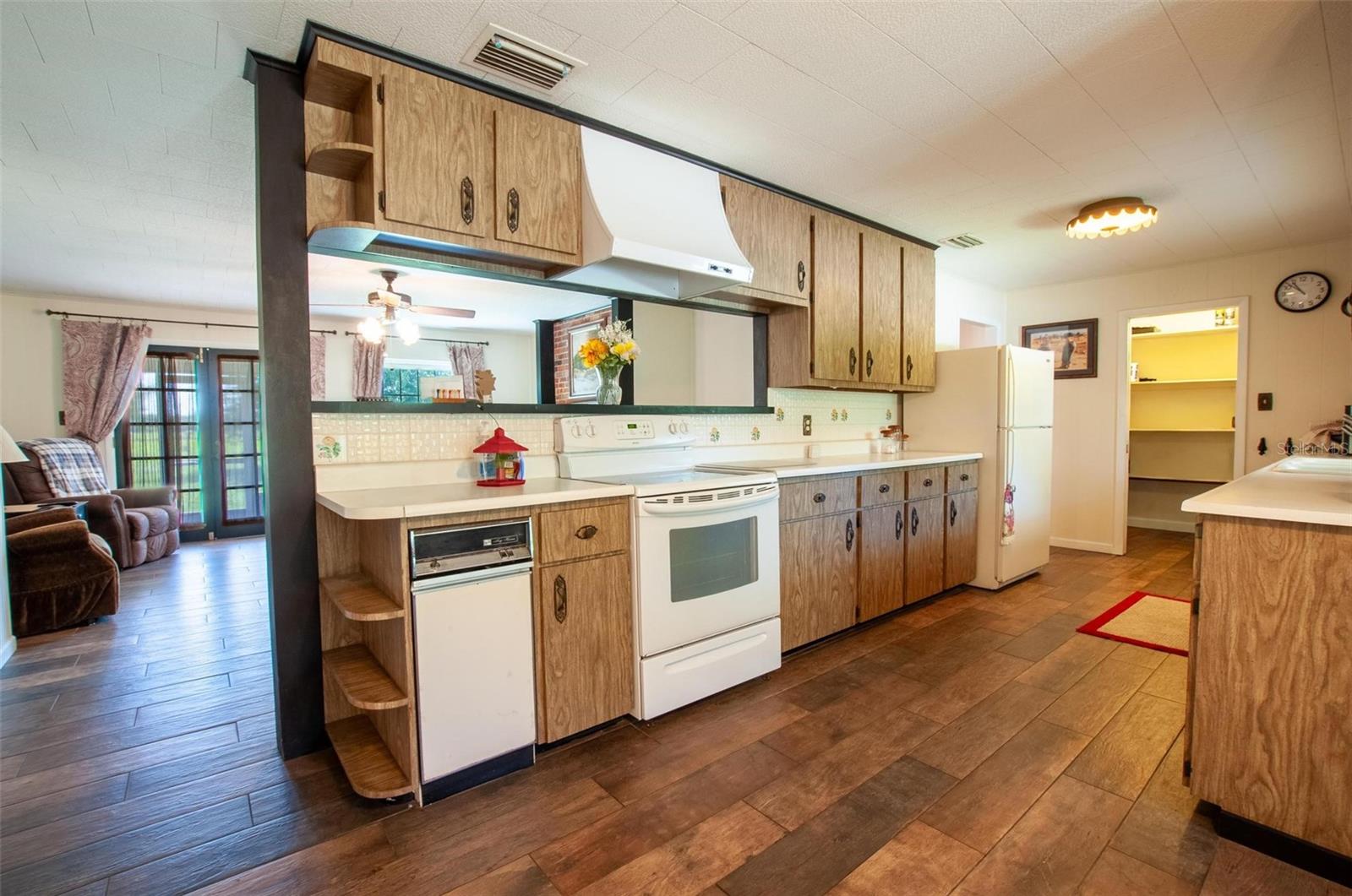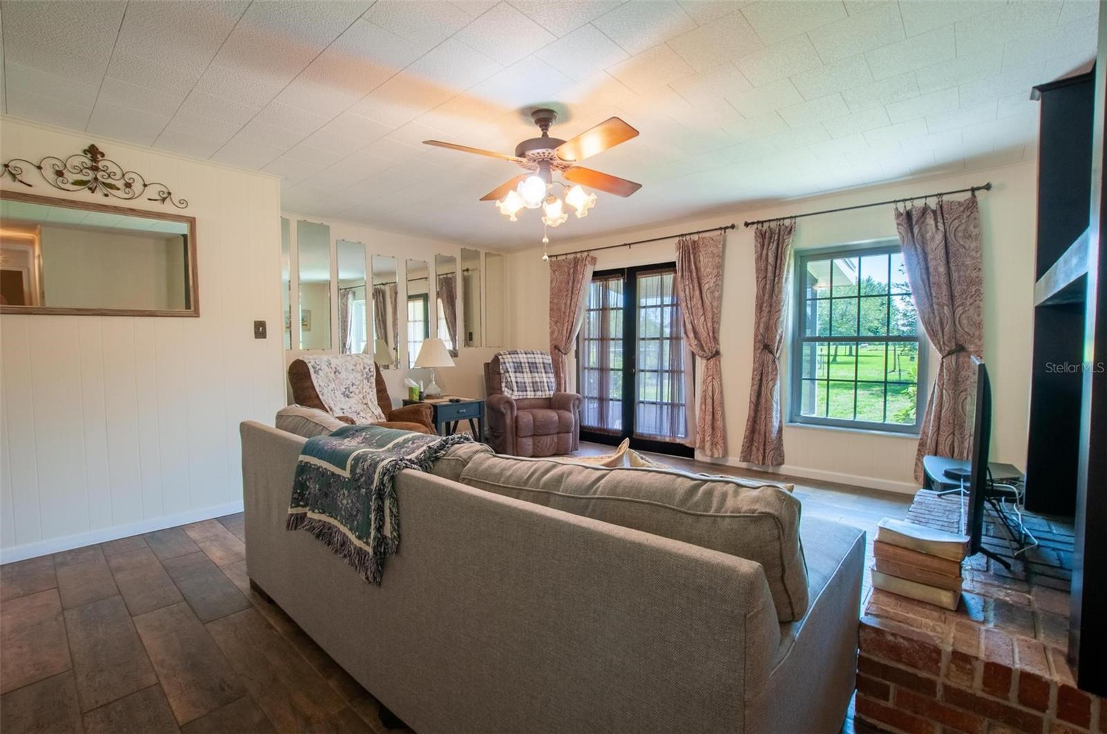 Fabulous country home nestled beneath beautiful grandfather oaks! This spacious, single-owner property features generously sized rooms and a durable concrete block and brick exterior that has withstood past hurricanes with no damage. Major updates include impact windows installed in 2014 and a new shingle roof in 2022. 2 hot water heaters and 2 septic systems and new drain field on north side. Enjoy relaxing in the large family room with a cozy brick wood-burning fireplace and French doors that open to a screened porch—perfect for indoor-outdoor living. A versatile bonus room offers flexibility as a living room or potential 4th bedroom. The primary suite includes an en suite bath that also provides access to the second bedroom. The expansive chain-link fenced backyard is ideal for pets, while the impressive 4-bay pole barn offers ample space for boat storage and additional equipment. An additional 37 acres is available for purchase, providing endless possibilities. This is a must-see property—more photos coming soon!
