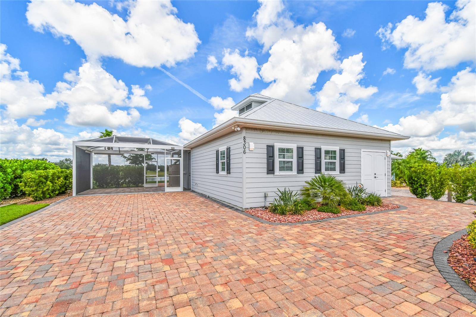 Experience comfort, functionality, and style in this thoughtfully designed casita, ideally located near the clubhouse. A spacious pavered parking pad, surrounded by lush landscaping, stretches up to the screened lanai, providing ample space for outdoor living and activities. Six newly installed sliding glass doors seamlessly connect the main living area to the back patio, with the option to close it off for air-conditioned comfort. A pass-through gas fireplace adds warmth and elegance, linking the main living area with the screened lanai for year-round enjoyment. The full-sized kitchen features custom cabinetry, leathered granite countertops, and a generous walk-in pantry. Through the French doors, you will find a cozy family room, a bedroom, and a laundry/storage room, complete with built-in shelving, a laundry sink, and stackable washer/dryer. Luxury continues in the bathroom with a beautifully tiled walk-in shower, while the large walk-in closet offers plenty of storage space. Step outside to the wide-open pavered patio, offering peaceful water views and an ideal setting for both relaxation and entertaining. Call today to schedule your private tour and experience the charm and tranquility of this exceptional property firsthand!