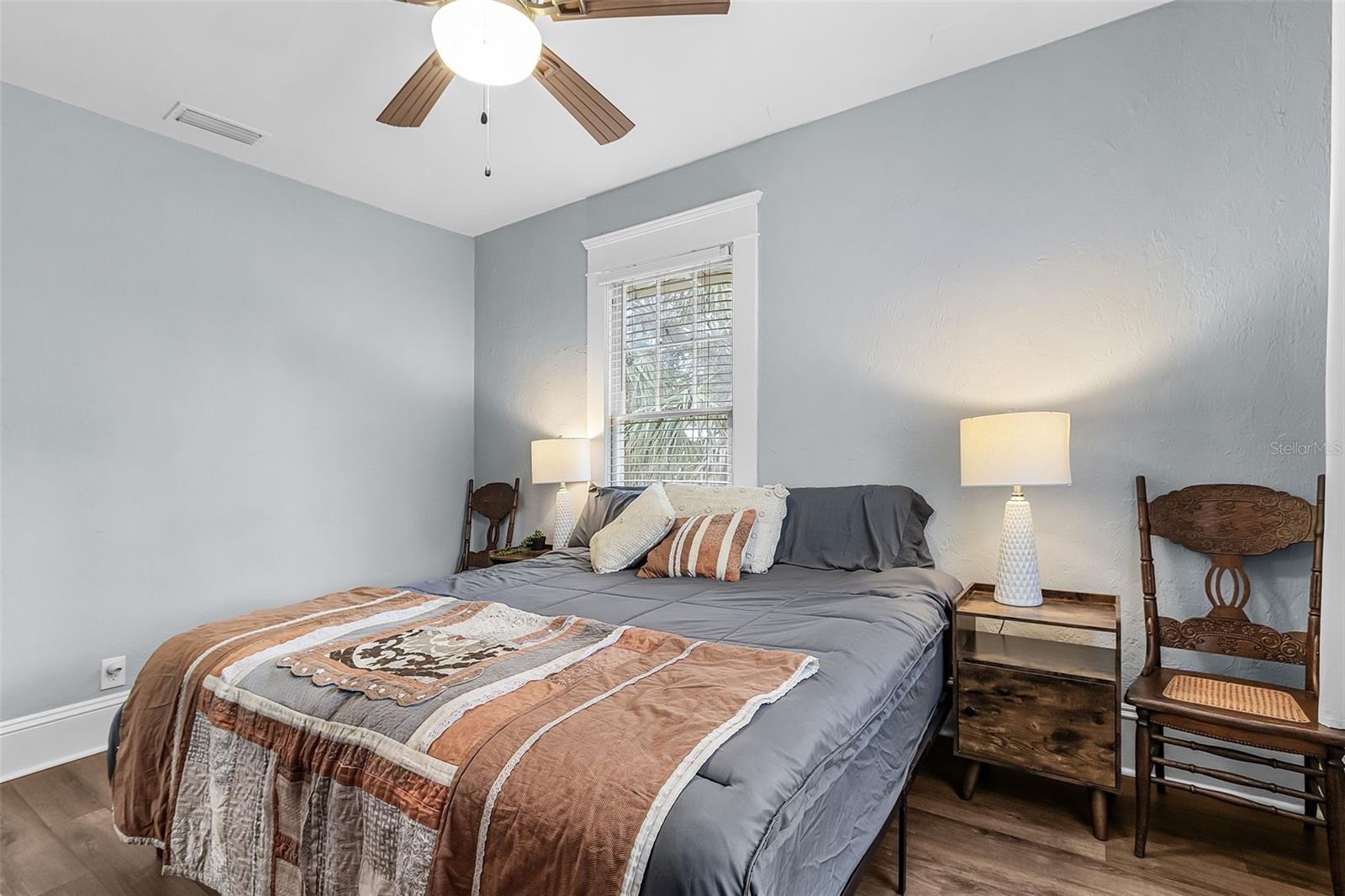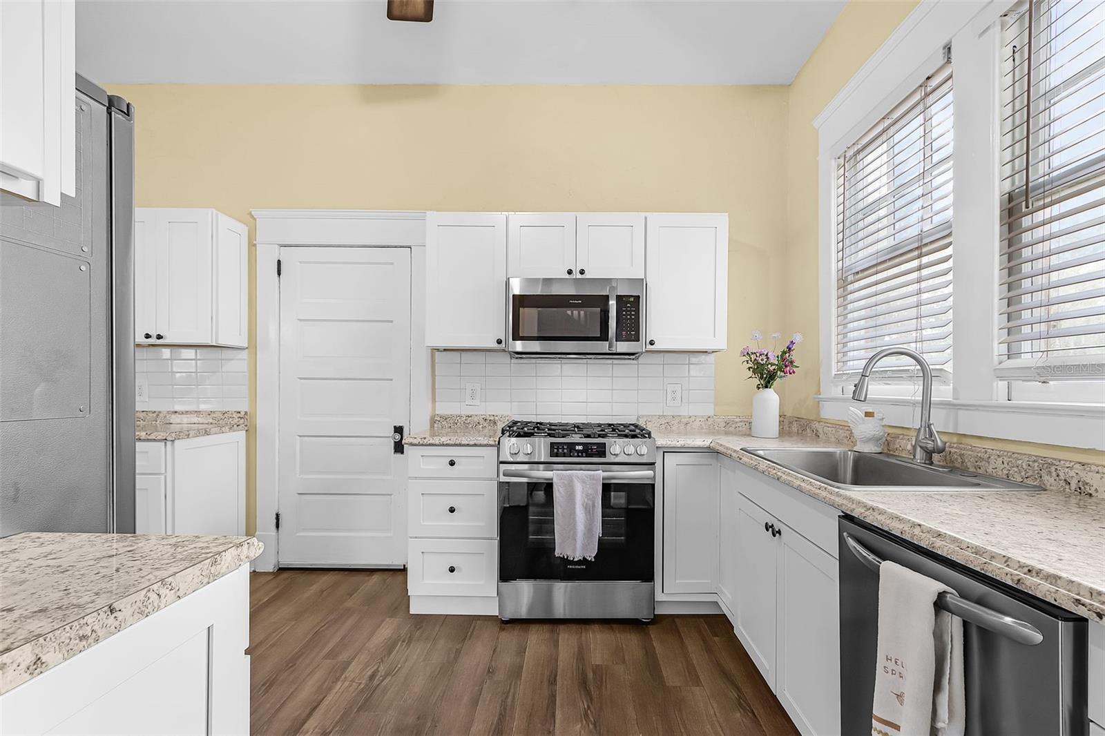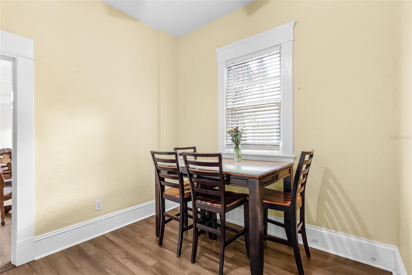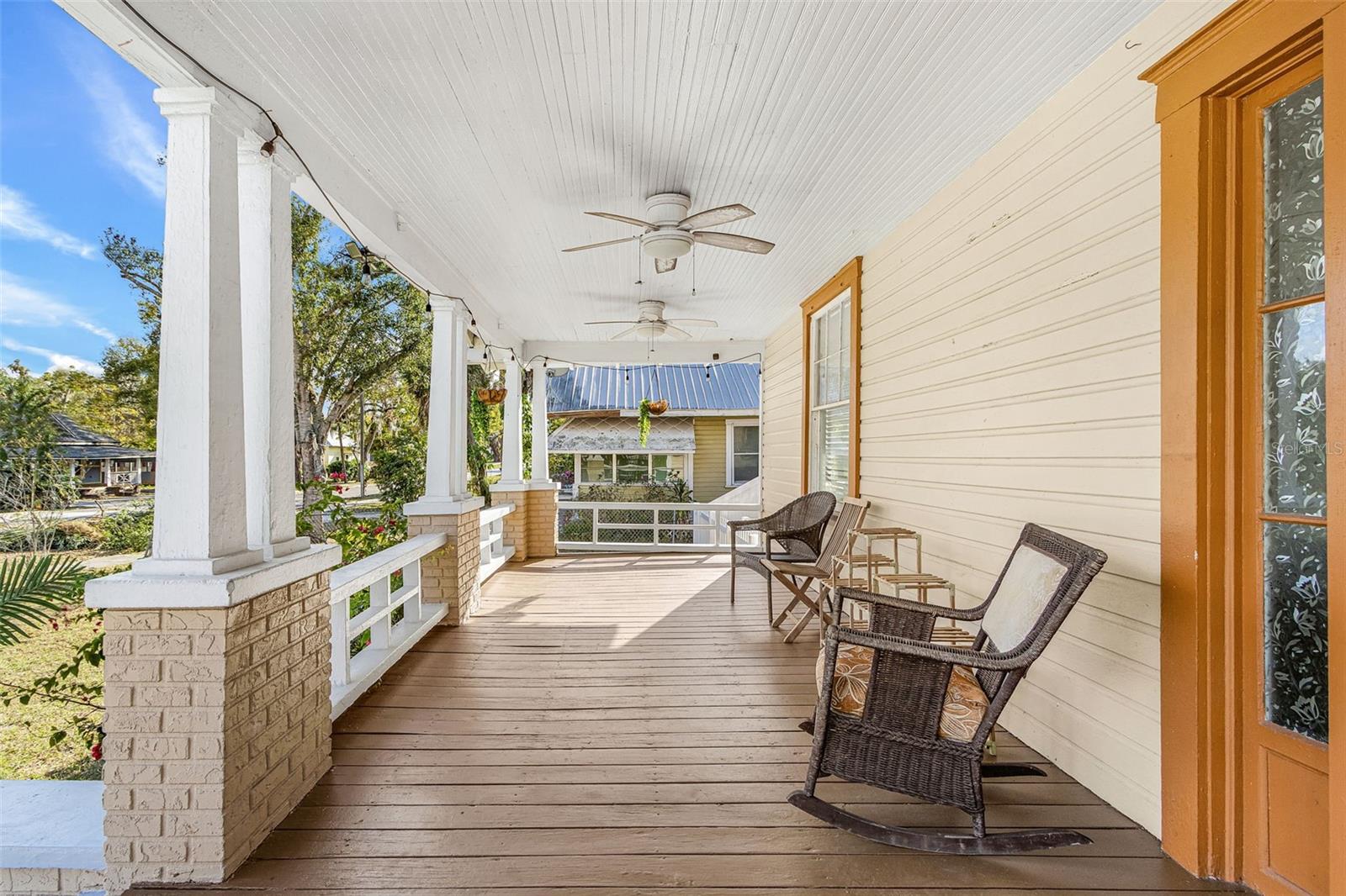 4-bedroom, 2-bath historic home with all bedrooms located on the second level and one bathroom on each level. Updated kitchen (2023), original woodwork and molding, built-in cabinetry, large front porch, screened-in second-floor lanai, fully fenced yard (2024), back patio with gazebo, and metal roof (2023). Interior features include original built-in wood cabinets, a fireplace in the living room, and a formal dining room. The layout offers defined living spaces with natural light throughout. Recent improvements include an updated kitchen with gas stove, updated flooring, and a metal roof (2023), providing a combination of function and durability. Outdoor spaces include a fully fenced yard with newer PVC fencing (2024), along with a patio and gazebo for outdoor use. The property includes ample yard space for a variety of uses. Located within short distance of proximity to local amenities, including dining, shopping, schools, and public services.