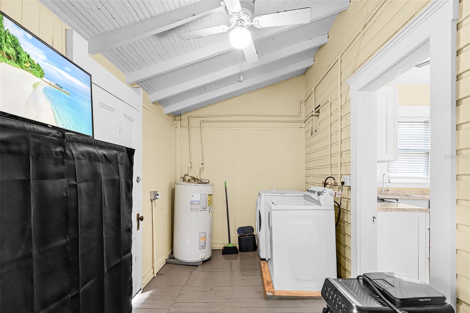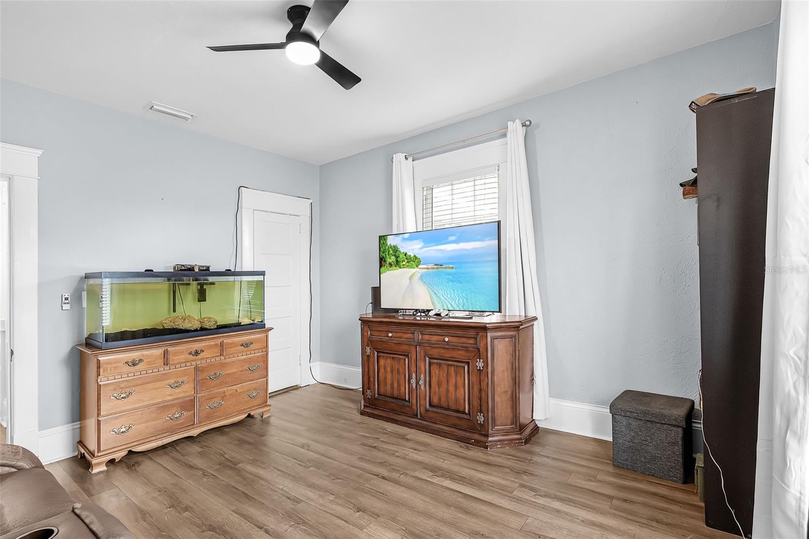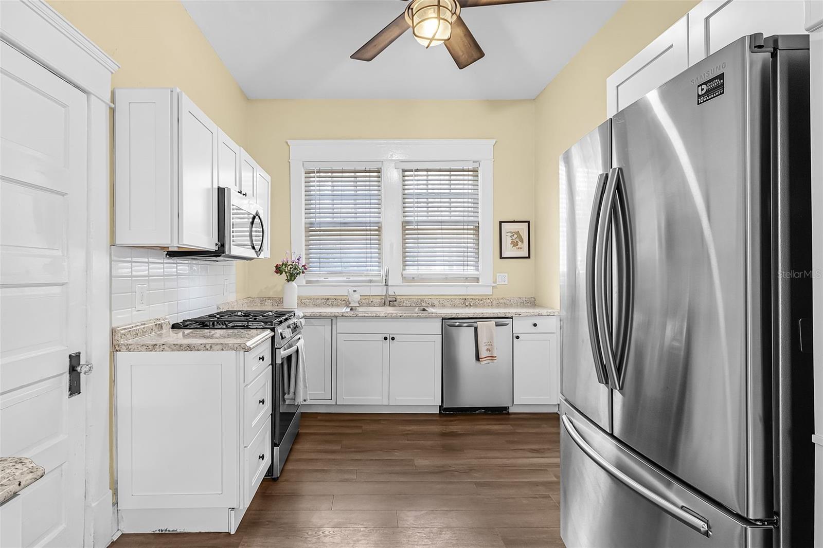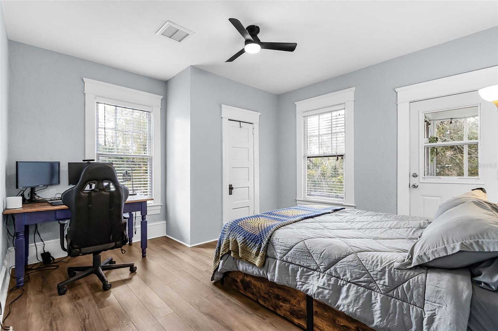 4-bedroom, 2-bath historic home with all bedrooms located on the second level and one bathroom on each level. Updated kitchen (2023), original woodwork and molding, built-in cabinetry, large front porch, screened-in second-floor lanai, fully fenced yard (2024), back patio with gazebo, and metal roof (2023). Interior features include original built-in wood cabinets, a fireplace in the living room, and a formal dining room. The layout offers defined living spaces with natural light throughout. Recent improvements include an updated kitchen with gas stove, updated flooring, and a metal roof (2023), providing a combination of function and durability. Outdoor spaces include a fully fenced yard with newer PVC fencing (2024), along with a patio and gazebo for outdoor use. The property includes ample yard space for a variety of uses. Located within short distance of proximity to local amenities, including dining, shopping, schools, and public services.