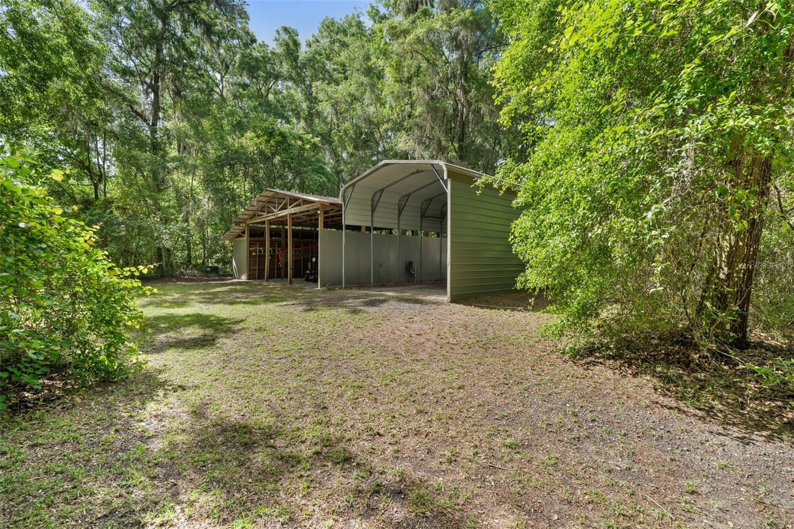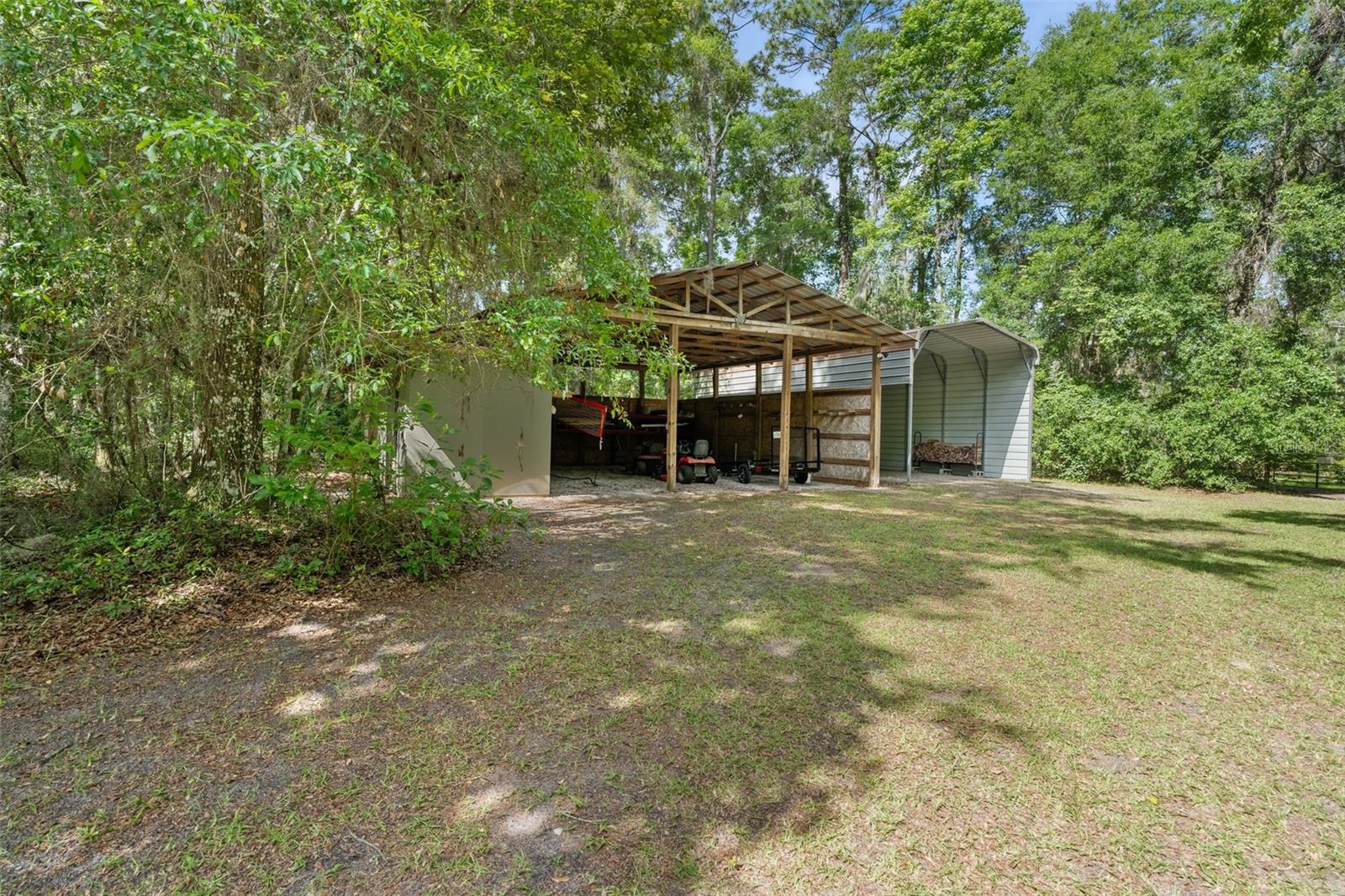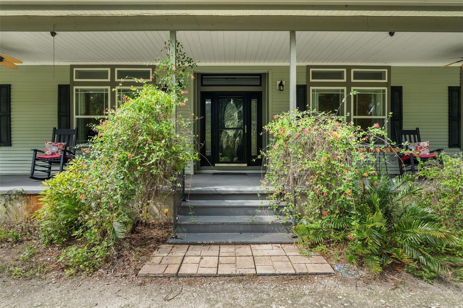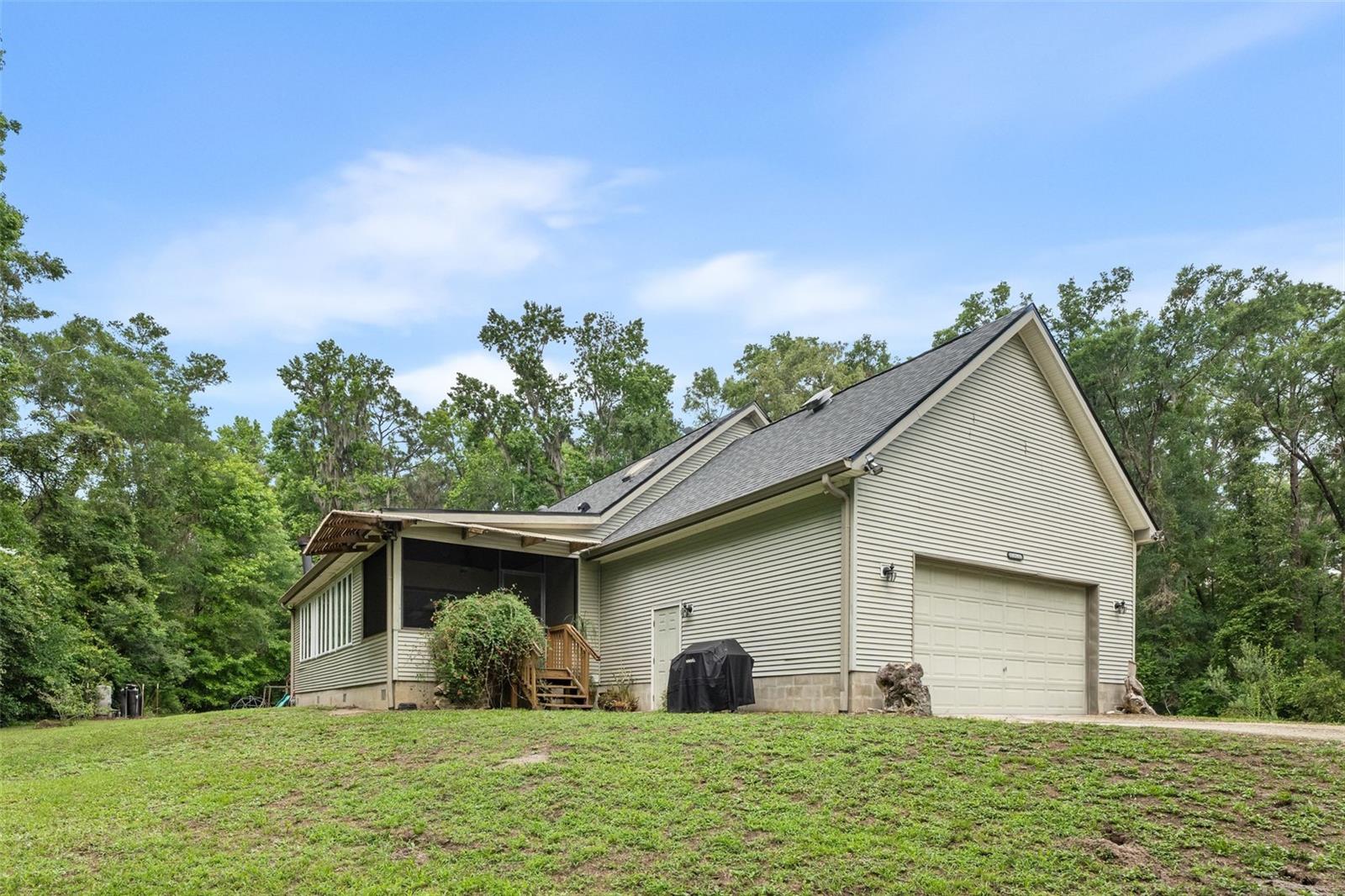 Welcome to your private retreat on just over 5 serene acres! This beautifully maintained 4-bedroom, 4-bath home plus a large office/den offers space, functionality, and peaceful Florida living. The thoughtful layout features a spacious first-floor primary suite and a separate guest suite, with two additional bedrooms, a full bath, and a versatile flex room upstairs. No carpet throughout the home makes for easy maintenance. Enjoy relaxing evenings on the charming front porch or unwind on the screened-in back lanai. The kitchen boasts an upscale feel with custom wood cabinetry,gas stove, and stainless steel appliances. The star of the show would have to be the sunroom—with windows lining the entire length—floods the home with natural light and offers views of the lush, Florida-friendly landscaping. Car enthusiasts or hobbyists will love the 3-car garage setup, including a dedicated one-car garage/large workshop with a full bath. The property also includes a massive pole barn with storage and a separate covered large RV/boat area each one with full water and electric hookups. Additional features include a whole-house generator, laundry room, and a location that feels miles away from it all—yet is just minutes to Archer and Tower Road, with shopping, and restaurants. Truly a rare combination of comfort, privacy, and functionality!
