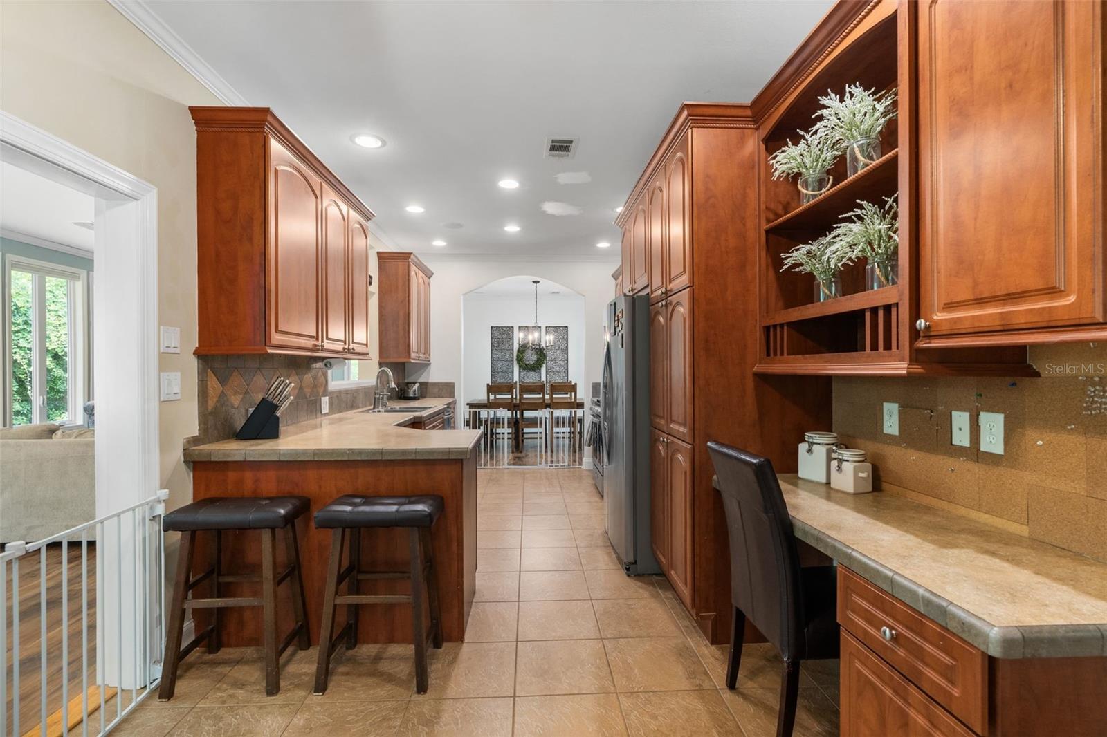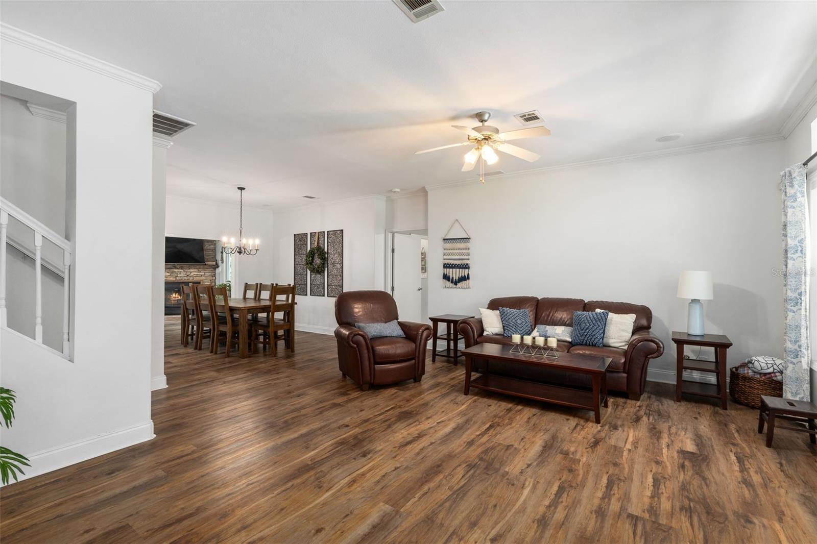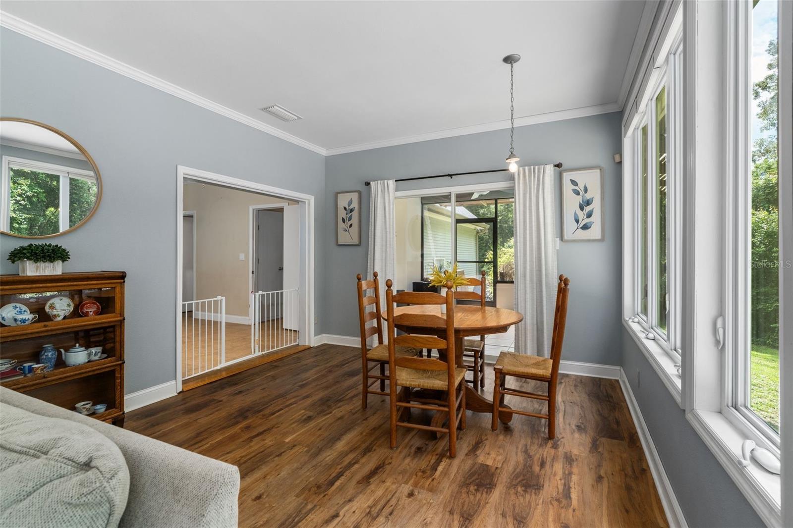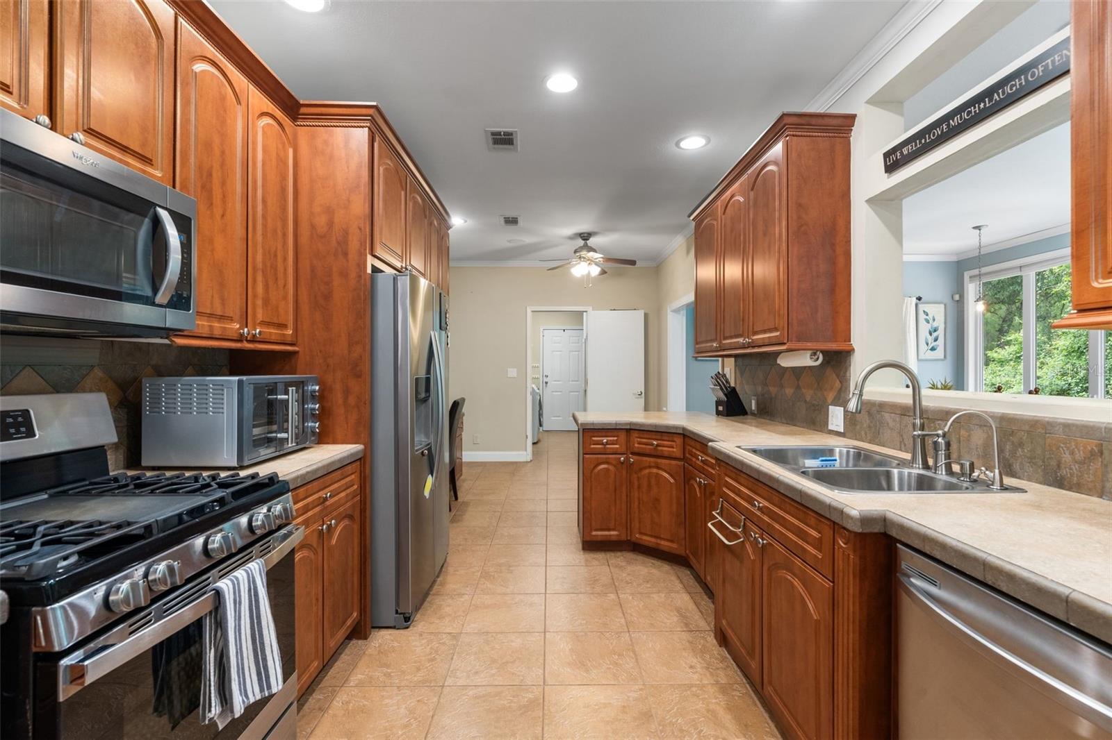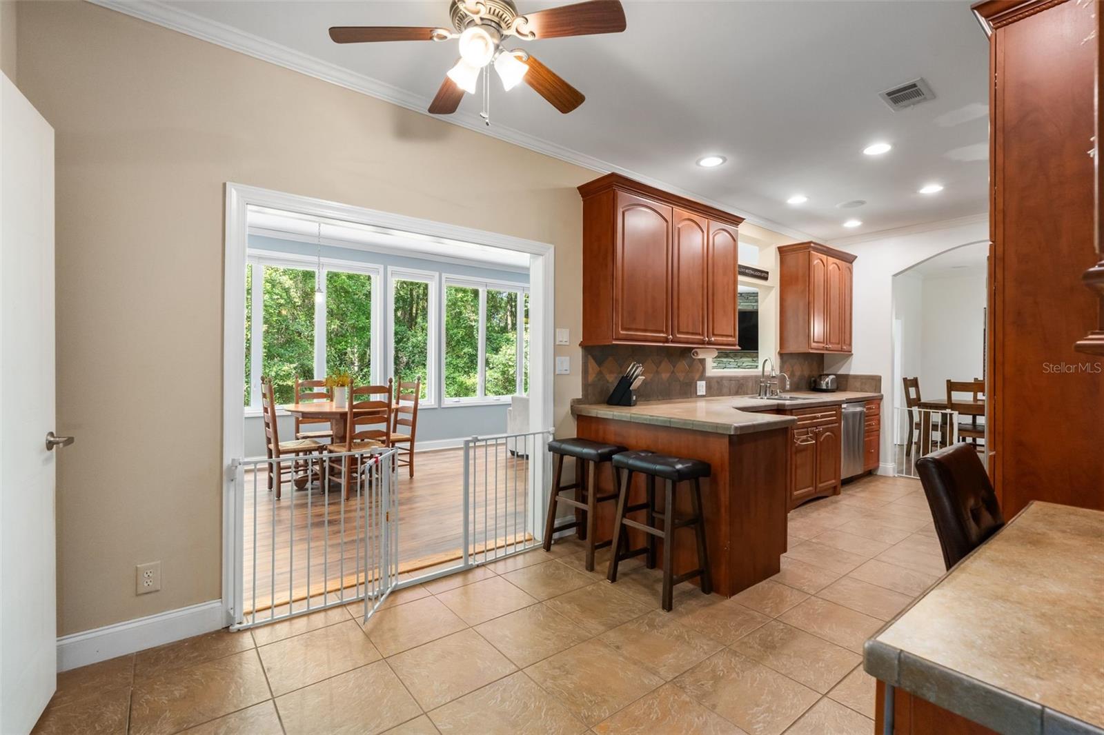 Welcome to your private retreat on just over 5 serene acres! This beautifully maintained 4-bedroom, 4-bath home plus a large office/den offers space, functionality, and peaceful Florida living. The thoughtful layout features a spacious first-floor primary suite and a separate guest suite, with two additional bedrooms, a full bath, and a versatile flex room upstairs. No carpet throughout the home makes for easy maintenance. Enjoy relaxing evenings on the charming front porch or unwind on the screened-in back lanai. The kitchen boasts an upscale feel with custom wood cabinetry,gas stove, and stainless steel appliances. The star of the show would have to be the sunroom—with windows lining the entire length—floods the home with natural light and offers views of the lush, Florida-friendly landscaping. Car enthusiasts or hobbyists will love the 3-car garage setup, including a dedicated one-car garage/large workshop with a full bath. The property also includes a massive pole barn with storage and a separate covered large RV/boat area each one with full water and electric hookups. Additional features include a whole-house generator, laundry room, and a location that feels miles away from it all—yet is just minutes to Archer and Tower Road, with shopping, and restaurants. Truly a rare combination of comfort, privacy, and functionality!