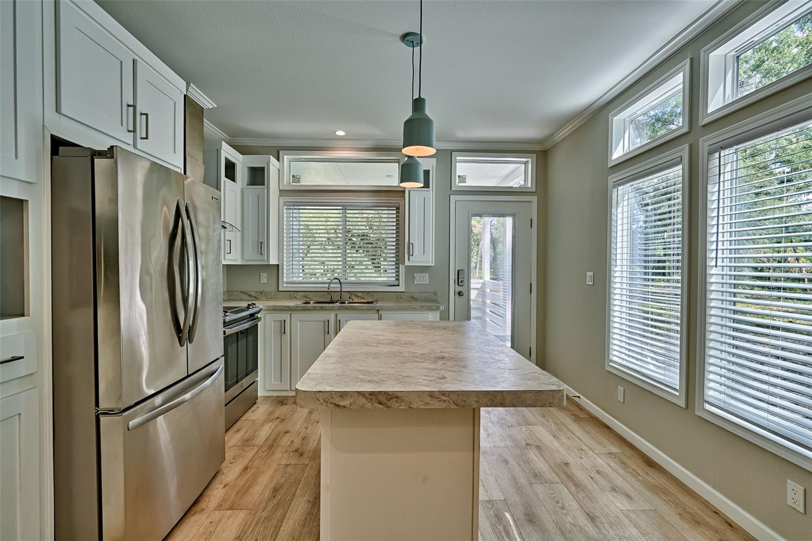 Welcome to your own private oasis — and bring your horses! Located on 7.54 peaceful, gated acres, this 2024 tiny home is big on charm and smart design. Offering 1 bedroom, 1 bath, and 520 sq. ft. of comfort. Enjoy evenings by the electric fireplace on the front porch, surrounded by the sights and sounds of nature. Inside, you’ll find vinyl plank flooring throughout, a sleek kitchen with stainless steel appliances and breakfast bar. A living room with a tray ceiling that adds an open, airy feel. The bathroom features a walk-in shower, plus there’s a stackable washer and dryer tucked in the hallway. The bedroom includes a built-in closet, and a side entry door adds extra functionality. The property is fenced, includes a storage shed, and offers endless possibilities — build your dream home while living comfortably in your tiny retreat. Whether you’re looking for a weekend escape, an income opportunity, or a place to create your dream ranch, this property delivers it all. Close to shopping, I-75.