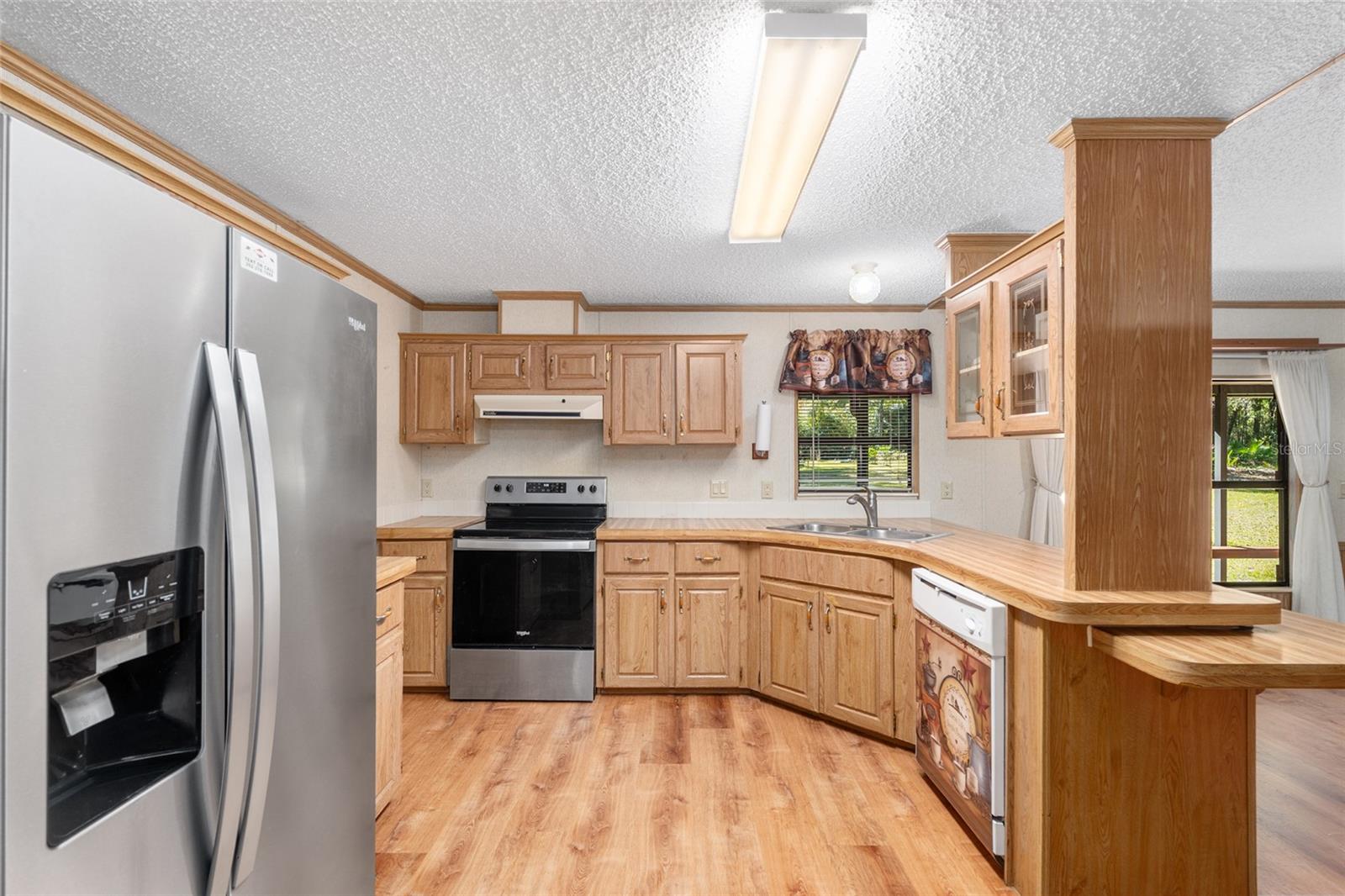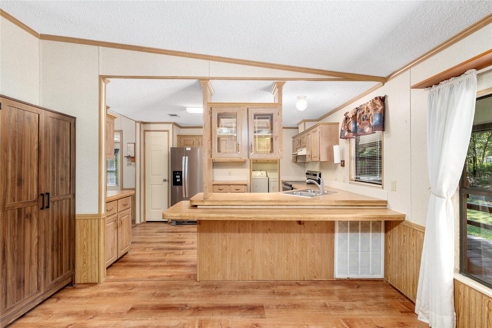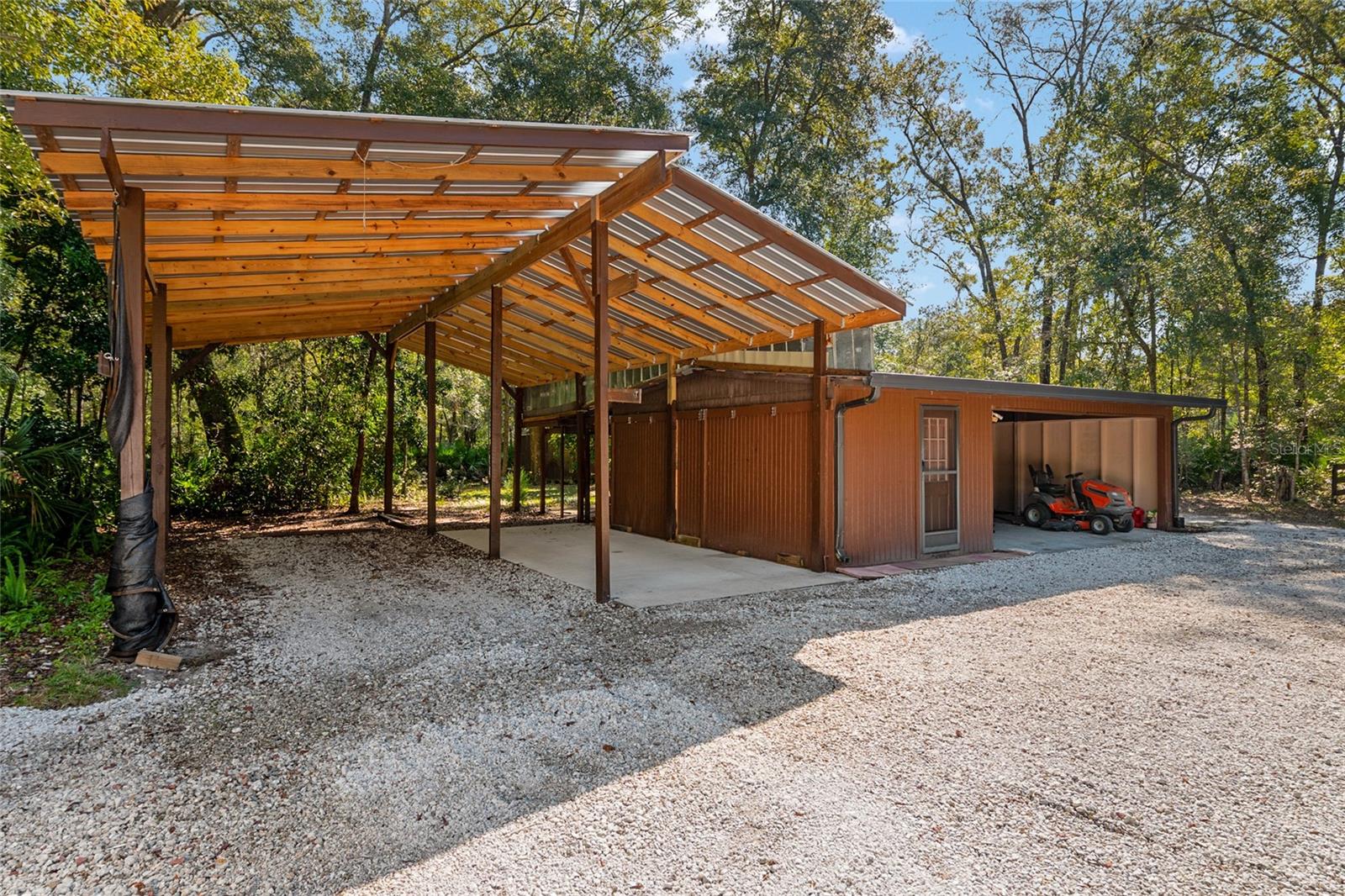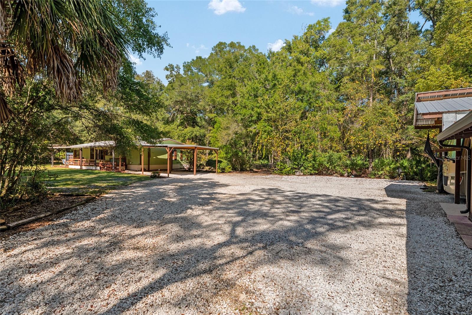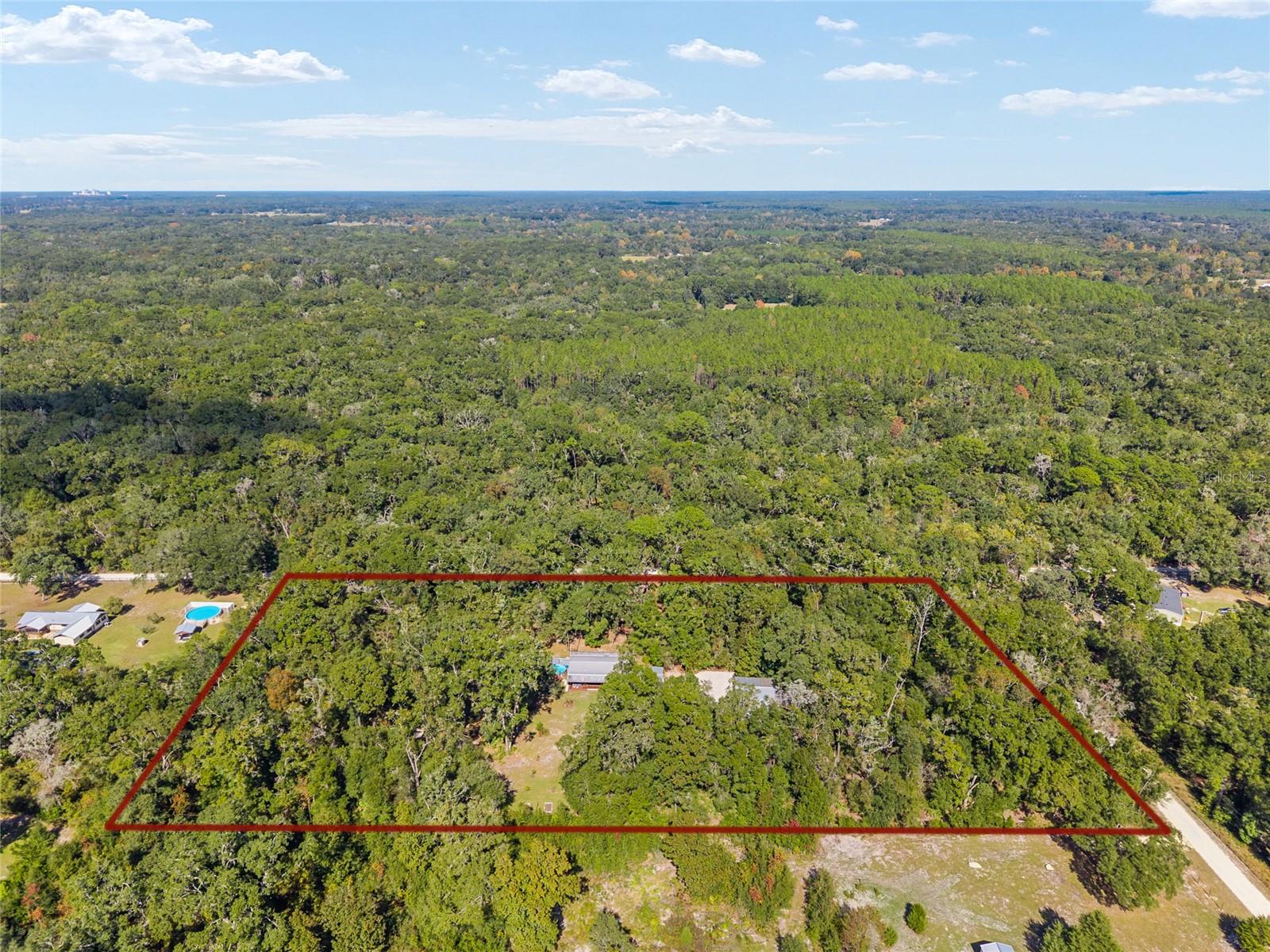 Discover your peaceful sanctuary in this meticulously maintained 3 bedroom 2 bathroom home nestled on 6 completely fenced acres of a beautiful mix of cleared land and natural woodland. Upon entry into the residence from the expansive deck, you will be overwhelmed with the abundance of warmth and comfort stemming from the newer luxury vinal plank floor carefully laid throughout the home with the only carpet being smartly located in the massive bedroom closets. Natural light flows guiding you to the chef’s dream kitchen boosting tons of cabinet and countertop space along with newer stainless-steel appliances. The intelligent floor plan joins the large dining room to the sprawling living room area creating an enormous great room that will keep the whole family connected. All three bedrooms are good size with the split primary bedroom offering a walk-in closet, a dual sink vanity, and a separate step in shower. As nice as the home is, outside is where this property really shines. As you enter through the super convenient solar powered gate, you can take a right towards a massive RV/5th wheel cover offering 50 amp service, water, and a tie into the 3 year old septic system for storage or in-law/guest space. Heading straight up the driveway will open onto a gravel drive turn around that connects the home with an additional two covers large enough for a 35 foot RV and an additional fifth-wheel/tractor/lawnmower/boat. Attached to those covers is an enclosed office or storage room with power and another carport storage area for a grand total of 2 RV covers, 1 fifth wheel or boat cover, and 4 covered parking areas for vehicles. As if that was not enough, behind the carport is a covered workshop area and 2 large nearby sheds. In addition to the entire 6 acres being fenced, there is a smaller fenced in area off the screen patio perfect for smaller pets. Included are less than 2 year starting of apple trees/grapefruit/clementine trees and 2 metal garden planter beds for any gardening needs. Can’t miss the 10,000 gallon above the ground pool to enjoy the Florida hot summer days and cool off. Pool also features a custom deck and privacy wall if the surrounding forest is not enough. Come let this property take your breath away.
