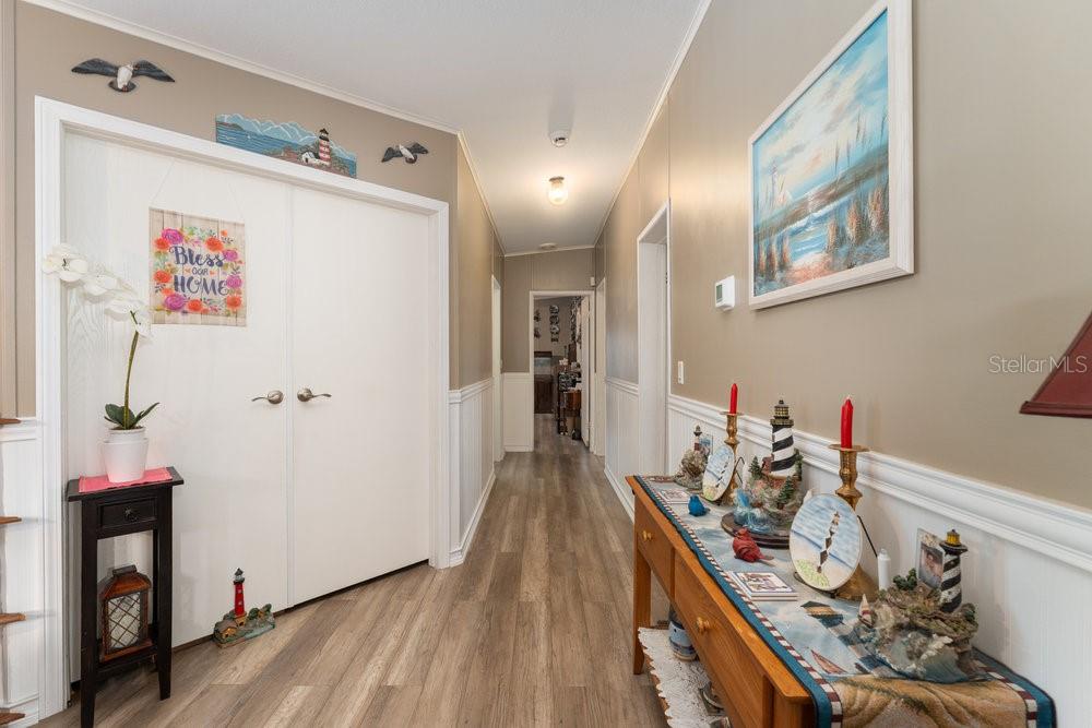 Tucked away on 5 peaceful acres with its own private pond and gated entrance, this beautifully updated property offers the perfect blend of quiet country living and modern convenience. Built in 2005, this Jacobsen/Classic III home features 4 spacious bedrooms and 3 full baths, plus an office/den that could be a 5th bedroom, and an open layout that’s ideal for both everyday life and entertaining. The kitchen, fully remodeled in 2018, offers generous cabinet space, modern finishes, and a double oven that makes cooking for a crowd a breeze. Real hardwood flooring installed in 2017, flows throughout most of the home, creating a warm and welcoming feel. The primary suite is a true retreat with a walk-in closet, dual sinks, and a large walk in shower. Guests will feel right at home with comfortable bedrooms, including one with its own ensuite bath. Double doors open to a flexible space that’s perfect for a home office, gym, or possible 5th bedroom. Step outside and soak in the Florida sunshine from your private pool area, complete with composite decking added in 2020 and a brand-new pool pump in 2024. A screened-in tiki hut creates the ultimate spot for relaxing or entertaining. For those who love their toys or hobbies, the 1,500 square-foot garage, built in 2018 with extra-thick concrete, features three full bays. A carport added in 2023 offers additional covered space. Additional highlights include a 2024 roof with exhaust fan, a 5-ton HVAC installed in 2019, a 2023 hot water heater, and storm shutters for peace of mind. Charming details like board and batten accents in the hallway, a newly installed paver walkway, and a fenced dog run add extra personality and functionality to this incredible property. If space, privacy, and thoughtful upgrades are on your wish list, this home checks all the boxes. The property is fully fenced and there is No HOA fee.