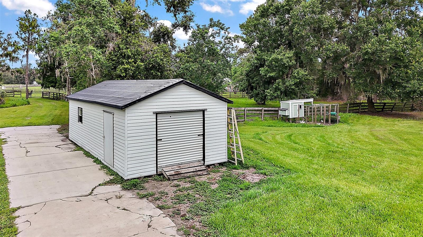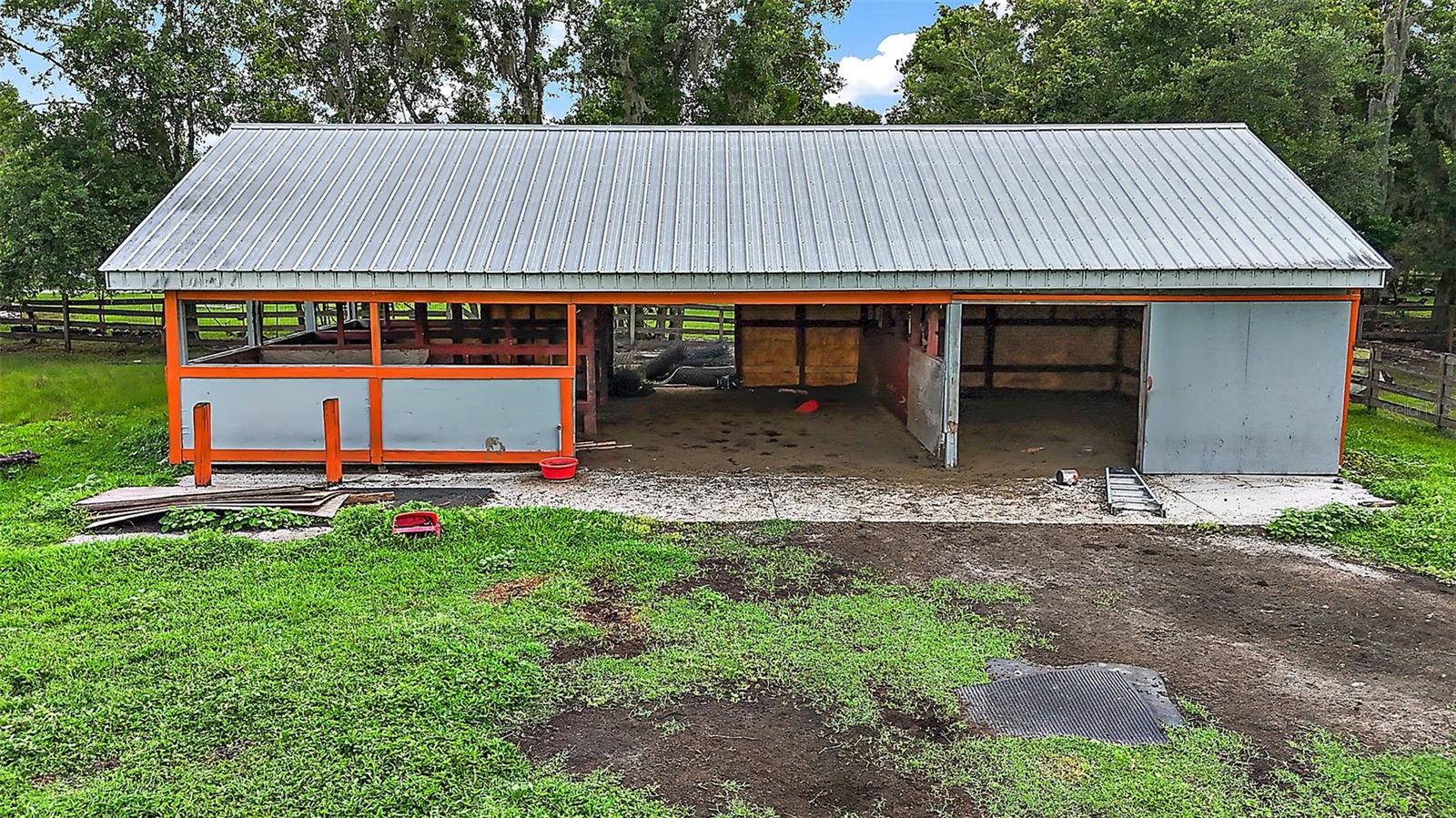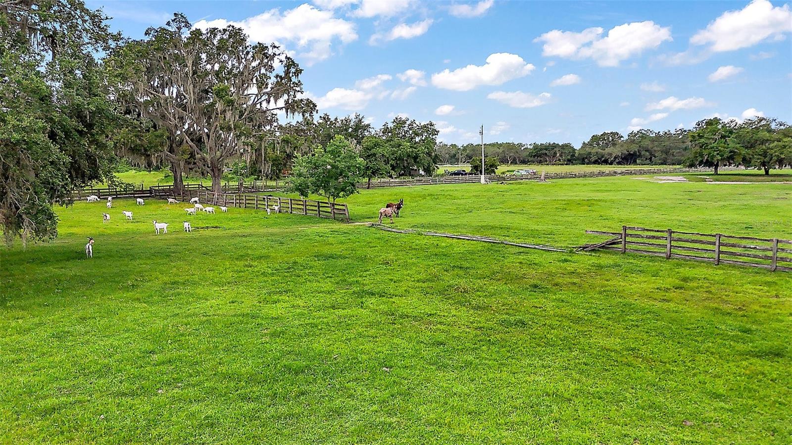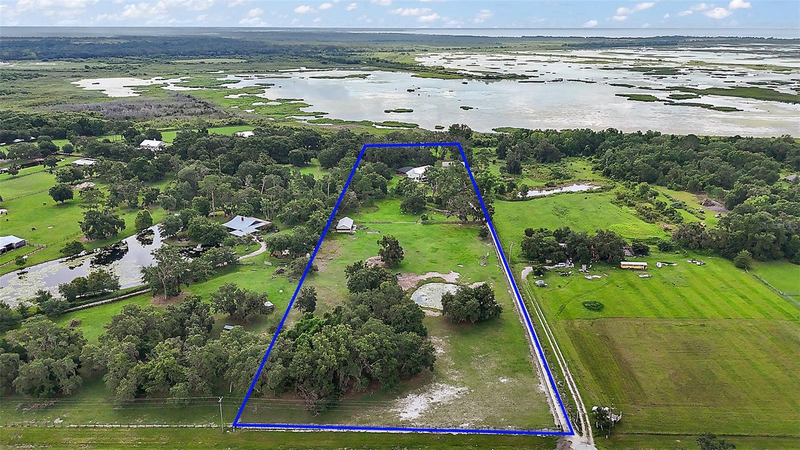 Discover the perfect blend of upscale living and country tranquility with this exceptional 4-bedroom, 4-bathroom custom home nestled on 12 fully fenced, pristine acres in the heart of Astatula. Ideal for horse lovers, hobby farmers, RV travelers, or anyone seeking space, privacy, and functionality, this property offers a rare opportunity to own a piece of paradise with high-end features and unmatched versatility. Step inside to a spacious 2,615 sq ft floor plan designed for comfortable living and effortless entertaining. This home boasts an open concept living, dining and kitchen area with vaulted ceilings, a double-sided fireplace and beautiful engineered hardwood floors throughout the home. The Gourmet kitchen features beautiful solid wood cabinetry, granite countertops, stainless steel appliances and a breakfast bar. The large dining room is adjacent to the kitchen with a magnificent view overlooking the pool. Your Luxurious master suite is located on one side of the home and features walk in closets and an en-suite bath with dual vanities, soaking tub with hydro massage jets, separate shower and a private water closet. Two additional spacious bedrooms are located on the other side of the home, one with access to a full bath and the other with an en-suite bathroom with its own entrance to the pool. The fourth spacious bedroom is located on the second level with an en-suite bathroom and an abundance of storage space as well. All three bedrooms are perfect for your out-of-town guests or multi-generational living. There is also a flex space located between the two main level guest bedrooms just perfect for an office or sitting area. This home also features a dedicated laundry room with ample storage that leads to your oversized two car garage. Enjoy Florida living at its finest in your covered porch with an outdoor kitchen island complete with a built in gas grill and countertop, large flat screen TV, screened-in lanai and massive patio featuring a sparkling heated pool with a waterfall and spa, perfect for entertaining, family gatherings, or simply soaking in the serenity of your surroundings and offering incredible sunset views over your acreage. This magnificent property also features 12 fully fenced and gated acres with a mix of cleared space and mature trees ideal for horseback riding, outdoor recreation, hobby farming and just perfect for your livestock, horses, toys, and tools. There with a two-stall horse barn, steel framed over-sized RV pole barn ideal for RV’s, boats, trailers or outside workshop use. There is also a chicken coop, a nicely sized utility shed for lawn equipment and room to add an arena, garden or more outbuildings. Whether you're looking to start a small farm, needing a multi-use property with room to grow, or want a retreat with top-tier amenities, this estate has it all. Don’t miss this unique opportunity to own a one-of-a-kind estate in the peaceful and scenic community of Astatula just minutes from Downtown Tavares, Mount Dora and Clermont with easy access to major roads, dining, shopping and area lakes. Schedule your private showing today and experience the best of country living with modern comfort! The Sellers have recently installed new fencing on the front and sides of the property.