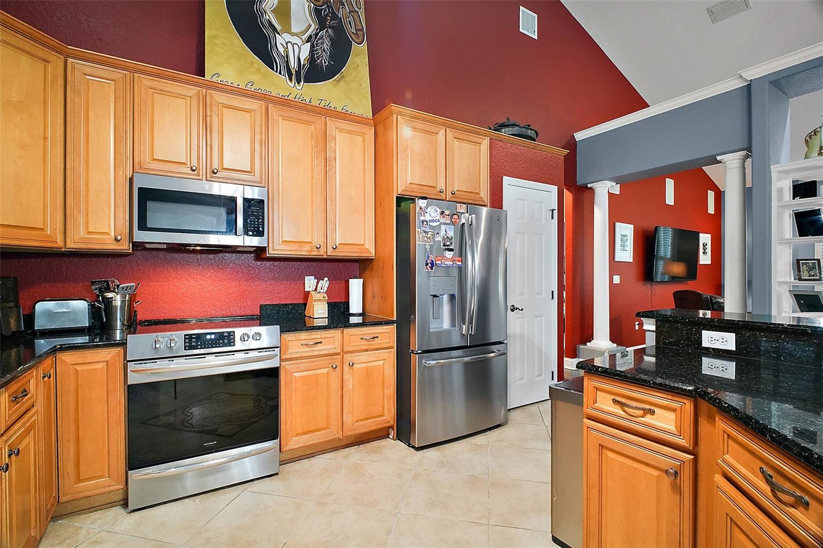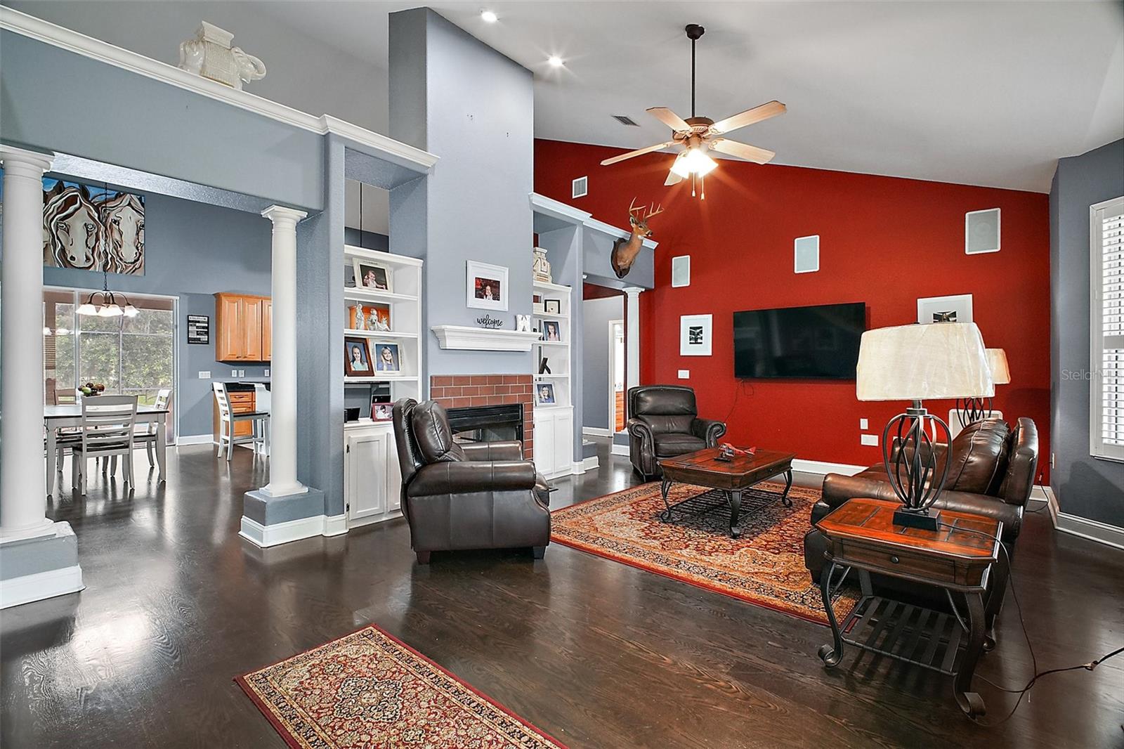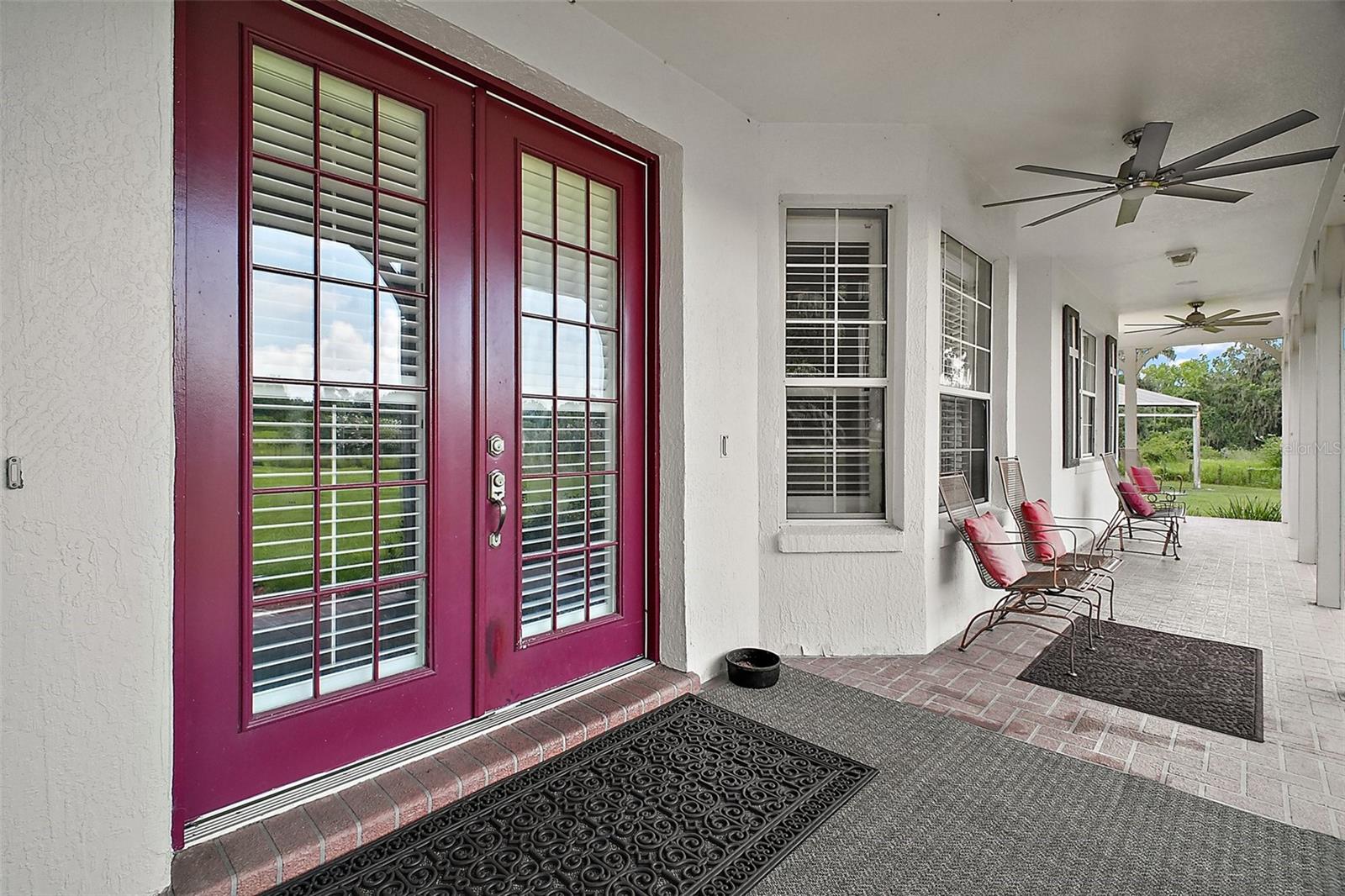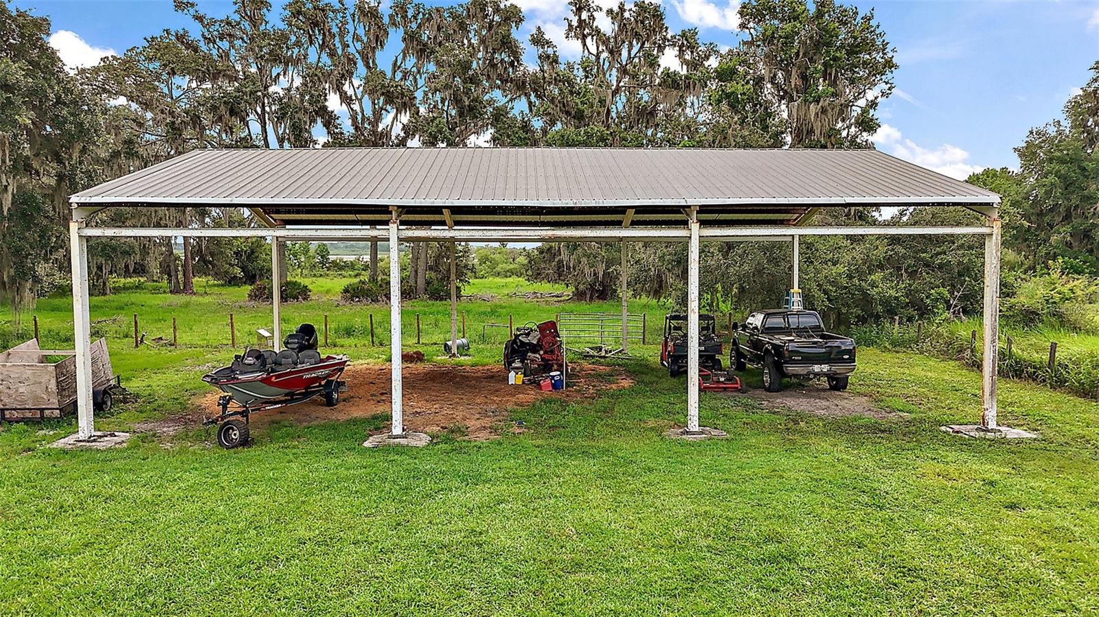 Discover the perfect blend of upscale living and country tranquility with this exceptional 4-bedroom, 4-bathroom custom home nestled on 12 fully fenced, pristine acres in the heart of Astatula. Ideal for horse lovers, hobby farmers, RV travelers, or anyone seeking space, privacy, and functionality, this property offers a rare opportunity to own a piece of paradise with high-end features and unmatched versatility. Step inside to a spacious 2,615 sq ft floor plan designed for comfortable living and effortless entertaining. This home boasts an open concept living, dining and kitchen area with vaulted ceilings, a double-sided fireplace and beautiful engineered hardwood floors throughout the home. The Gourmet kitchen features beautiful solid wood cabinetry, granite countertops, stainless steel appliances and a breakfast bar. The large dining room is adjacent to the kitchen with a magnificent view overlooking the pool. Your Luxurious master suite is located on one side of the home and features walk in closets and an en-suite bath with dual vanities, soaking tub with hydro massage jets, separate shower and a private water closet. Two additional spacious bedrooms are located on the other side of the home, one with access to a full bath and the other with an en-suite bathroom with its own entrance to the pool. The fourth spacious bedroom is located on the second level with an en-suite bathroom and an abundance of storage space as well. All three bedrooms are perfect for your out-of-town guests or multi-generational living. There is also a flex space located between the two main level guest bedrooms just perfect for an office or sitting area. This home also features a dedicated laundry room with ample storage that leads to your oversized two car garage. Enjoy Florida living at its finest in your covered porch with an outdoor kitchen island complete with a built in gas grill and countertop, large flat screen TV, screened-in lanai and massive patio featuring a sparkling heated pool with a waterfall and spa, perfect for entertaining, family gatherings, or simply soaking in the serenity of your surroundings and offering incredible sunset views over your acreage. This magnificent property also features 12 fully fenced and gated acres with a mix of cleared space and mature trees ideal for horseback riding, outdoor recreation, hobby farming and just perfect for your livestock, horses, toys, and tools. There with a two-stall horse barn, steel framed over-sized RV pole barn ideal for RV’s, boats, trailers or outside workshop use. There is also a chicken coop, a nicely sized utility shed for lawn equipment and room to add an arena, garden or more outbuildings. Whether you're looking to start a small farm, needing a multi-use property with room to grow, or want a retreat with top-tier amenities, this estate has it all. Don’t miss this unique opportunity to own a one-of-a-kind estate in the peaceful and scenic community of Astatula just minutes from Downtown Tavares, Mount Dora and Clermont with easy access to major roads, dining, shopping and area lakes. Schedule your private showing today and experience the best of country living with modern comfort! The Sellers have recently installed new fencing on the front and sides of the property.