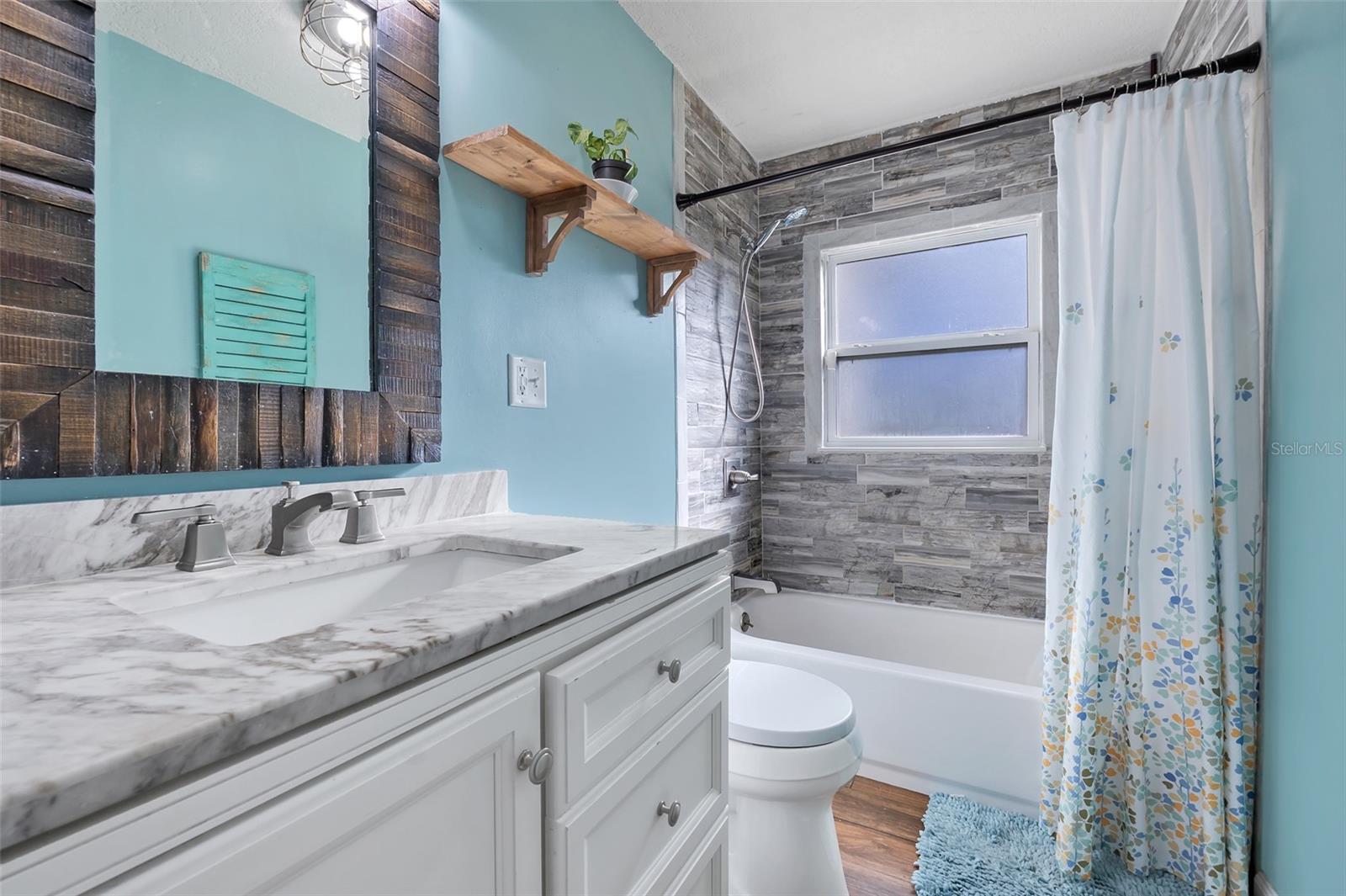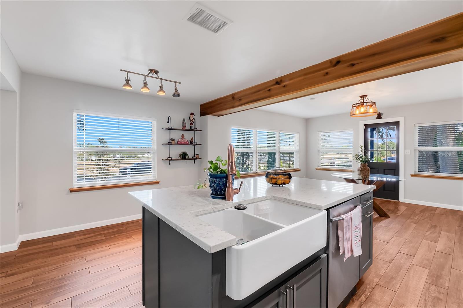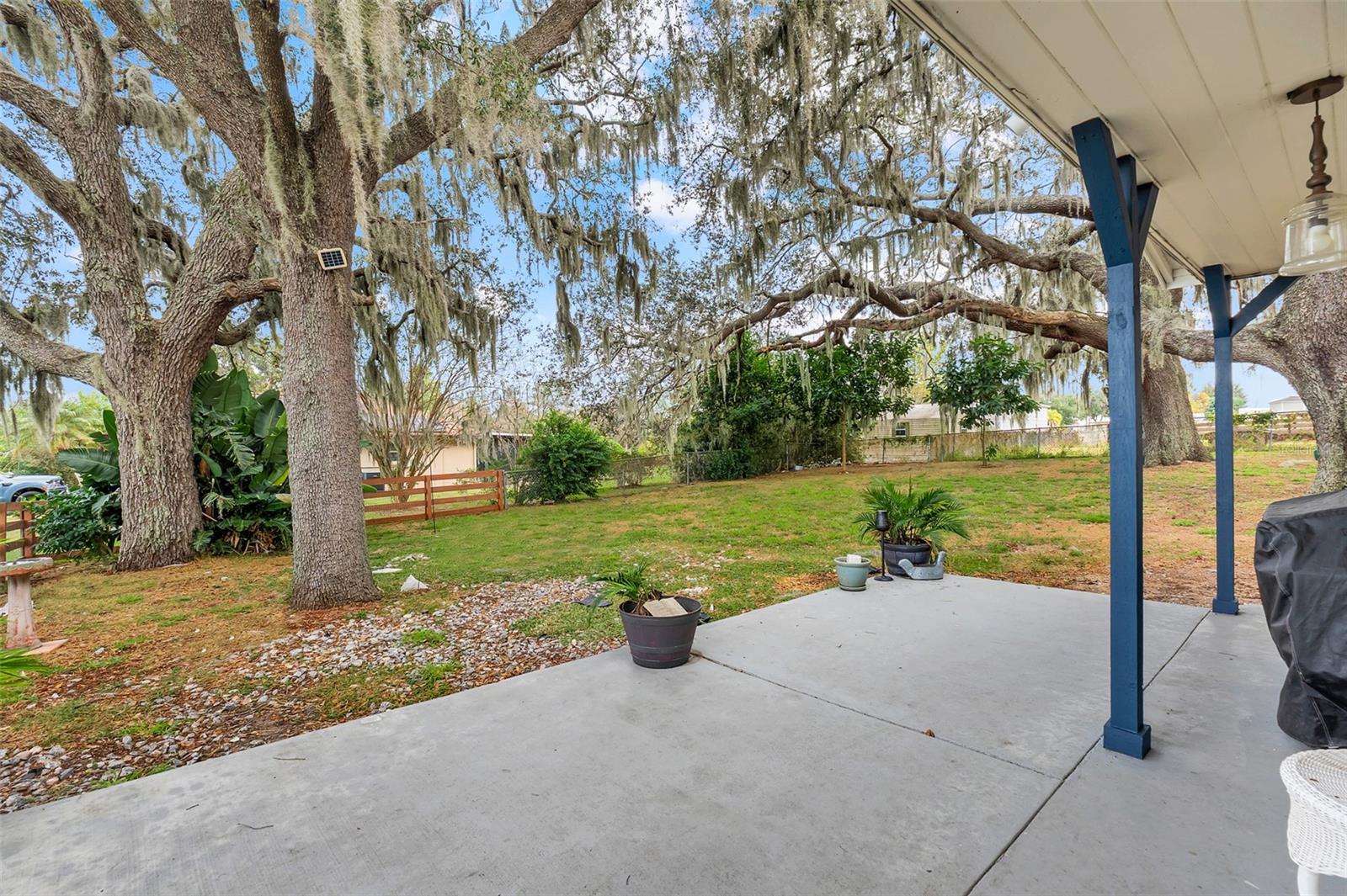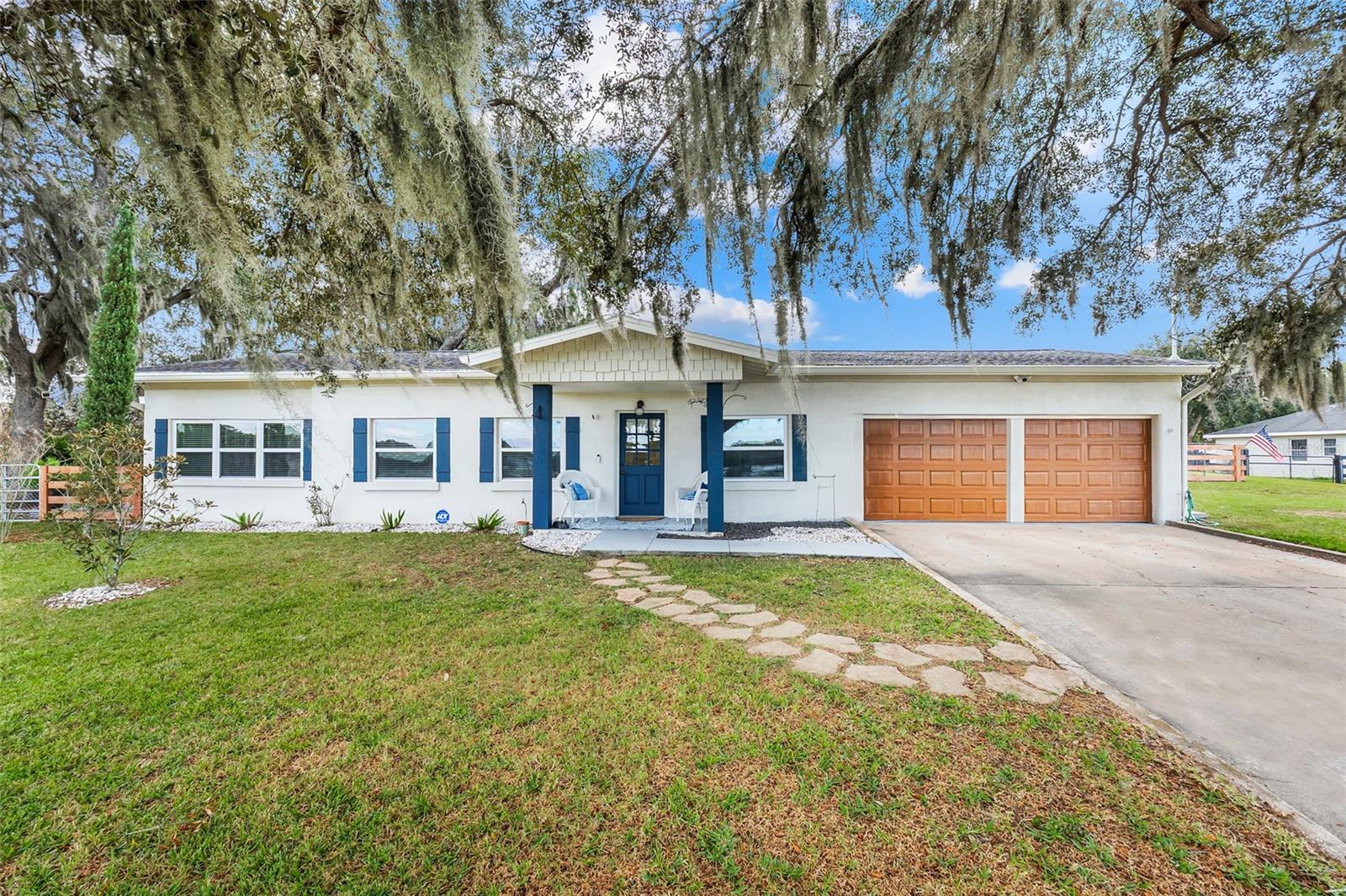 Welcome to your Florida Country Home! This home has that unique style that sets it apart from the typical cookie cutter style. With a wide open floor plan, and wood grain ceramic tile that runs throughout the entire home! The kitchen is the centerpiece of the home with a beautiful oversized kitchen island and simply beautiful granite counters a nice farm apron white sink built in the island and a copper faucet as well as stainless steel appliances and lots of countertops for the cook. The tile backsplash brings it all together with just the right touch of color. There is a nice oversized dining room just off the kitchen with a door that leads out to the large patio (12 ft by 23 ft) overlooking the nice yard with large shade trees -perfect for morning coffee or those backyard BBQ's. This home has 3 bedrooms and 2 bathrooms all with decor tile and style galore! Everyone's dream Laundry room is found here! 18ft long!! With almost 1800 square feet this home is a great size and has so many more features such as: Double car garage with newer garage door designed to match the fence, oversized fenced backyard, an inviting front porch as well as a newer 10ft by 20ft Lark Storage shed.(has been pre-wired to add power)There is also a water softener. This home has NO HOA!! Bring the Chickens, the Boat! The RV or all three!! The public boat dock is just down the street to launch your boat! You must see this home to appreciate! New AC installed in 2024. Complete remodel in 2017!
