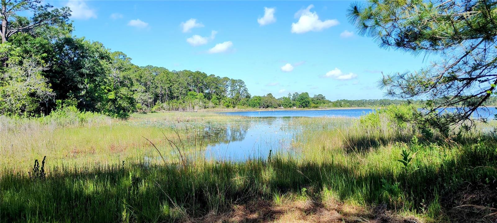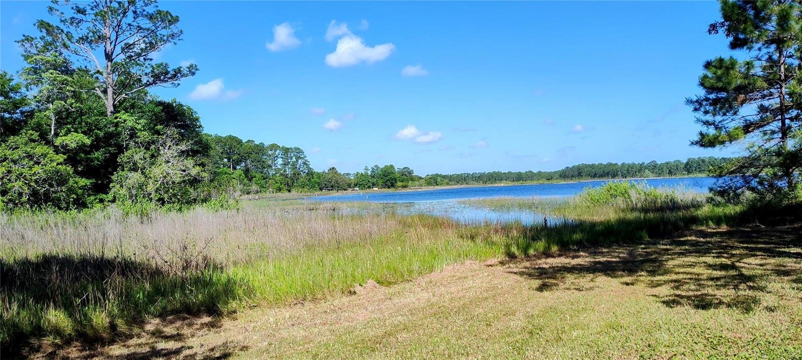 Looking for a beautiful sunset? Rare oppurtunity to own beautiful acreage on Schimmerhorn Lake with three seperate buildable parcels, and a private deeded drive. This property has an old cabin in need of TLC or replacement. This property would make a great family estate with quick acces to the Ocala National Forest. Beautiful oak and orange trees around the home, and the most amazing sunsets over the Lake!!