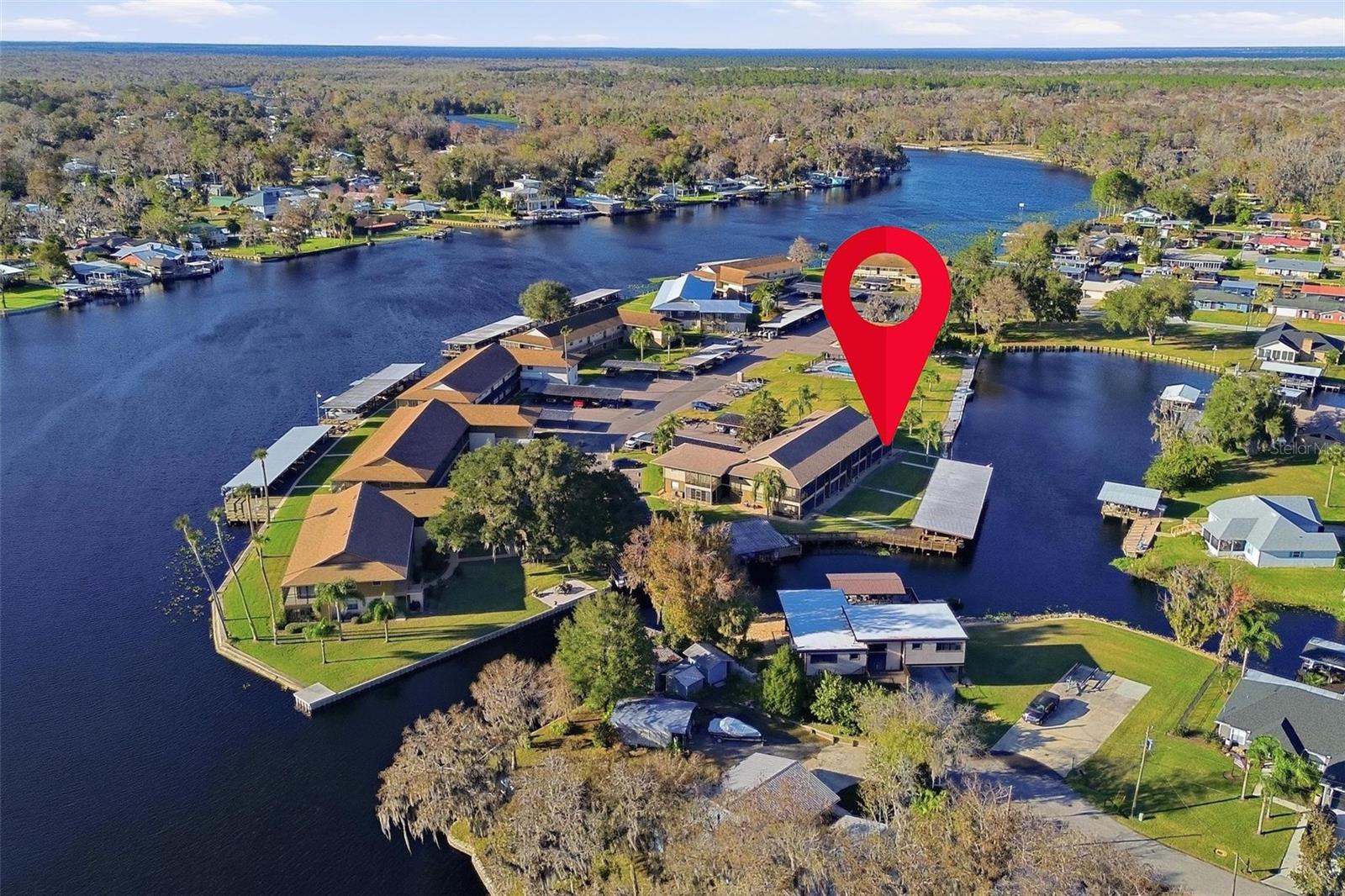 Welcome to your riverside retreat! This exquisite 2 bedroom, 2 bathroom condo offers the ultimate waterfront living on the iconic St. Johns River- Complete with your own private boathouse and direct access via a scenic canal. Step inside to discover an open and bright floor plan, perfect for entertaining or simply relaxing. The adjacent dining space flows naturally into the well-appointed kitchen, complete with the modern appliances, ample cabinetry, and a breakfast bar. Retreat to the primary suite with ensuite bath and water views. A second bedroom and full bath offering comfort and flexibility-ideal for guests, a home office, or a hobby room. Outdoors, enjoy your dedicated boathouse and dock on the canal that leads directly to the St. Johns River- Perfect for boating, fishing, paddle boarding, or sunset cruises. Gorgeous river breezes and stunning sunrises await just beyond your doorstep. The community also offers well-maintained grounds, easy access to nearby dining, and recreational amenities. Call for your private Showing today!