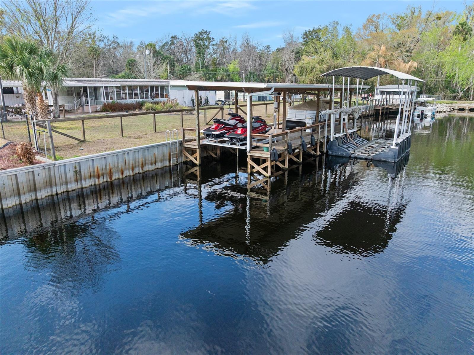 Welcome to the ASTORLIFE! If you're dreaming of small-town WATERFRONT RIVER LIVING, you've found your Fishermans Paradise right here! Imagine boating and fishing from your own backyard and your neighborhood being golf cart friendly!! You can even drive to your local River restaurants by boat or golf cart. This property offers 120 feet of gorgeous CANAL waterfront property complete with a beautiful newer seawall, Dock, two covered boat lifts plus dual jet ski lifts. Home also offers ample space for guests, featuring four bedrooms and two bathrooms, plus a bonus bedroom or office. Recent upgrades include a kitchen remodeled in 2018, updated electrical systems, a 2018 mini-split, and a newer HVAC system. Location wise this home is a national treasure, nestled on one of the widest, deepest, and most beautiful canals in Astor. It features a stunning Florida room that is fully climate-controlled, allowing you to relax and enjoy the sunshine and dreamy views with your morning coffee. Outside, you can enjoy a private oasis complete with a hot tub to provide the lifestyle you deserve. Property size is a third of an acre and is fully fenced, featuring a double carport with plenty of room for recreation and "toys." It also includes an RV hookup and dump station, as well as a paved patio area perfect for entertaining. For added convenience, a public boat launch is located just around the corner. All information should be verified by buyer and buyers agent
