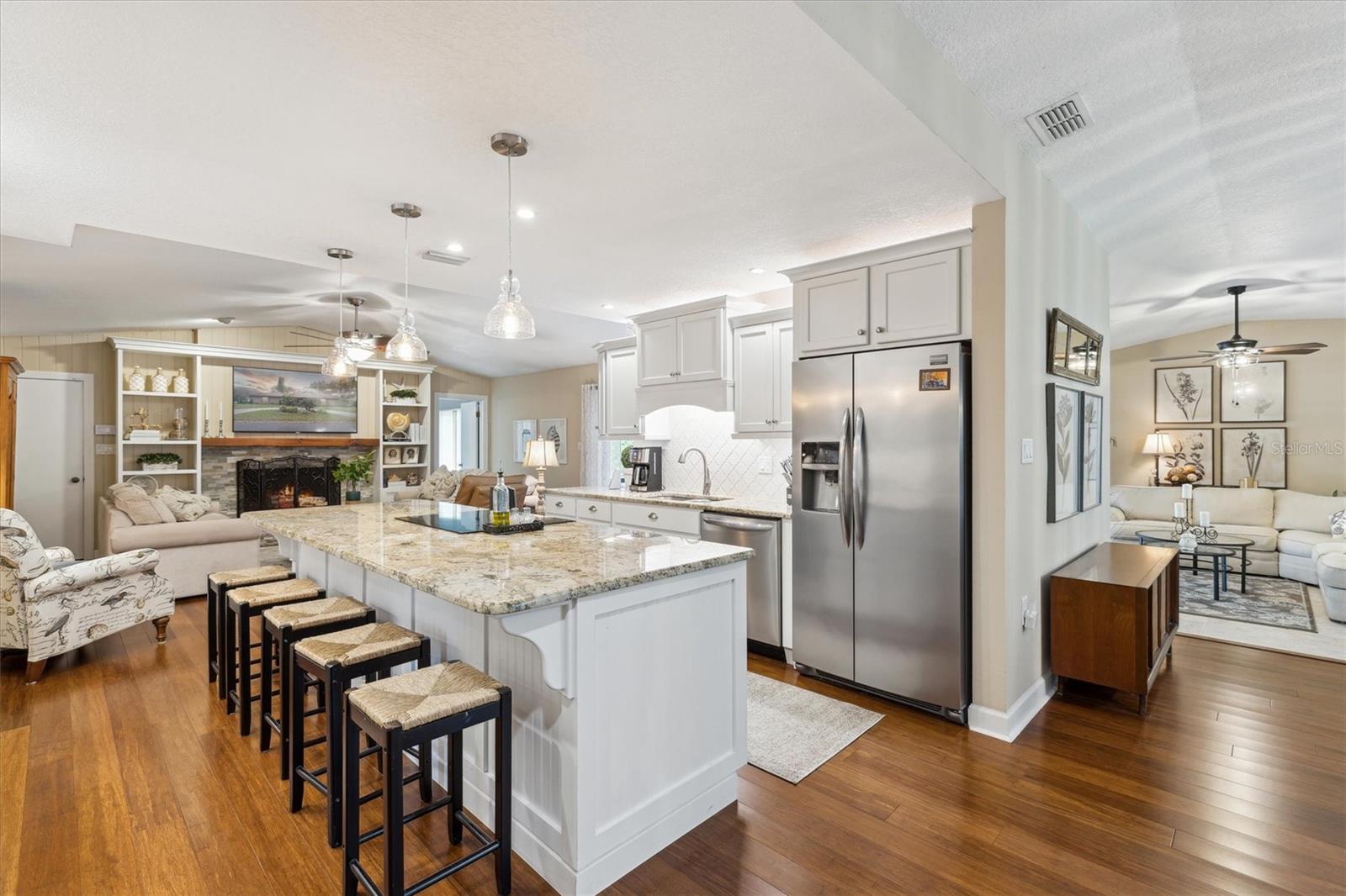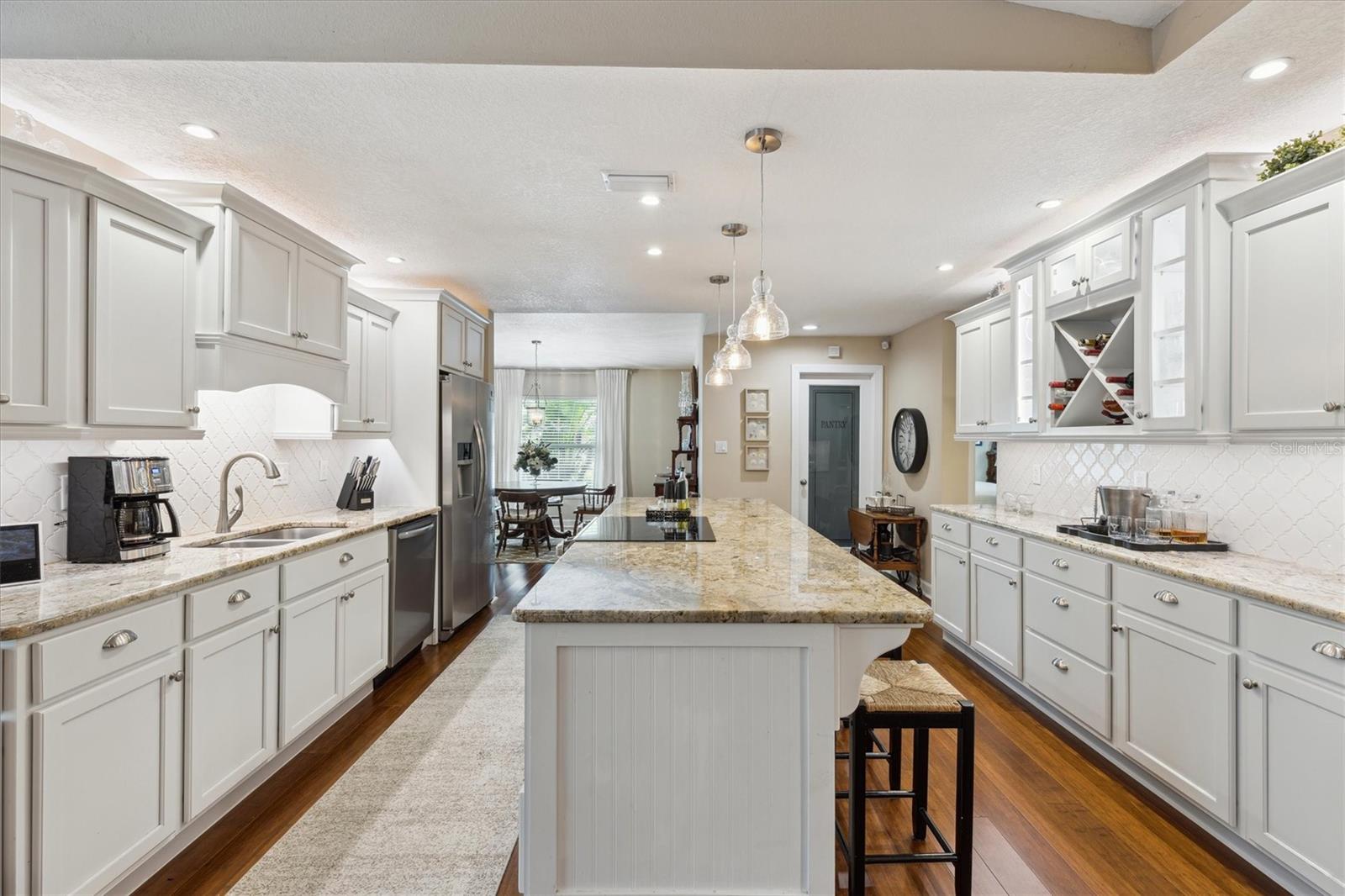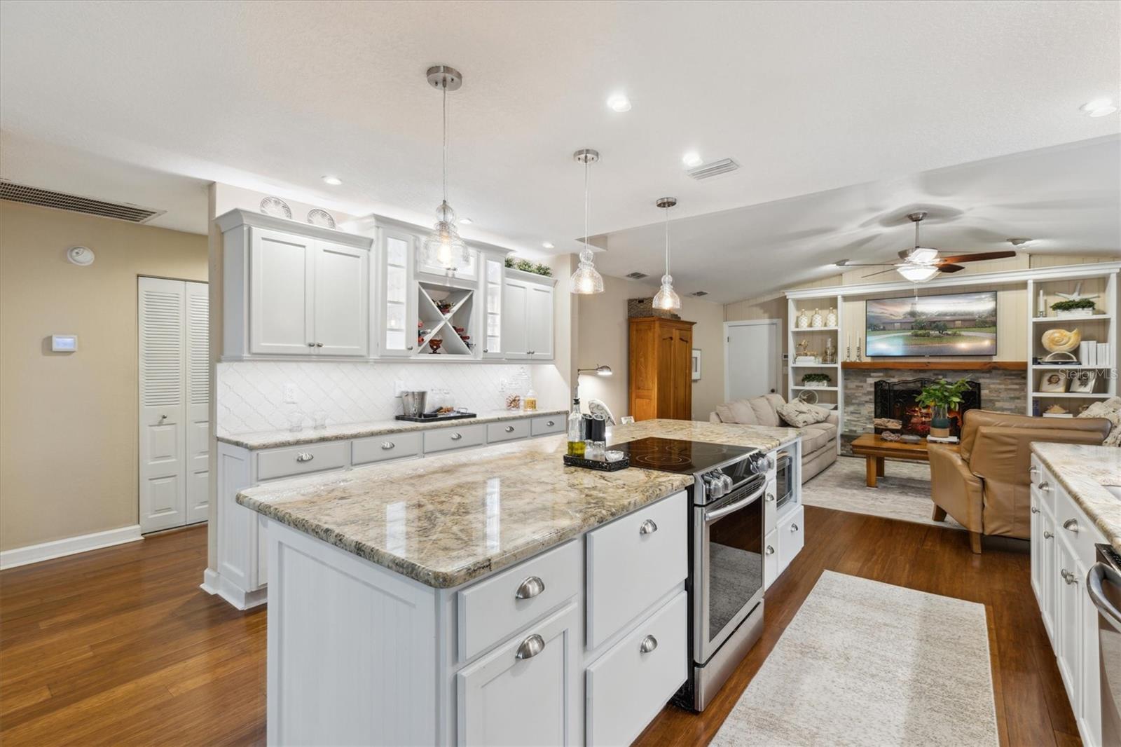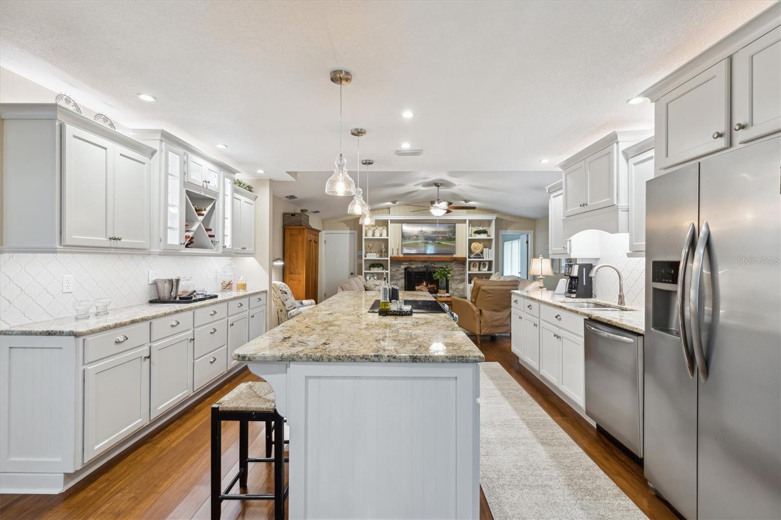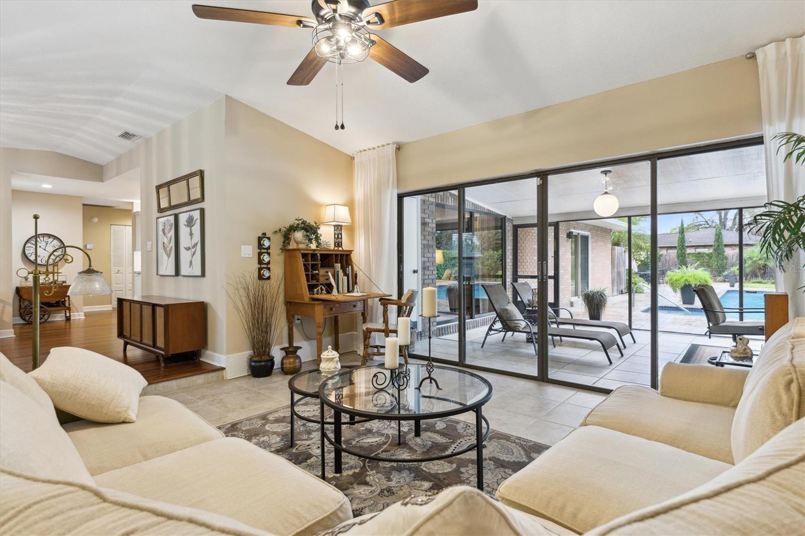 Indulge in resort-style living with this exquisite estate, perfectly positioned on a premium corner lot in a secluded community with exclusive private access to Lake Whistler. Every detail of this home has been thoughtfully designed and meticulously maintained, offering an unparalleled blend of luxury, comfort, and cutting-edge technology. Step into your own private paradise, where the breathtaking backyard oasis invites you to unwind in a magnificent 20x40 saltwater pool, framed by a stunning paver deck, lush professional landscaping, and enchanting exterior downlighting. Whether you're lounging in the shade of the sprawling screened lanai, gathering around the fire pit under the stars, or hosting unforgettable alfresco dinners, this outdoor sanctuary is designed for both relaxation and grand entertaining. A state-of-the-art patio and pool lighting system, along with an automatic irrigation system, ensures effortless beauty year-round. Inside, sophistication meets modern convenience. The expansive open-concept living spaces are adorned with bamboo hardwood floors, soaring ceilings, and oversized double-pane insulated windows that bathe the home in natural light. The chef’s kitchen is a masterpiece, boasting an oversized island with granite countertops, top-of-the-line stainless steel appliances, and custom cabinetry, all designed to elevate your culinary experience. The adjoining great room, complete with a cozy fireplace, flows seamlessly through sliding glass doors to the outdoor retreat, creating an effortless indoor-outdoor living experience. A formal dining room and separate living area add to the grandeur, perfect for elegant gatherings. The owner’s suite is a private sanctuary, offering breathtaking pool views, soaring ceilings, and an indulgent spa-like en-suite with a jetted soaking tub, double vanities, a walk-in shower, and an expansive walk-in closet. Three additional generously sized bedrooms offer ample space for family and guests, with two beautifully appointed guest bathrooms ensuring comfort and convenience. A large indoor laundry room with a walk-in pantry completes the home’s functional yet refined layout. No expense has been spared in equipping this home with the latest smart-home technology and high-end upgrades. Enjoy total peace of mind with a monitored security system, three exterior Ring cameras with audio, a WiFi-controlled 22KW whole-house generator, garage door opener, thermostat, pool pump, and irrigation system. Stay effortlessly connected with fiber optic internet, while the insulated garage door and double-pane energy-efficient windows enhance both security and efficiency. A 2016 architectural shingle roof complete this home’s unparalleled level of quality and care. Luxury, privacy, and modern elegance converge in this extraordinary home. Experience the pinnacle of refined living—schedule your private tour today!