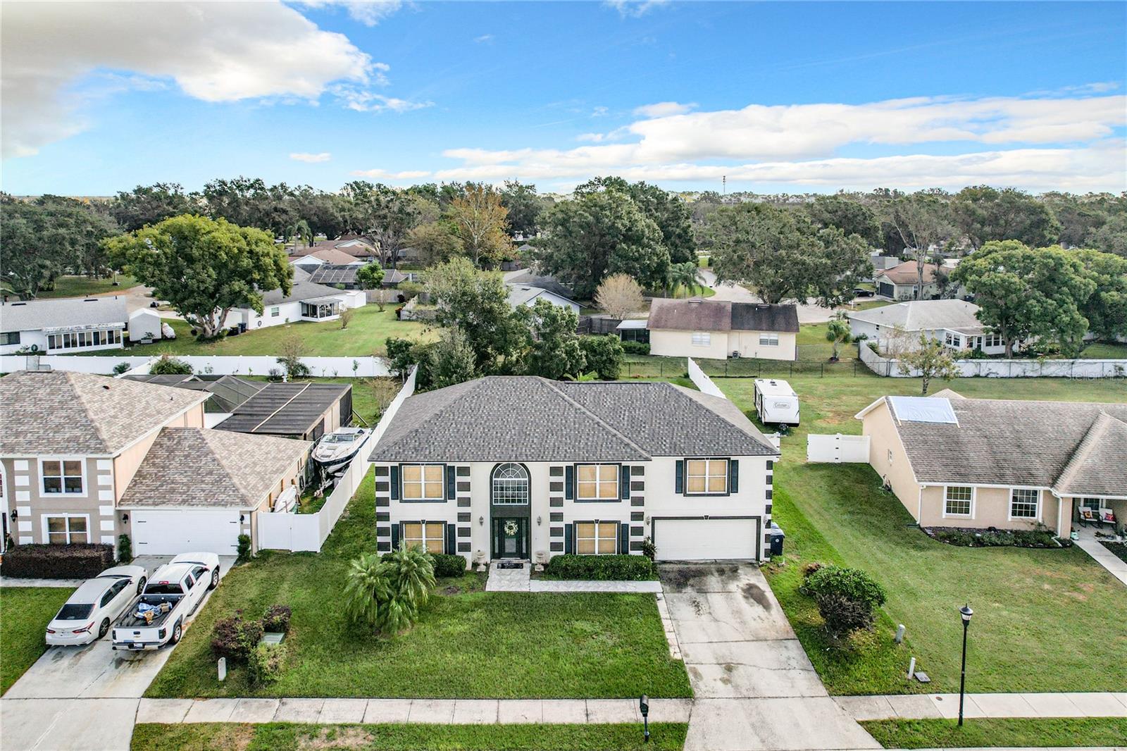 Welcome to this stunning 5-bedroom, 2 1/2 -bathroom home in the gated community of Shaddock Estates in Auburndale, FL. Built on a sprawling quarter-acre lot, this home makes a grand first impression with its towering ceilings and impeccable interiors. As you step inside, the foyer, you’ll be welcomed by a formal living room and grand stair way to the second level. To your left is a private office/den that has the possibility of becoming a sixth bedroom! The kitchen is truly a chef’s dream, featuring custom cabinetry, gleaming granite countertops, stainless steel appliances, and a spacious pantry. The eat-in kitchen area is perfect for casual meals and makes entertaining easy and enjoyable. Beautifully positioned opposite the kitchen, the family sized dining room has a view of the property. There’s also a convenient first level half bath. Upstairs, the family room makes for a great private area for kids, gaming, place space, study area. The oversized primary suite has enough space for a sitting/reading area. The en suite bathroom includes a soaking tub, separate shower/potty closet, and a walk-in closet. Four additional large bedrooms and hall bathroom provide plenty of space for family and guests. The multiple living areas offer flexibility and privacy, giving everyone room to spread out. The outdoor space is equally impressive, with a massive backyard perfect for relaxation or recreation. Some of the home’s recent upgrades include a brand-new roof (Feb 2024), two new AC units (installed in the past two years), new flooring and base boards, new bath tubs/toilets/vanities, French doors to the back yard, and an updated kitchen island. Located near retail shopping, medical offices, restaurants, the interstate, airports, and the Disney parks, this home combines luxury with convenience for it's new owners. Call today to schedule your private showing!