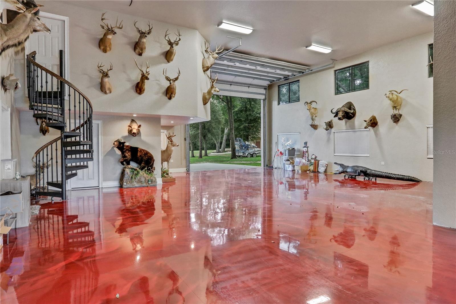 Discover unparalleled luxury at this exceptional property, a true paradise for aficionados of high-end living and expansive collections of vehicles and outdoor toys. Nestled in the heart of Central Florida, this estate offers a perfect blend of lavish accommodations and substantial storage solutions, ideal for a diverse array of hobbies and lifestyles. This architecturally distinct home is not just a residence but a versatile sanctuary designed to cater to every need. The expansive layout is perfect for both grand-scale entertaining and tranquil relaxation, with each space thoughtfully designed to maximize both comfort and functionality. At the heart of this property is an oversized garage, complete with marbled epoxy floors and large loading doors, ready to house everything from a Class A bus to RVs, boats, jet skis, and motorcycles. The garage dimensions are meticulously crafted to accommodate large vehicles, with maximum opening measurements of 13’ 10.5” in height and 15’ 10.5” in width, ensuring that even the largest apparatus can be stored with ease. The living spaces are equally impressive, beginning on the first floor with a fully equipped kitchen and cozy living area, adjacent to a luxury bathroom and an oversized laundry room. The second level is dedicated to relaxation, featuring a generously sized master suite with an expansive closet and en-suite bathroom that exudes comfort and style. Ascend to the third floor to find a loft-style setup that boasts a full bar area, perfect for hosting and celebrations, alongside an adaptable space that can serve as a second bedroom or a media room, adding to the home’s flexibility. Additionally, the opportunity to purchase this property alongside the adjacent listing (#L4952036) presents a rare chance to own a sprawling estate perfect for those seeking a comprehensive lifestyle upgrade or exploring business ventures. The seller is committed to ensuring ease of access with a private drive for ingress and egress, further enhancing this property’s appeal. This estate is a must-see for those dreaming of a practical haven in sunny Florida.