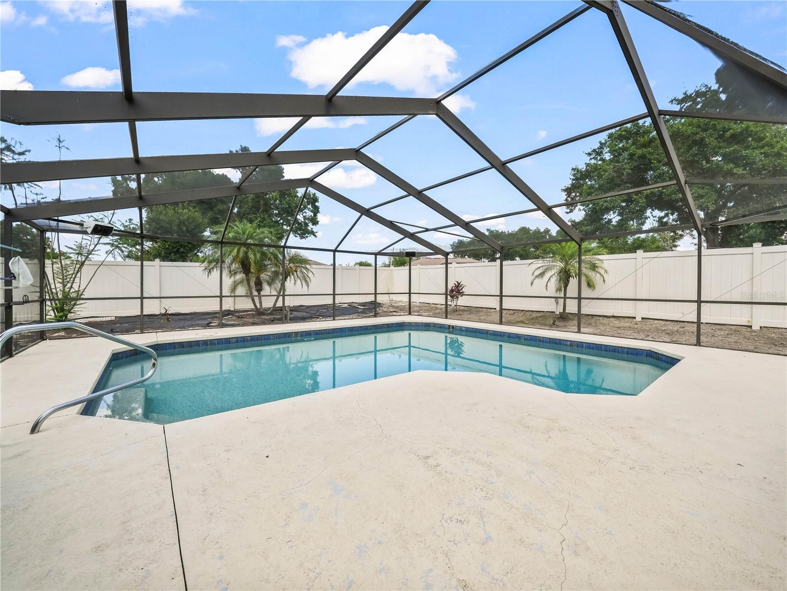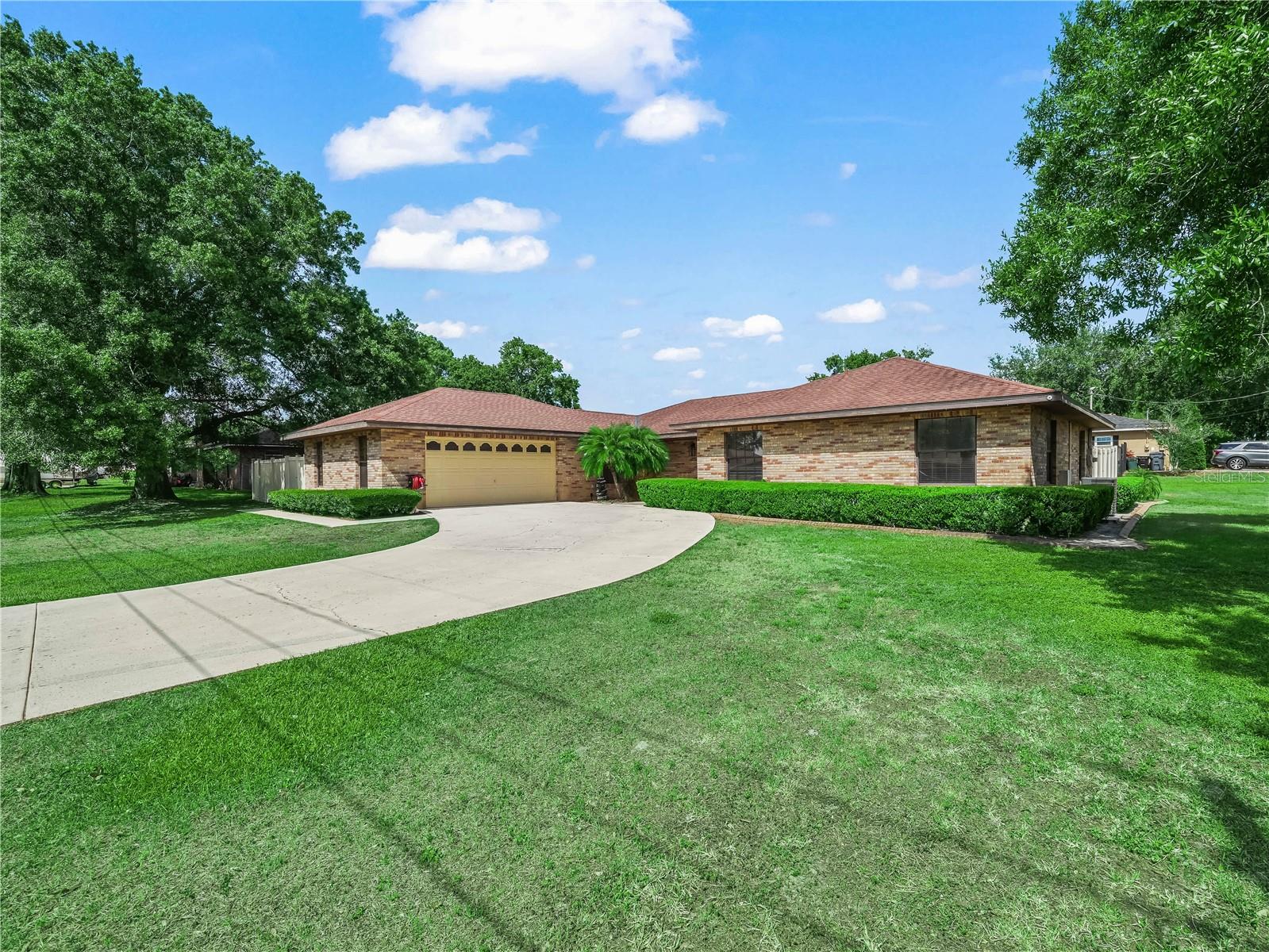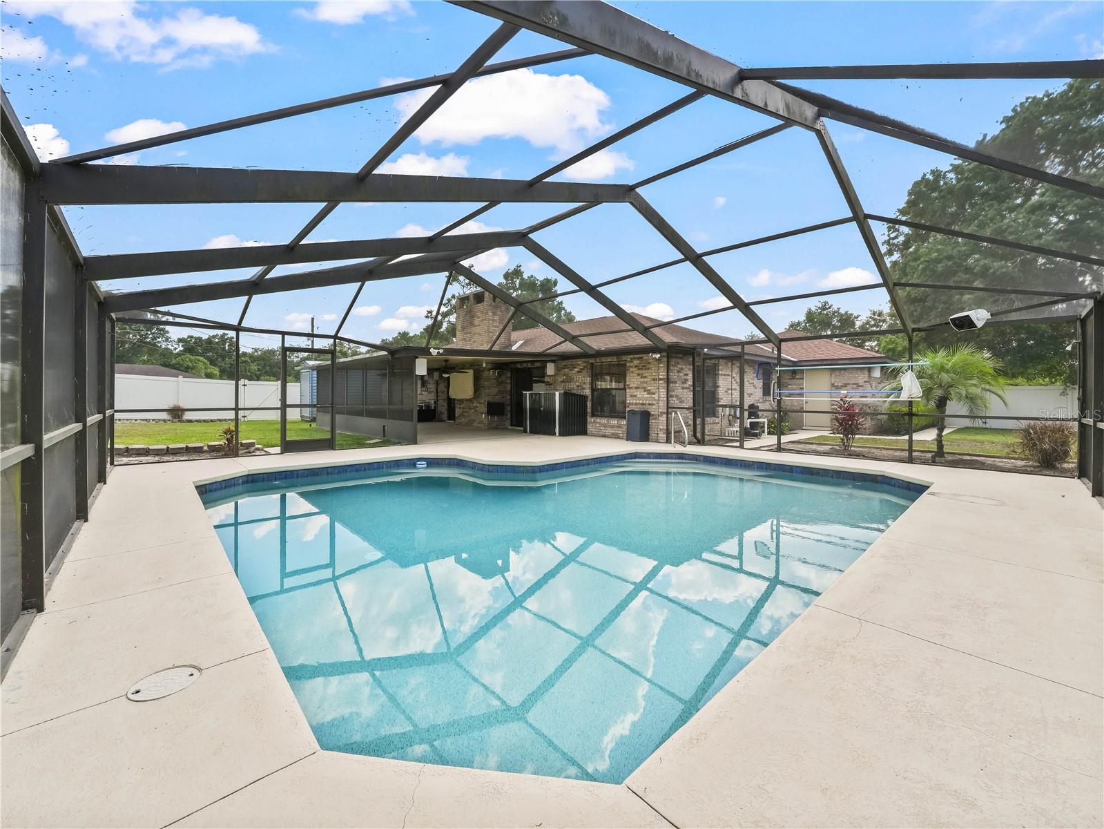 This Brick Ranch Home sits on a spacious .38-acre lot with NO Homeowner Association restrictions. As you enter, you are greeted by a wide foyer that leads to a step-down living room. The living room features a cozy wood-burning fireplace and two sliding glass doors that open to the lanai area, allowing plenty of Florida sunshine to brighten the space. The formal dining room seamlessly connects to the kitchen, which boasts windows overlooking the backyard. The kitchen is equipped with all appliances, an adorable china cabinet for additional storage, and a generously sized walk-in pantry. The separate dinette area is perfect for enjoying your morning coffee while gazing out at the front yard. The main bedroom offers a newly remodeled bathroom with a walk-in shower, providing a private retreat. The second and third bedrooms share a second newly remodeled bathroom, ensuring comfort for family and guests. Step outside to the expansive 16 x 26 screened lanai, ideal for entertaining and summer fun. The in-ground pool is perfect for cooling off on hot days, and the backyard, enclosed with vinyl fencing, offers plenty of room for your favorite garden. Additionally, you can save on water costs with the irrigation well. Don't miss out on this incredible opportunity! Call now for details and make this beautiful home yours today.