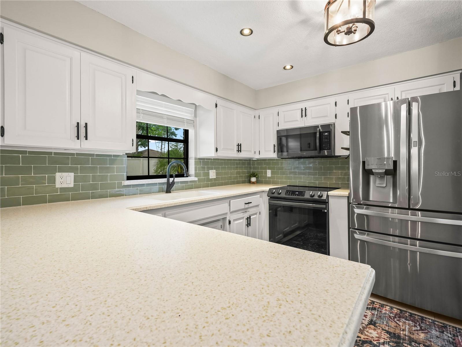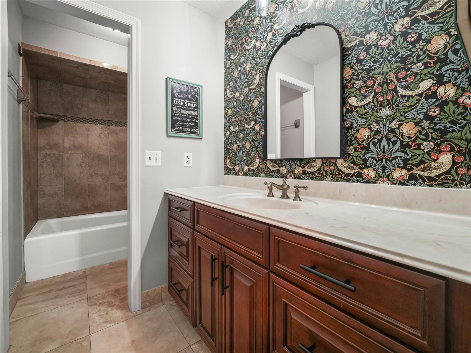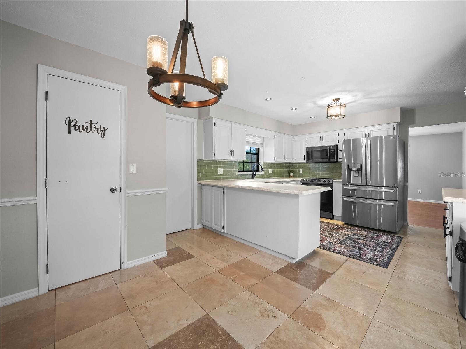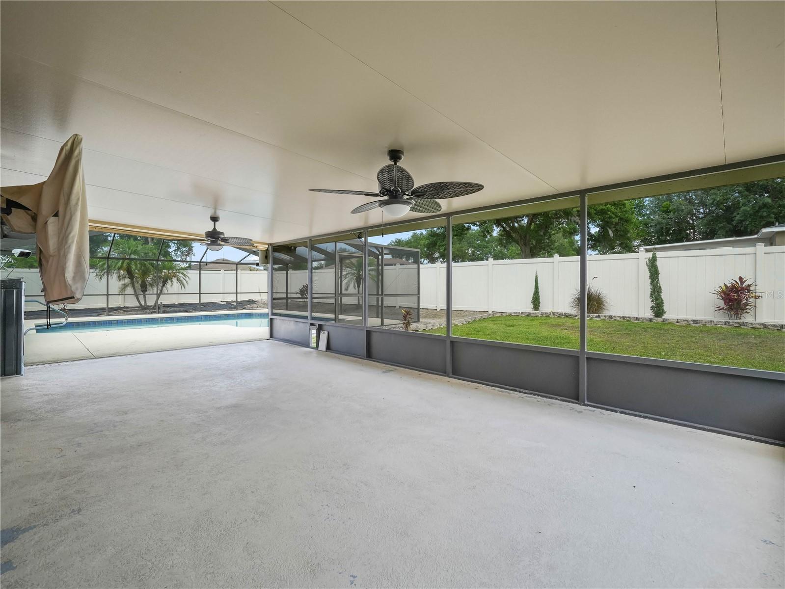 This Brick Ranch Home sits on a spacious .38-acre lot with NO Homeowner Association restrictions. As you enter, you are greeted by a wide foyer that leads to a step-down living room. The living room features a cozy wood-burning fireplace and two sliding glass doors that open to the lanai area, allowing plenty of Florida sunshine to brighten the space. The formal dining room seamlessly connects to the kitchen, which boasts windows overlooking the backyard. The kitchen is equipped with all appliances, an adorable china cabinet for additional storage, and a generously sized walk-in pantry. The separate dinette area is perfect for enjoying your morning coffee while gazing out at the front yard. The main bedroom offers a newly remodeled bathroom with a walk-in shower, providing a private retreat. The second and third bedrooms share a second newly remodeled bathroom, ensuring comfort for family and guests. Step outside to the expansive 16 x 26 screened lanai, ideal for entertaining and summer fun. The in-ground pool is perfect for cooling off on hot days, and the backyard, enclosed with vinyl fencing, offers plenty of room for your favorite garden. Additionally, you can save on water costs with the irrigation well. Don't miss out on this incredible opportunity! Call now for details and make this beautiful home yours today.
