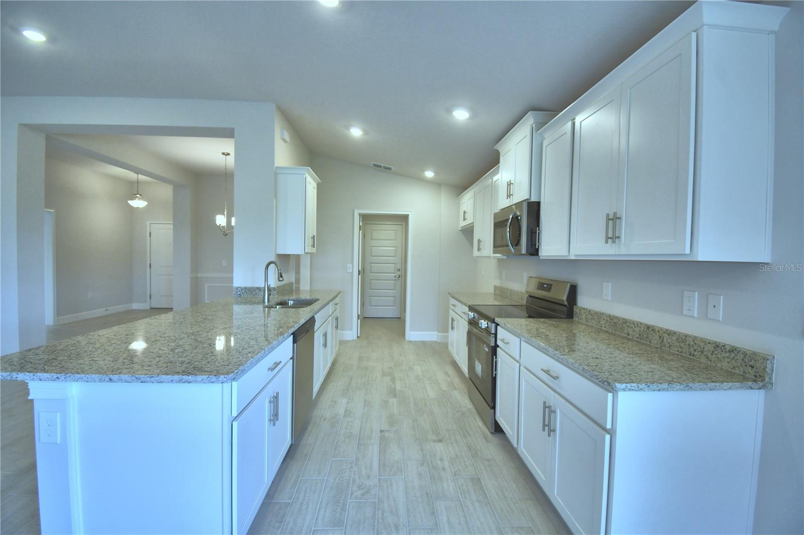 This well-designed 3-bedroom, 2-bath, 2-car garage home offers an open-concept layout that lives comfortably and efficiently. A spacious foyer welcomes you into the heart of the home, where the kitchen, dining, and great room flow together seamlessly—creating a warm, inviting space that works well for both everyday living and entertaining. The kitchen features granite countertops, a large bar area that naturally becomes a central gathering spot, and a thoughtfully placed laundry room/pantry combination that maximizes functionality. Homes with this layout are often favored by households who enjoy using the kitchen bar for casual meals, homework time, or visiting with friends, while the open great room allows the space to adapt easily to both quiet evenings and social occasions. Level 3 plank tile flooring runs throughout the main living areas, with carpet in the bedrooms and closets for added comfort. The primary suite is privately located and includes a tray ceiling and a well-appointed ensuite featuring a plank tile shower with glass enclosure. This separation of space works especially well for households who value a peaceful retreat at the end of the day. Secondary bedrooms are nicely sized and share a full bath with plank tile finishes, offering flexibility for family members, guests, or a home office setup. In a market where buyers are increasingly looking for smart use of space paired with modern finishes, this floorplan stands out by delivering the features buyers want without unnecessary square footage. Located in Lake Juliana Estates, residents enjoy a gated community with two entry gates, a private boat ramp and dock, clubhouse with fitness center, pool, tennis and basketball courts, playground, and more—along with convenient access to I-4 and the Polk Parkway. Buyers who choose this home can feel confident they are securing a balanced combination of comfort, functionality, and community lifestyle. It’s a practical, well-thought-out choice for those who want a home that supports daily routines while still feeling welcoming and easy to enjoy.