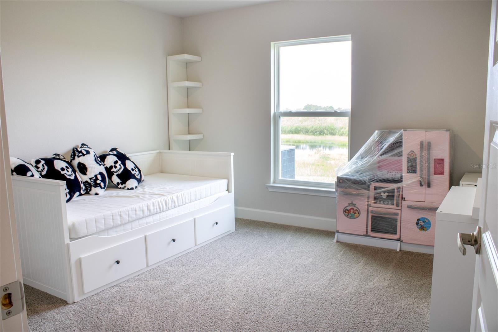 IMPROVED PRICE! If you are looking for a new home with an amazing location near the Polk Parkway, a cute front porch, a little more land than usual, and a 3-car garage, this 4-bedroom, 3 full bath, beauty could be the answer you have been looking for. The first thing you will notice is that you have space, inside and out. Also, there will never be rear neighbors and the pond view is very peaceful. The cozy front porch is amazing on a cool winter morning, as is the covered rear lanai - perfect for cookouts and sitting around with friends bragging about your favorite ball team. There is a flex room at the front which could be an at home office, formal living space, or den. The dining room is ideal for dinner parties, and the kitchen breakfast bar, and adjacent dinette are great for quick and casual meals. The great room and open plan layout really make the space feel airy, as do all the windows and glass doors that let in loads of natural light. The bright kitchen is the center of the home and will be great for bakers and cooks with all the available counter space. The master suite is set apart from the other bedrooms in this split floor plan design. It has a large bedroom, two separate walk-in-closets, and the "coup de gras" is the split vanities with separate shower and soaking tub in the main bathroom, heaven. The pool bath is adjacent to two of the bedrooms, has an extra long double vanity, and outdoor access to the lanai. The other secondary bedroom has a next door bathroom room too. There is a laundry room inside with a shelf to place all your supplies. The 3-car garage has a lot of space, plenty for your vehicles and for some storage. This brand new 2025 built Adams home was just purchased, and due to a family emergency the owner must sell now. The washer, dryer and refrigerator do not convey (they just bought them). Please take a look at the pictures. There is a survey on file. If you like what you see, please request a showing immediately. This home is new and below market price. Don't miss out, see it today.