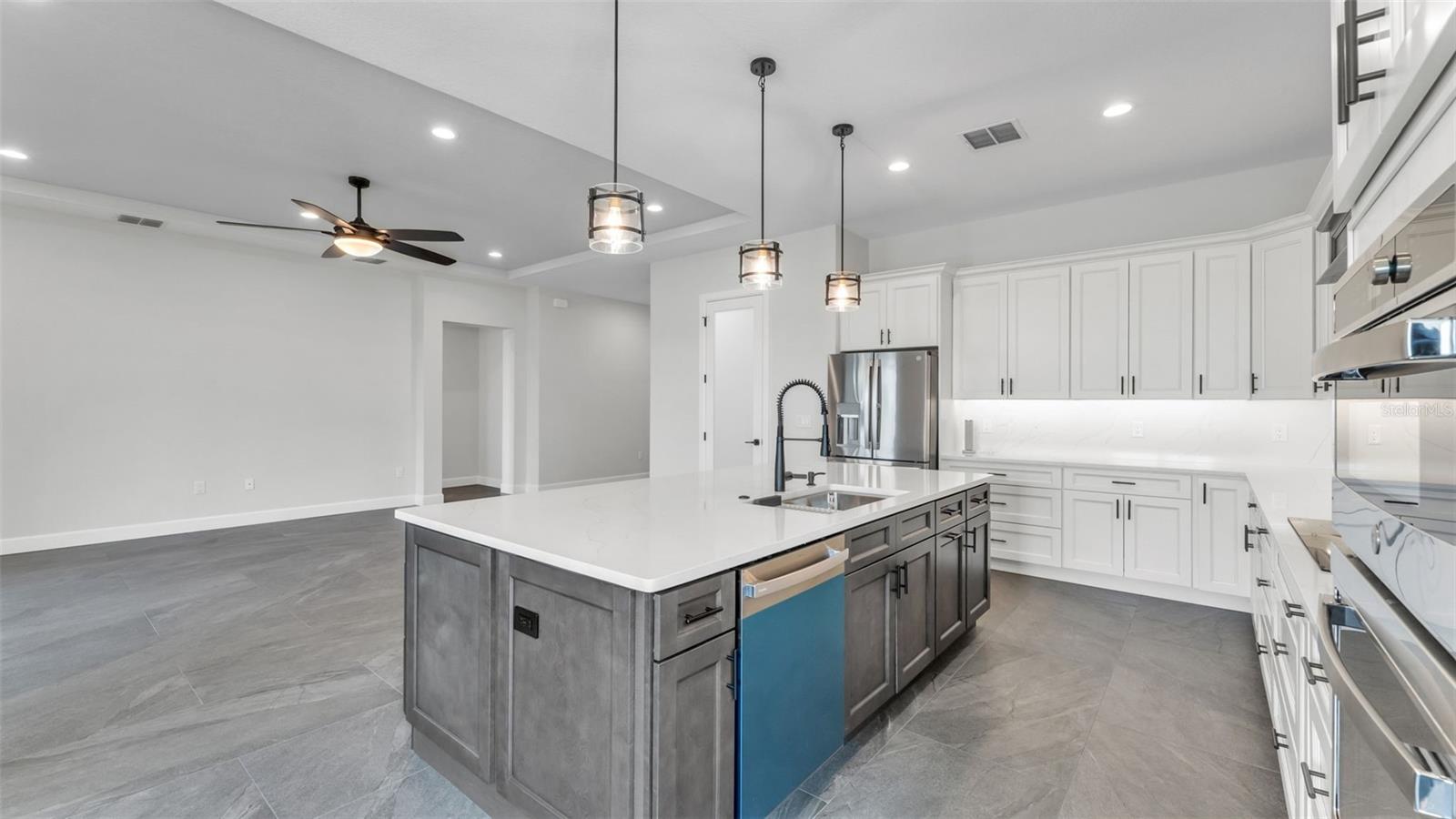 Welcome to 224 Valencia Ridge Drive, a stunning luxury new build with enhanced curb appeal and waterfront views, located in the gated lakefront community of Water Ridge in Auburndale, Florida. This beautifully designed 2,533 sq. ft. home features 4 spacious bedrooms, two of which are primary bedroom suites and the second one with it’s own entryway front door, 3 luxurious bathrooms, and a 2-car garage, perfectly blending elegance, comfort, and convenience. Inside, soaring 10-foot ceilings, tray details in the great room and primary suite, and premium finishes create an inviting atmosphere. The gourmet kitchen is a chef’s dream, showcasing GE Profile stainless steel appliances, a French door refrigerator with door-in-door design, built-in touch-control electric cooktop, wall oven and microwave combination, quartz countertops, pot filler, under-cabinet LED lighting, and Forevermark hardwood cabinetry with soft-close drawers and pull-out shelves. The owner’s retreat provides a spa-inspired sanctuary with dual Kohler sinks, a large walk-in shower, soaking tub, and an expansive walk-in closet with custom shelving. Each bathroom is finished with quartz counters, Delta matte faucets, and decorative vanity mirrors. Smart home upgrades include a WiFi-enabled video doorbell, LiftMaster garage door opener, Hydrawise 5-zone irrigation system, Cat 5 ethernet connections, USB-C outlets, and a smart thermostat. Energy-efficient features such as a hybrid 80-gallon water heater, 16 SEER Trane HVAC system, and insulated double-pane windows deliver both performance and savings. Step outside to enjoy Florida living at its finest. This waterfront homesite offers serene views right from the backyard, with a large screened lanai featuring paver stone flooring and outdoor kitchen hookups, all overlooking the lake and Florida-friendly landscaped yard designed for low maintenance and natural beauty. The garage offers an electric car charger hookup, modern insulated doors, and additional storage. Living in Water Ridge means more than just a home - it’s a lifestyle. This gated lakefront community is rich with amenities, offering 2 resort-style pools plus a lap pool, 4 lighted tennis courts, a recreation field, and scenic walking trails perfect for biking or nature walks. Residents also enjoy a state-of-the-art fitness center, fitness classes, onsite boat and RV storage, and access to a variety of watersports. With easy access to major highways, local shopping, dining, and entertainment, Water Ridge is the perfect balance of convenience and exclusivity close to all the action yet designed to offer residents the privacy of a secluded, upscale retreat. 224 Valencia Ridge Drive is more than a home - it’s a rare waterfront opportunity to experience the very best of Florida luxury living. Schedule your showing today!