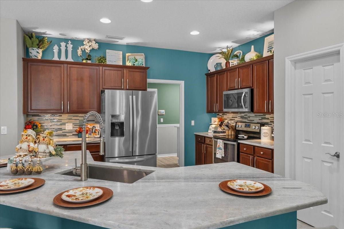 Discover your dream home in the highly sought-after community of The Estates of Auburndale! This meticulously maintained residence, rare to find, is situated on a beautifully landscaped quarter-acre lot with charming tree-lined streets. This updated 3-bedroom, 2-bath home offers over 2,200 square feet of elegant living space, totaling 3,067 square feet. As you step inside, you'll be greeted by a spacious interior filled with natural light. To the left, a stunning formal dining room features high ceilings and large windows that overlook the serene courtyard. The heart of the home is the updated chef's kitchen, equipped with granite countertops, new stainless steel appliances, mahogany cabinets, a breakfast bar, a cozy dinette area, and a walk-in pantry. Adjacent to the kitchen, the laundry room boasts luxury laminate plank flooring, ample cabinetry, a sink, and plenty of space for folding clothes. The family room, also featuring luxury laminate flooring, is perfect for movie nights with its surround sound system and sliders that lead to an inviting lanai—ideal for entertaining. The master suite is a true sanctuary, offering breathtaking views of the lanai and an en suite bathroom you'll never want to leave. The standout feature of this expansive master suite is the custom closet with built-ins—an absolute must-see! Sliders lead out to the lanai, where you can unwind in the hot tub or simply relax in the beautiful outdoor space. The master bathroom includes two additional walk-in closets, dual vanity sinks, a large garden tub, a walk-in shower, and a cozy water closet. On the opposite side of the home, you'll find two additional bedrooms and a fully remodeled bath, featuring granite countertops, stylish light fixtures, and new faucets. Step out to the lanai, where you'll find a tropical oasis with ample seating and a spa overlooking the backyard. The fully enclosed backyard is secured with vinyl fencing with a gate on the left side. With a new roof installed in 2023 and numerous updates throughout, this home is move-in ready. Conveniently located just a short walk to the bus stop and a stroll away from the community pool, offering an adult pool, kiddie pool, park, basketball courts, and a must-see turtle habitat. Don’t miss the chance to visit this exceptional home—come see for yourself why it’s truly a remarkable value! Centrally located and just minutes from I-4 and the Polk Parkway, this home is ready for you to make it your own.