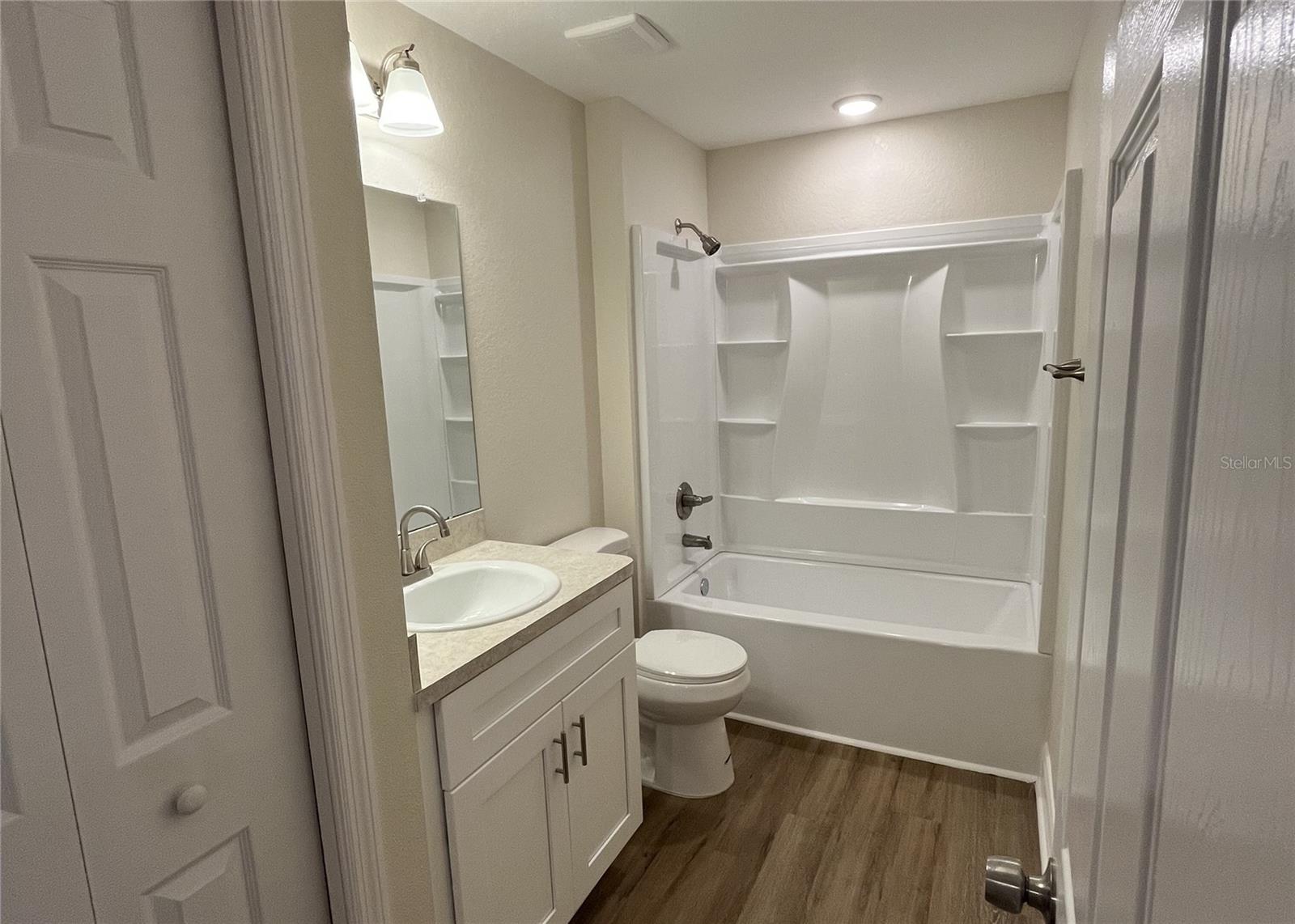 Under Construction. NO HOA! NEW CONSTRUCTION! This brand new block home in Auburndale, FL offers 3 bedrooms, 2 full bathrooms. Open floor plan with laminate in all living areas and carpet in the bedrooms. The openness continues to flow through the kitchen and dining area. Beautiful white shaker cabinets in kitchen and bathrooms. Stainless steel appliances. Indoor laundry closet with washer/dryer hook-ups. An enclosed 1-car garage finishes off this beautiful new home. Situated just blocks away from the redeveloped Lake Ariana Park, the new 30,000 sq. ft. civic center was designed to host large events such as wedding receptions and city functions. The broader park redevelopment includes a range of outdoor amenities for neighbors, like a community boat ramp, boat docks, picnic pavilions, playgrounds, beach volleyball courts, and an event lawn. **PICTURES ARE OF A DIFFERENT HOME WITH THE SAME FLOORPLAN AND INTERIOR FINISHES.