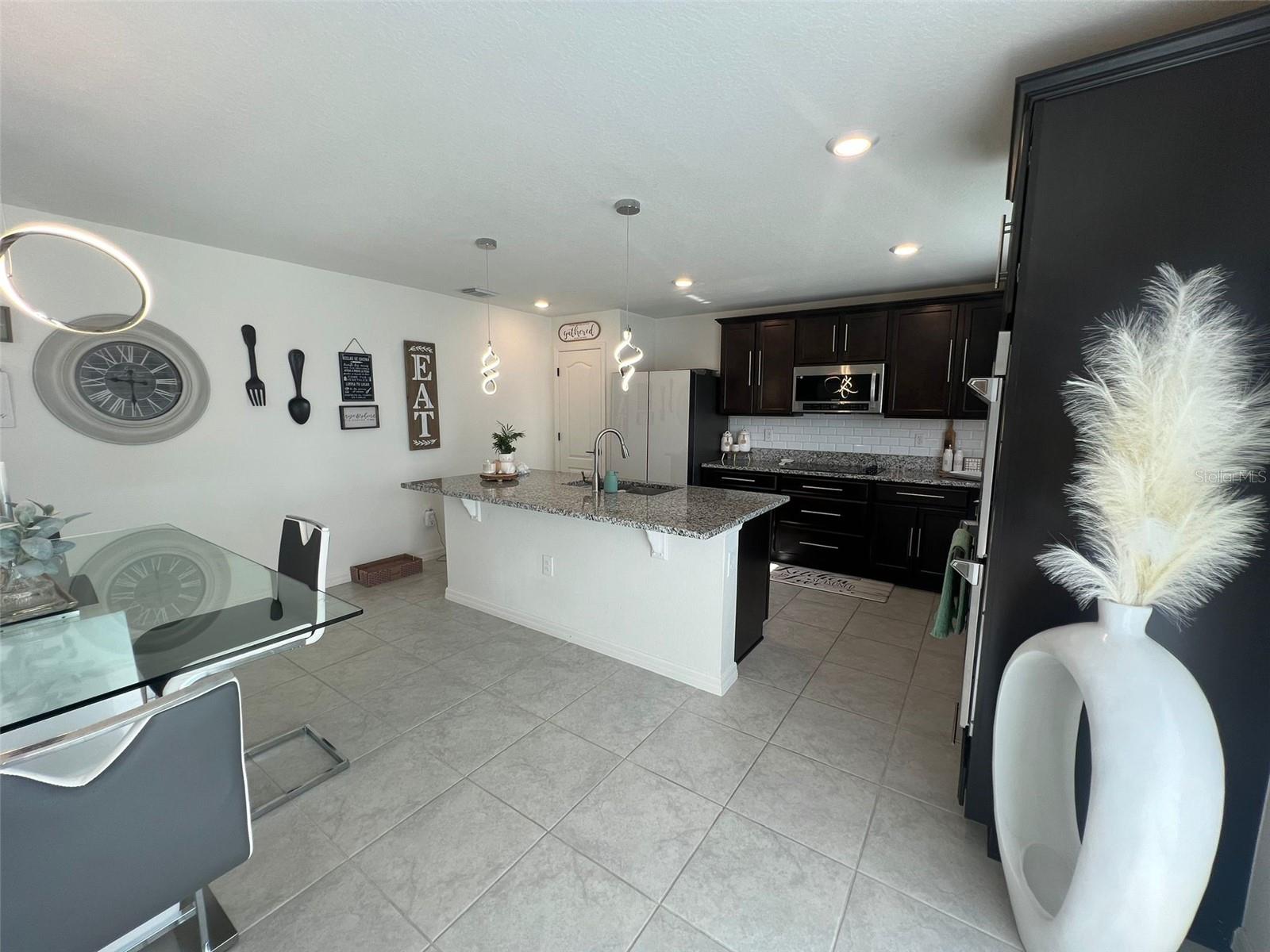 Welcome Home! This stunning home boasts 5 bedrooms and 3 bathrooms, embodying everything you have been seeking. The home offers ample space with an open floor plan, a 30 year roofing shingles, beautiful blinds throughout the house, and a modern style accent wall in the living room . The stunning gourmet kitchen is designed with a large at-eat area adorned with trendy pendant lighting that overlooks an open and inviting great room, double oven, stainless steel appliances, stylish tile backsplash, 36" cabinets with crown molding, granite counter tops and a modern glass door refrigerator. A tiled guest bedroom on the first floor is ideal for family or visitors. Upstairs, the large owner's suit, three other generously sized bedrooms and the laundry room offers flexibility. Schedule your appointment today!