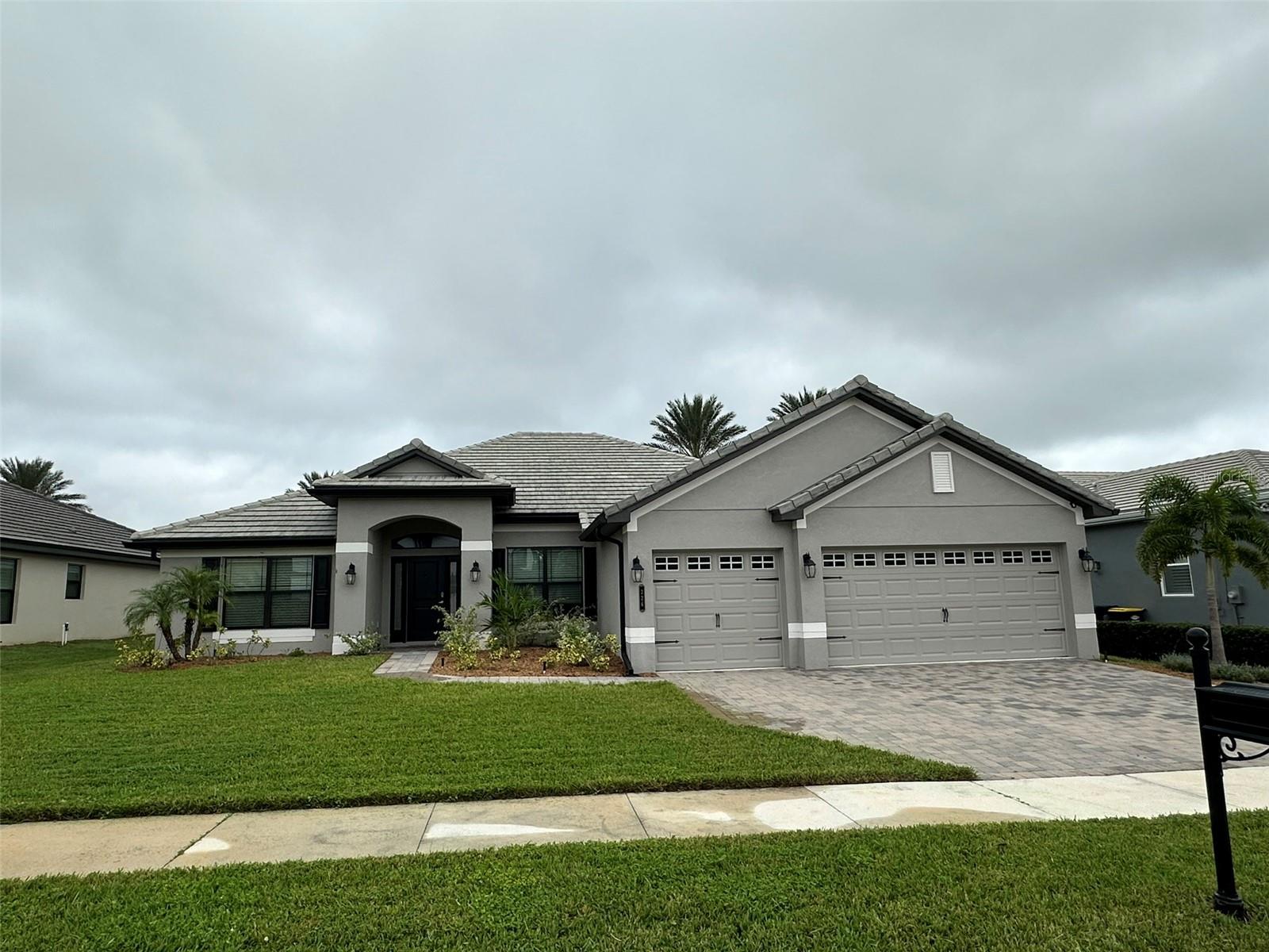 Welcome to the beautiful Lake Juliana Estates, where luxury meets comfort in this four-bedroom, three-bathroom home with a three-car garage and a host of upgrades throughout. The open-concept layout features a spacious great room, dining room, and kitchen with vaulted ceilings, display ledges, and stunning granite countertops. The dining room is enhanced with elegant wainscoting, adding a touch of sophistication, while the kitchen boasts stainless steel appliances and a large island, perfect for entertaining. This home has been thoughtfully upgraded, including a built-in electric fireplace in the living room, complete with a TV mounting shelf for added convenience. The expansive primary suite offers two walk-in closets and a luxurious ensuite with dual sinks, a large tub, and a shower tiled to the ceiling. One of the bathrooms has been remodeled with a walk-in shower and accessible grab bars for extra comfort and functionality. A whole-house water filtration system adds peace of mind. The split floor plan provides privacy and functionality, with one bedroom and bathroom located on one side of the kitchen, while two additional bedrooms and the updated bathroom are together on the opposite side. The primary suite is situated separately, ensuring a private retreat for homeowners. Step outside to the covered lanai, perfect for relaxing or entertaining, and enjoy the large fenced-in yard, offering plenty of space to create your own outdoor oasis. The pavered driveway and tile roof further enhance the home's curb appeal. Located in a gated community with resort-style amenities, including a lakefront pool, fitness center, clubhouse, tennis (with pickleball) and basketball courts, playground, and private boat ramp, this home strikes the perfect balance of relaxation and recreation. Conveniently situated between Tampa and Orlando, with easy access to I-4 and a brand-new Publix nearby, this home offers both privacy and proximity to everything you need. Don't miss out on this move-in-ready gem—schedule your showing today and experience the exceptional lifestyle waiting for your family at Lake Juliana Estates!