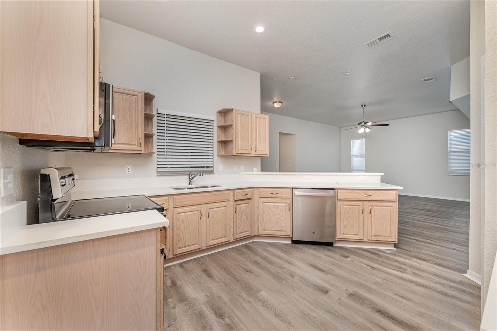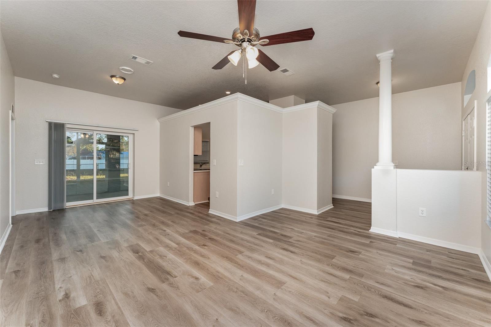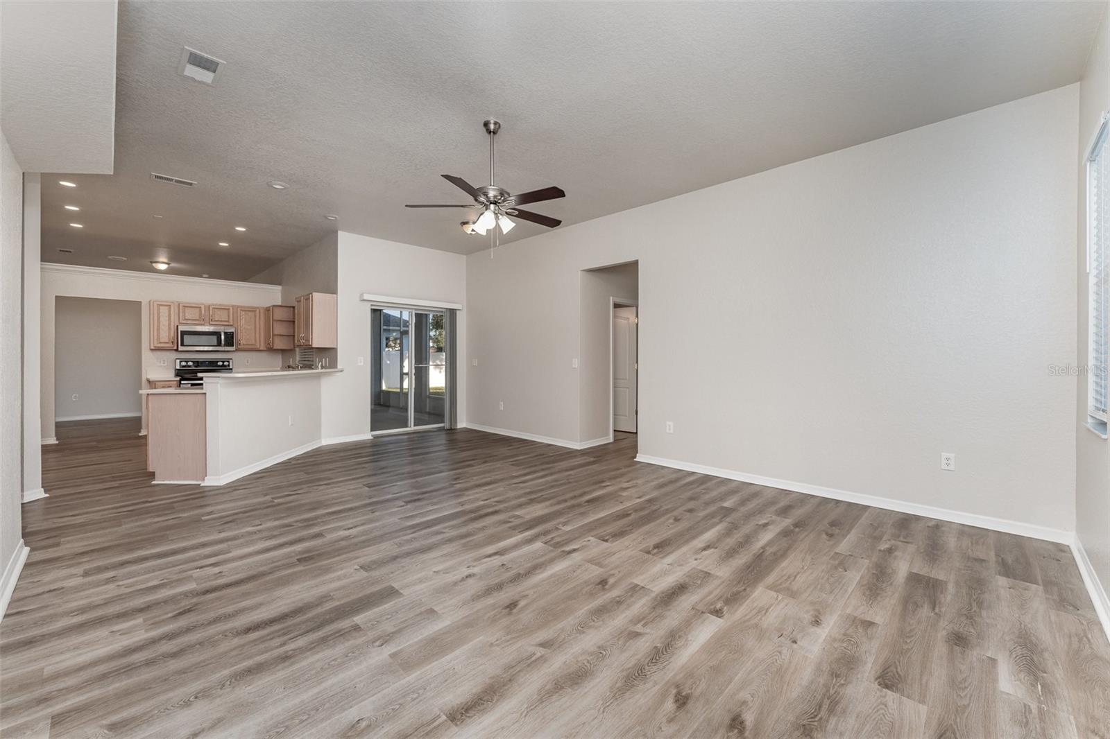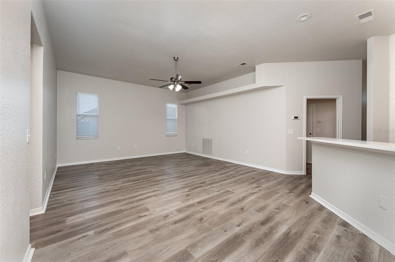 Discover this move in ready 3 bed/2 bath home featuring a spacious primary bedroom with a private sitting area, ideal for a home office setup. The thoughtfully designed interior showcases a generous family room and dining room combination that flows seamlessly to the large screened-in porch. The heart of this home is the kitchen with a convenient breakfast bar and open to the family room. Both secondary bedrooms have walk-in closets, while the secondary bathroom includes outdoor access, making it ideal for a future pool. The custom laundry room features practical storage solutions with built-in cabinets and a functional countertop. Outside, a fully fenced backyard is complemented by a separate workshop. The property's location is convenient shopping and local restaurants. This home presents an excellent opportunity those seeking comfort and convenience in an established neighborhood.