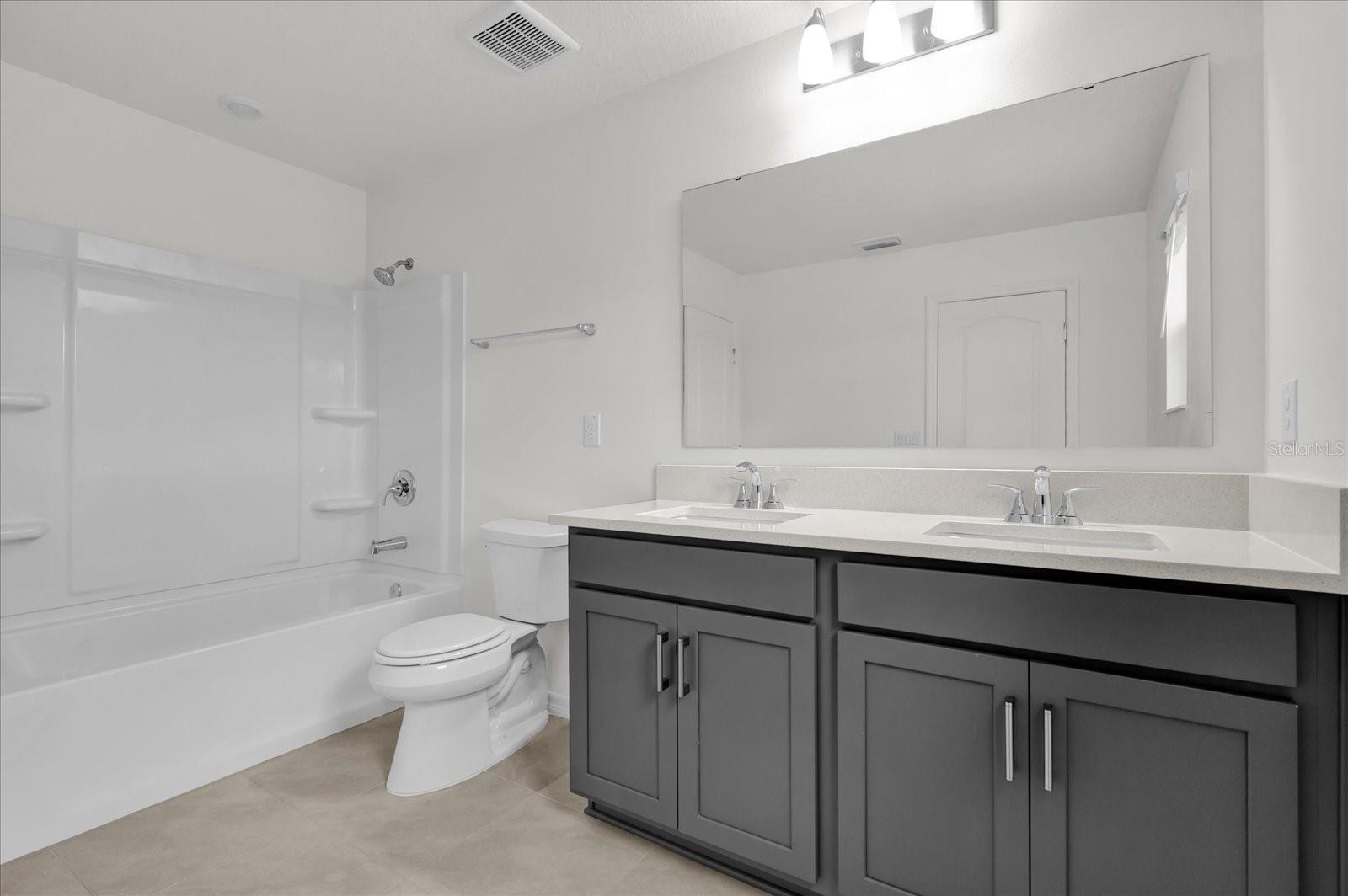 This impressive, two-story home showcases an open floor plan with 9-ft. first-floor ceilings, a spacious great room and tile flooring throughout main and wet areas. The well-appointed kitchen boasts an island, pantry, 36-in. upper cabinets, granite countertops, a Moen® faucet, Whirlpool® stainless steel appliances and a Kohler® sink. Upstairs, enjoy the convenience of a dedicated laundry room. The primary suite features a walk-in closet and connecting bath that offers a dual-sink vanity and relaxing tub.