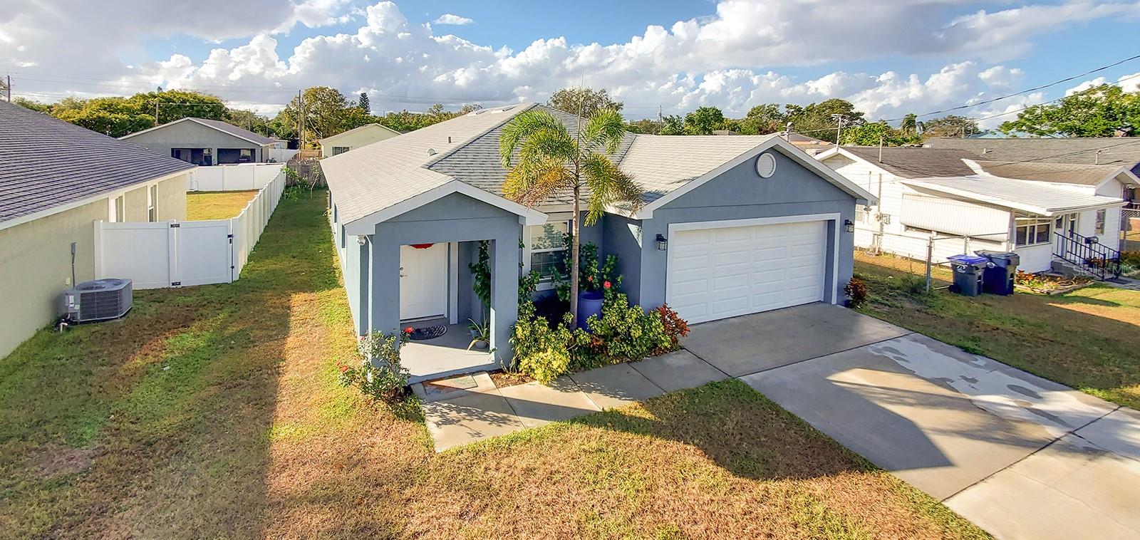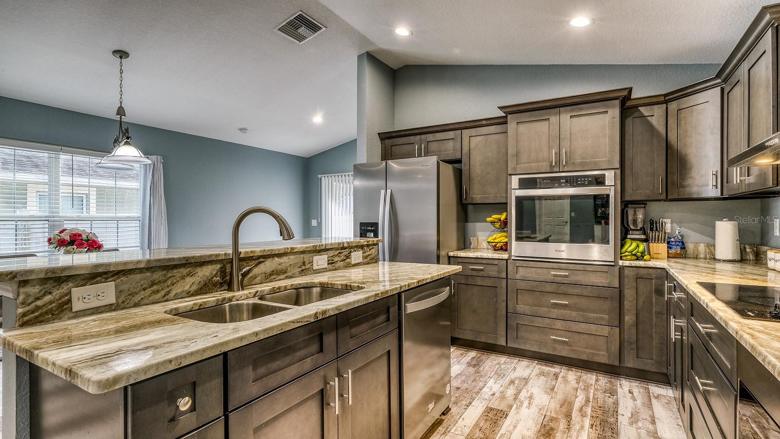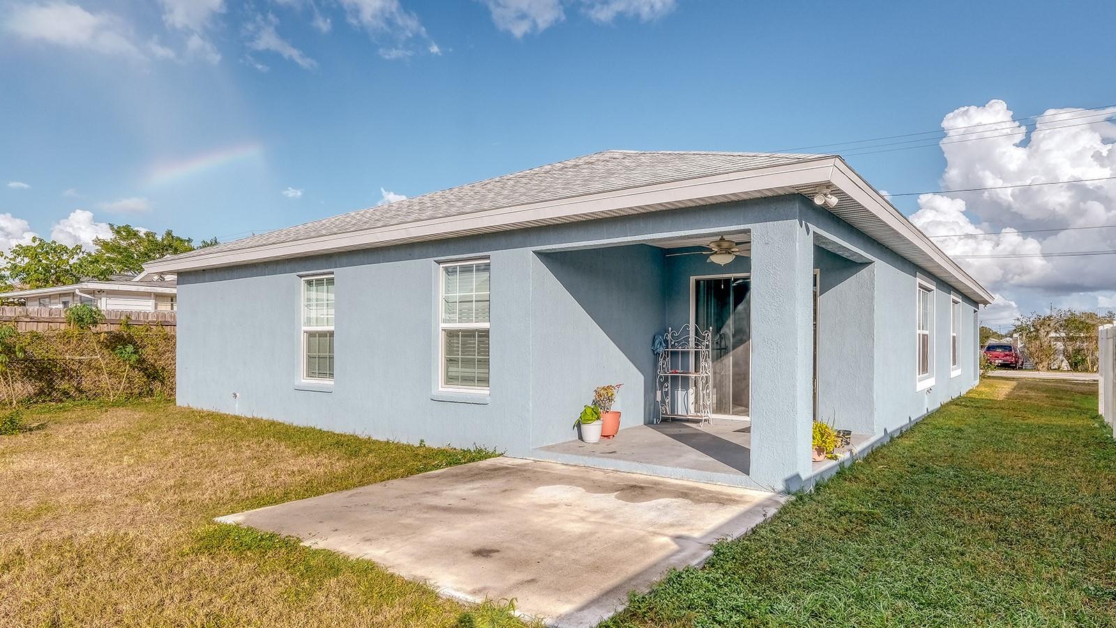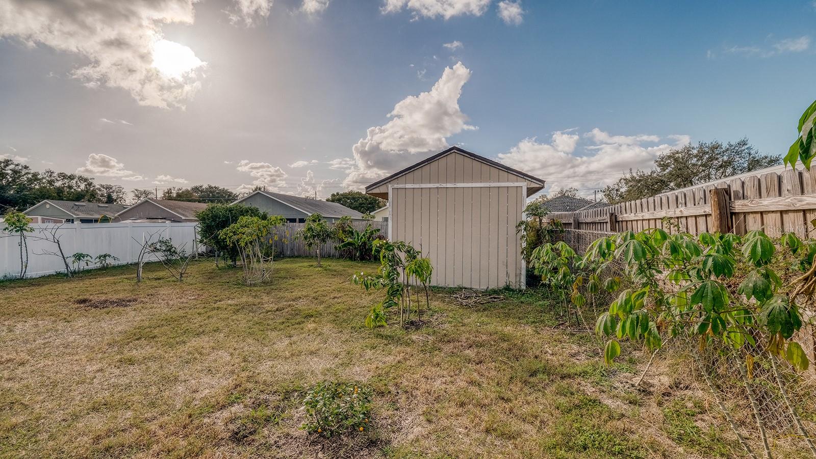 Welcome home! NO HOA! You can gather friends and family at the heart of the house offering OPEN-FLOOR PLAN | VAULTED CEILINGS | KITCHEN FEATURING stainless steel appliances, electric cooktop, stainless steel wall oven, stainless steel range hood, built-it microwave cabinet, upgraded walk-in tile shower and tub surround, built-in island sink with raised bar and dishwasher, vinyl plank flooring throughout, BEDROOM RETREAT with free-standing garden tub offering a cozy ambiance. Property includes a build in SHED built on a CONCRETE SLAB offering 12X14 additional storage space. Enjoy COVERED LANAI valuable addition where you can unwind and bask in the beauty of the outdoors. WALKING DISTANCE to schools, restaurants, shopping and dining. SHORT DRIVE to WORLD—CLASS attractions, major roads, shopping and dining!