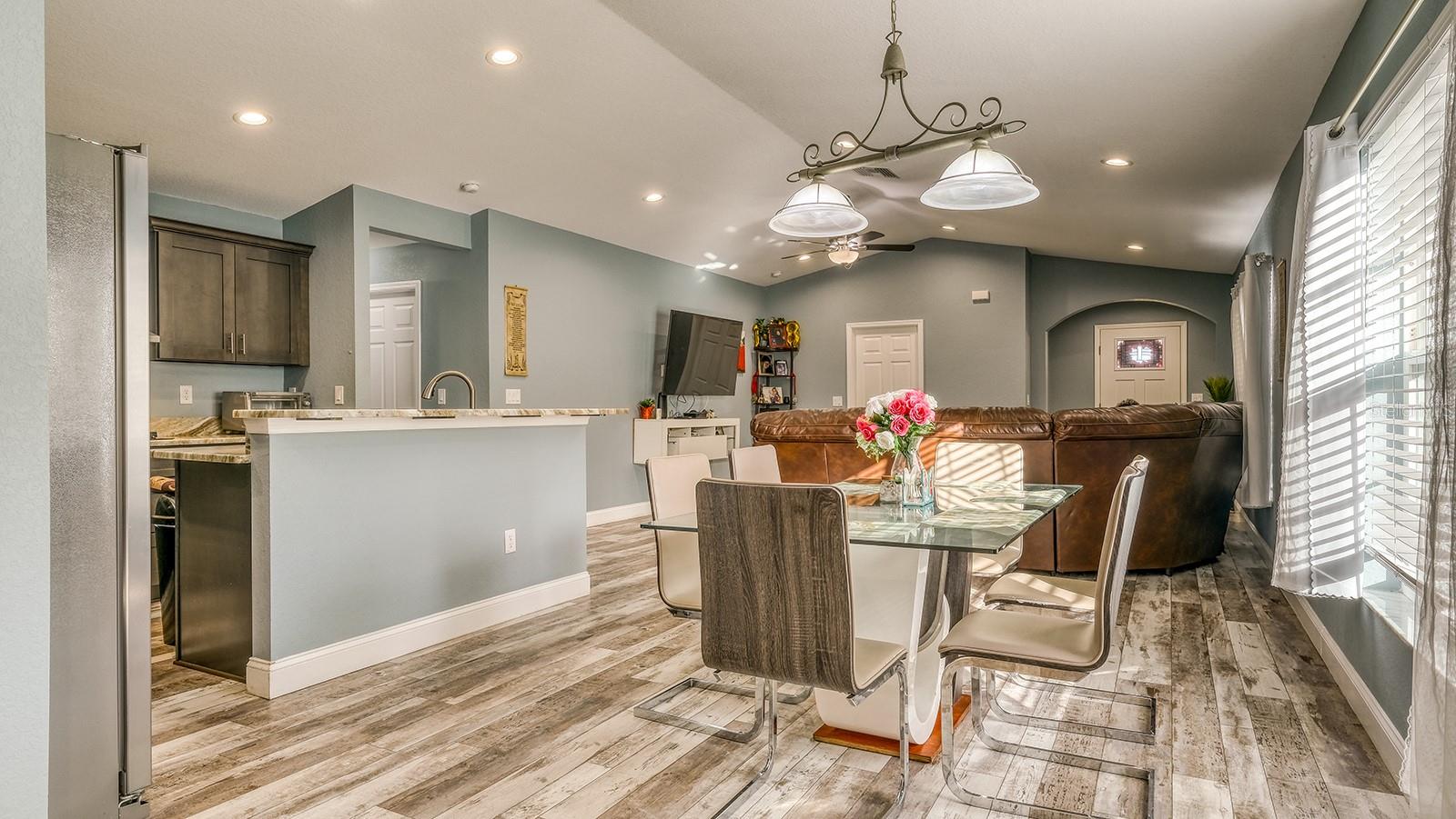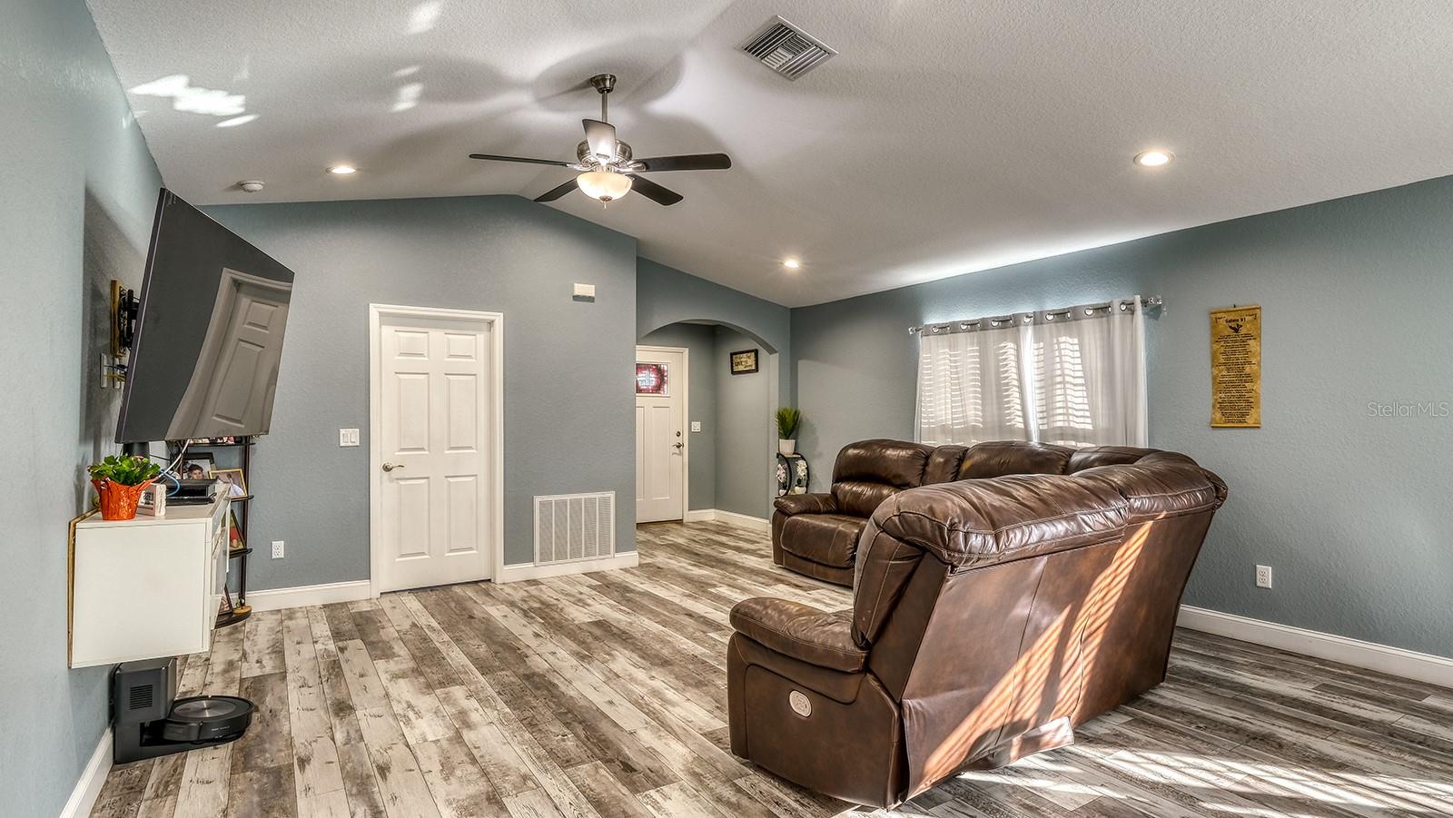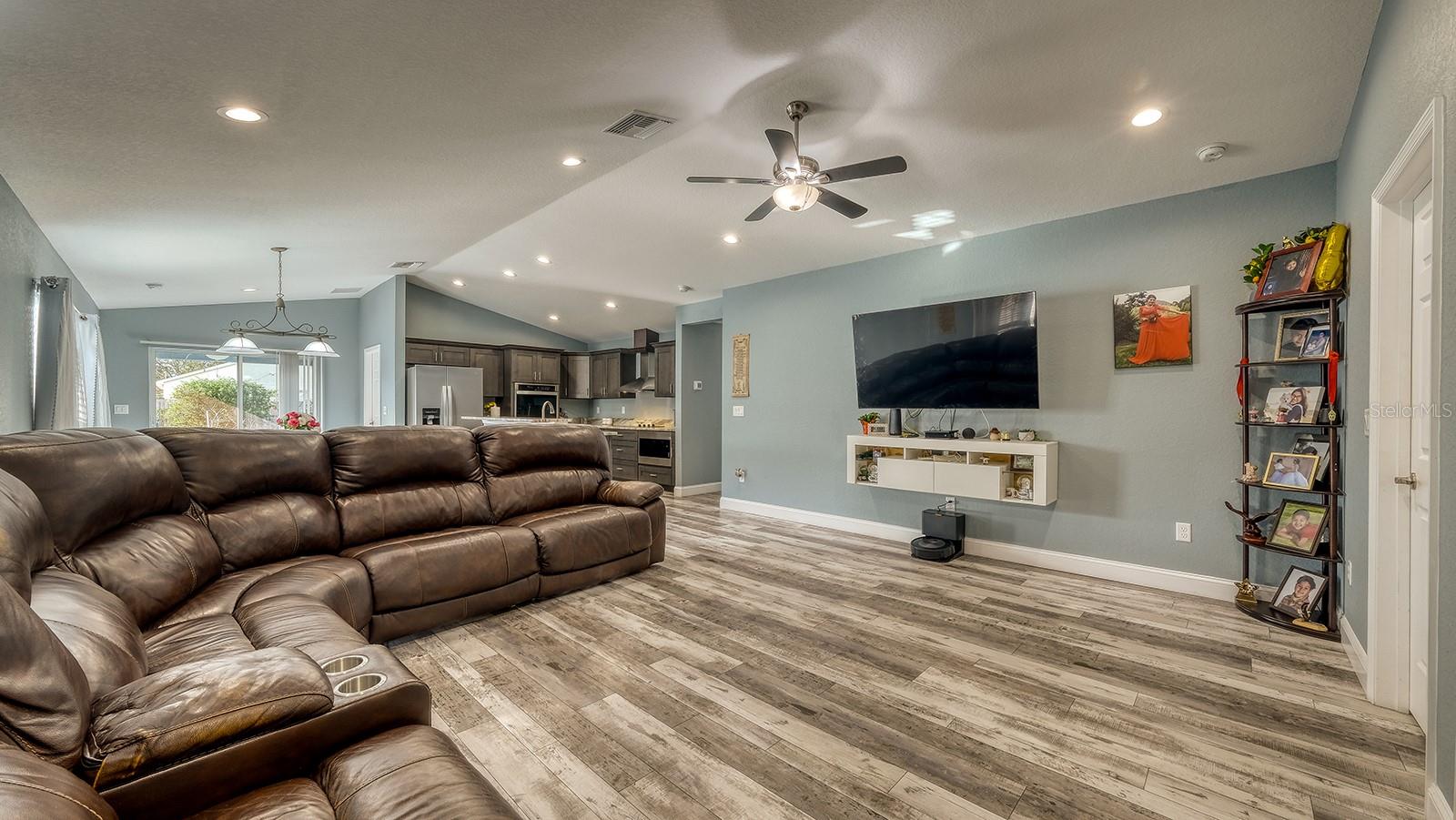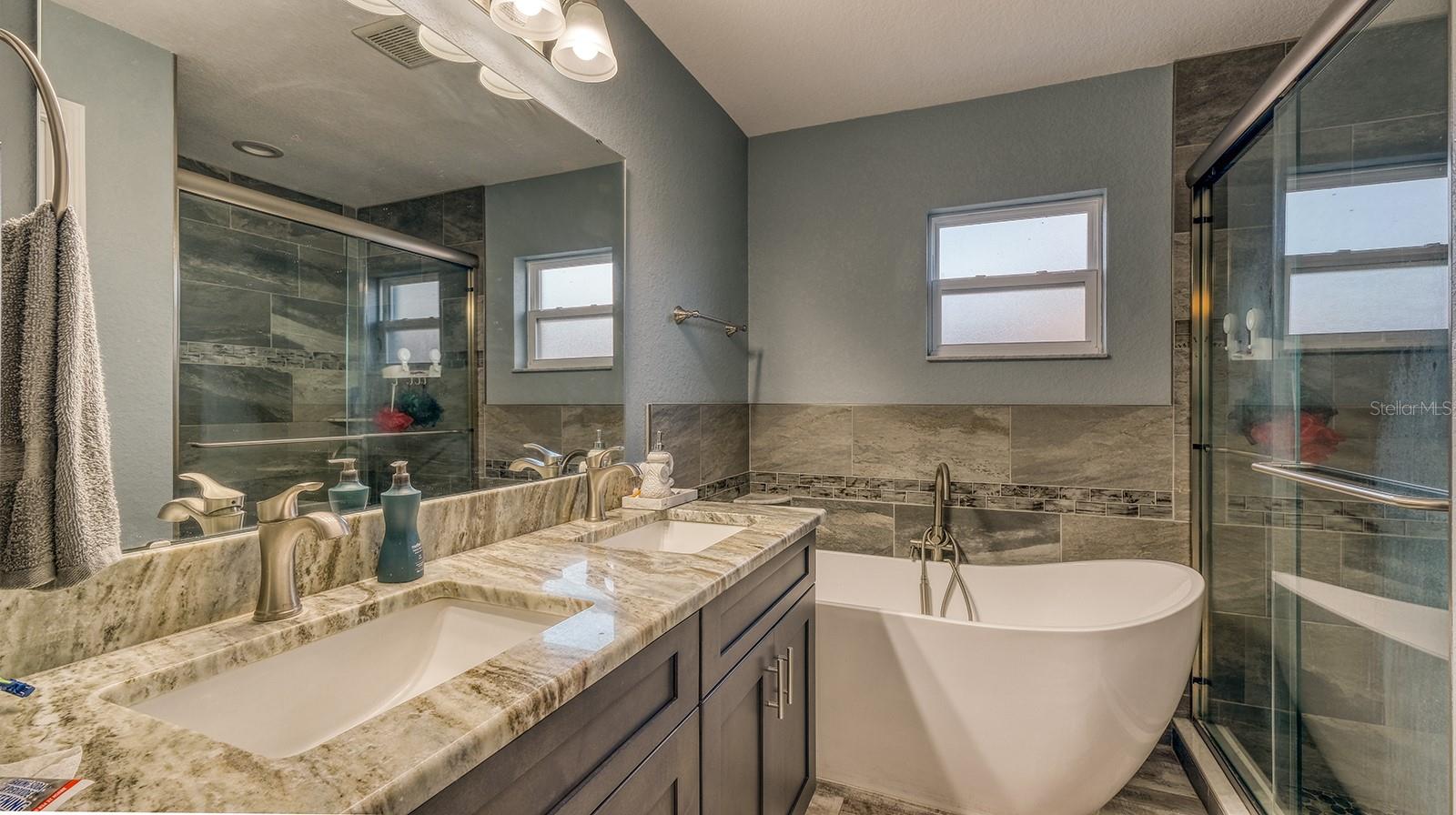 Welcome home! NO HOA! You can gather friends and family at the heart of the house offering OPEN-FLOOR PLAN | VAULTED CEILINGS | KITCHEN FEATURING stainless steel appliances, electric cooktop, stainless steel wall oven, stainless steel range hood, built-it microwave cabinet, upgraded walk-in tile shower and tub surround, built-in island sink with raised bar and dishwasher, vinyl plank flooring throughout, BEDROOM RETREAT with free-standing garden tub offering a cozy ambiance. Property includes a build in SHED built on a CONCRETE SLAB offering 12X14 additional storage space. Enjoy COVERED LANAI valuable addition where you can unwind and bask in the beauty of the outdoors. WALKING DISTANCE to schools, restaurants, shopping and dining. SHORT DRIVE to WORLD—CLASS attractions, major roads, shopping and dining!