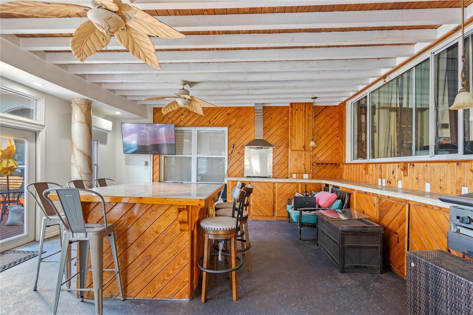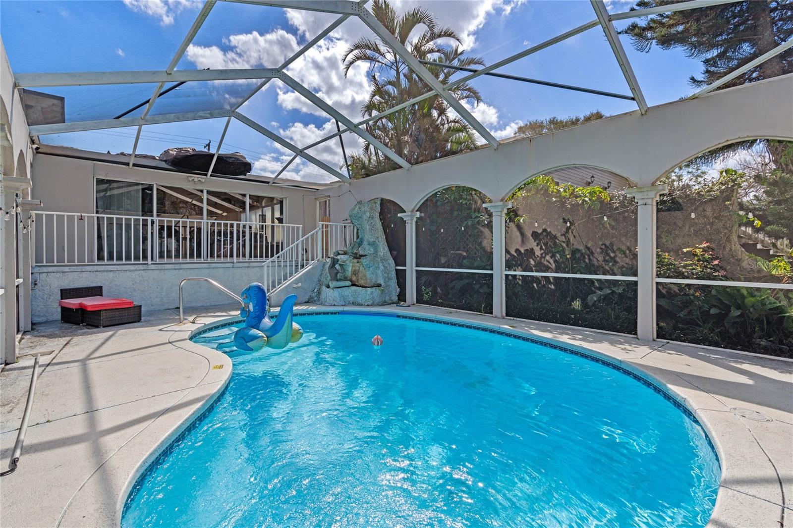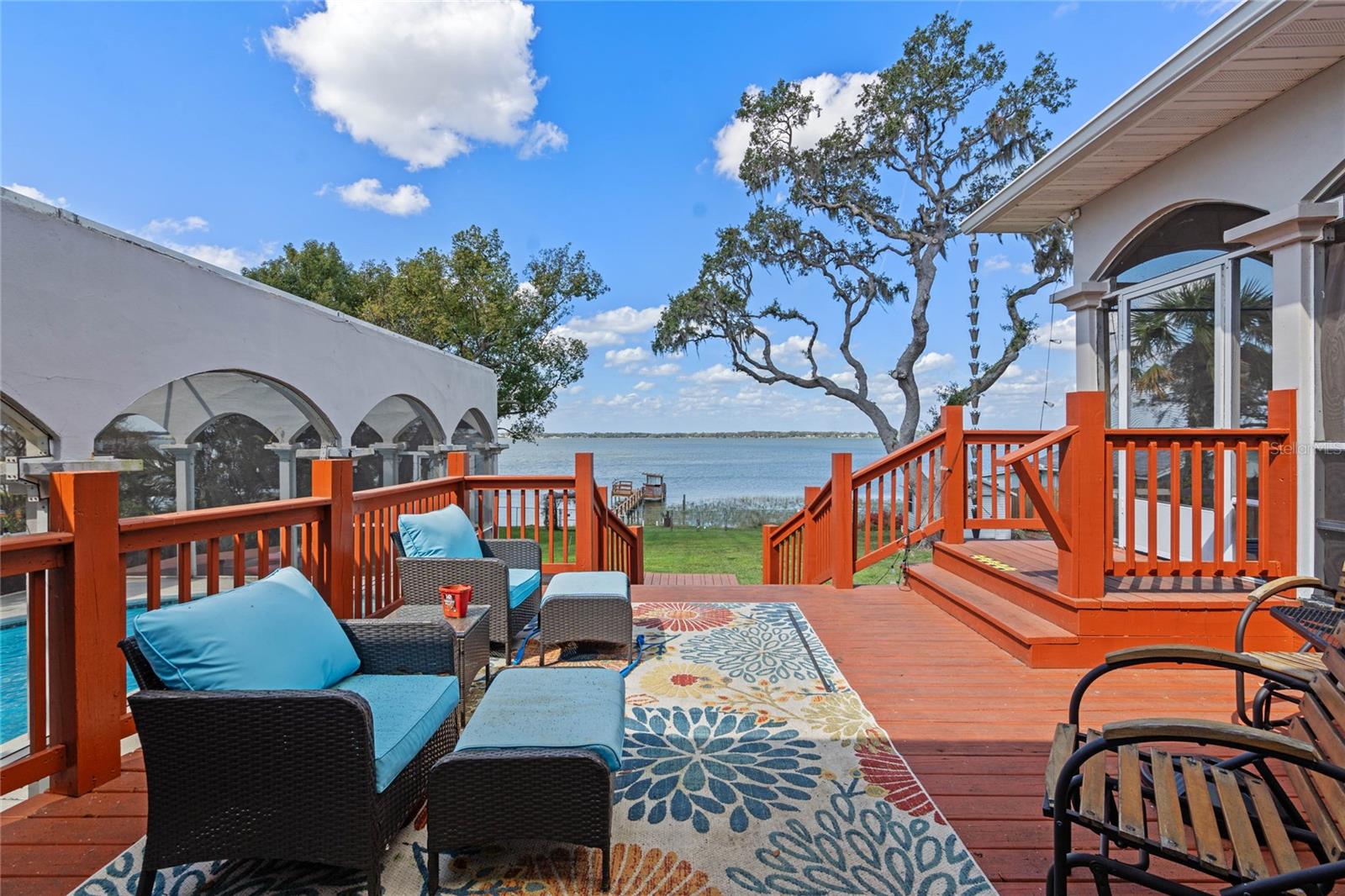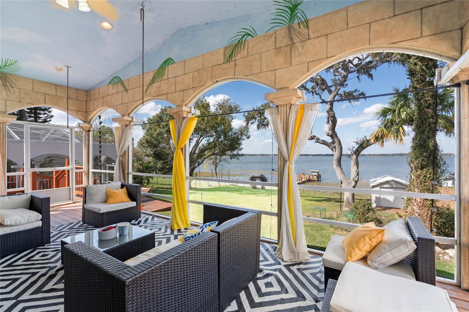 Welcome to 331 Bay Street, a stunning true lakefront retreat with over 100 feet of frontage on the shores of Lake Ariana. This one-of-a-kind home blends Key West charm with luxurious custom features, offering an unparalleled waterfront lifestyle. This home features three bedrooms, three bathrooms, and three kitchens, designed for both comfort and entertaining. It includes two master suites, each offering space and privacy. The bonus room is equipped with a Show Guns griddle, a gas range, a small refrigerator, and a large island. The Florida Room includes a Jenn-Air grill, allowing for game-day cooking while enjoying the views. Artistic woodwork and indoor waterfalls add to the home's distinctive character. The luxury master suite includes a spa-like bathroom with a Jacuzzi tub and a hidden, spacious closet. Expansive outdoor living areas include multiple decks, screened-in porches, and an outdoor kitchen complete with ice machines, refrigerators, and two fireplaces. The screened-in pool area features a waterfall, creating a resort-style atmosphere. A long private dock extends to a Tiki Bar equipped with electricity, water, and music, making it the perfect gathering spot for relaxing lakeside or socializing with neighbors arriving by boat. The home also includes a security system for added peace of mind. Owner recently replaced one of the back flat roofs with a new roof. Contact us today to schedule a private tour of this incredible lakefront property.