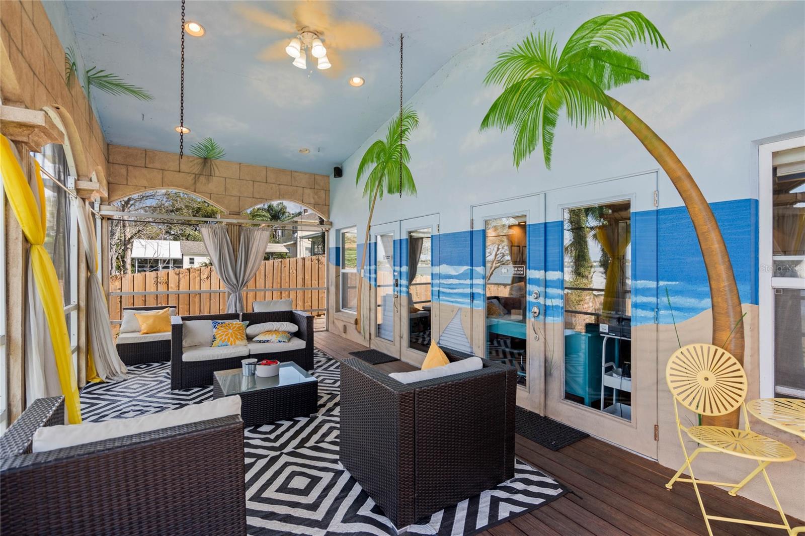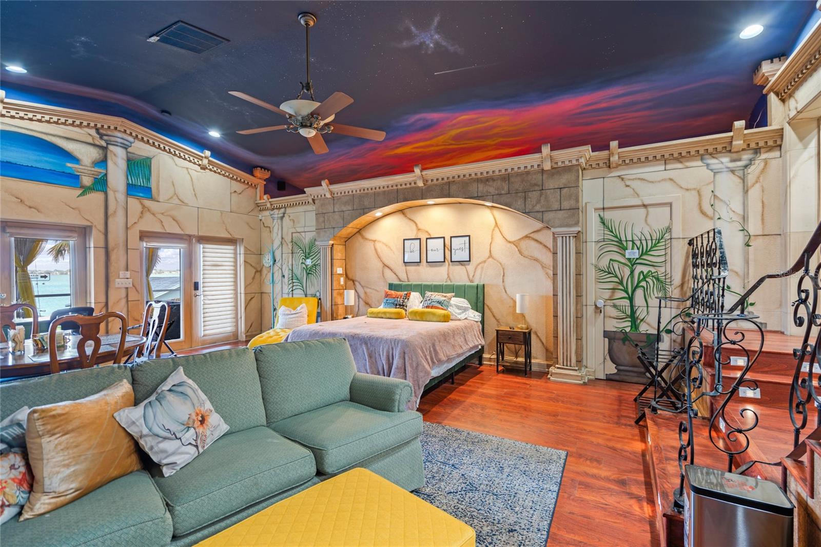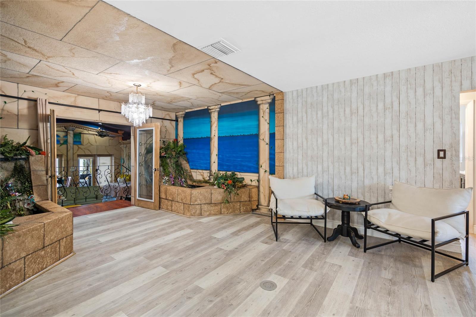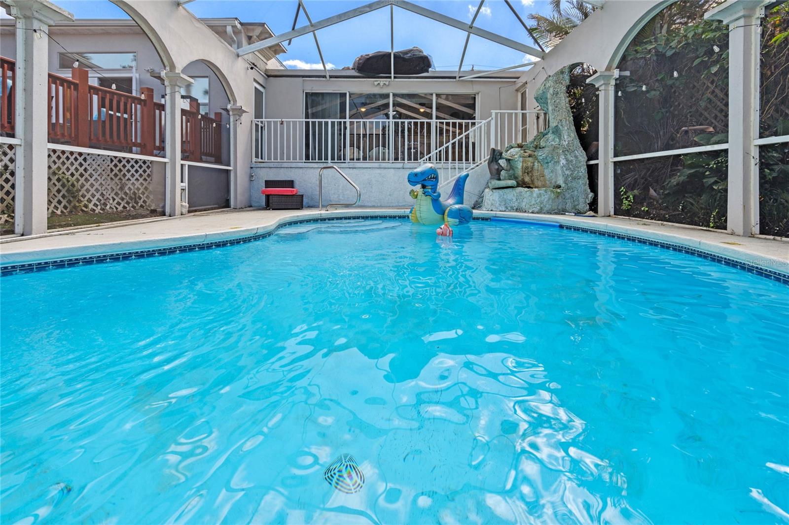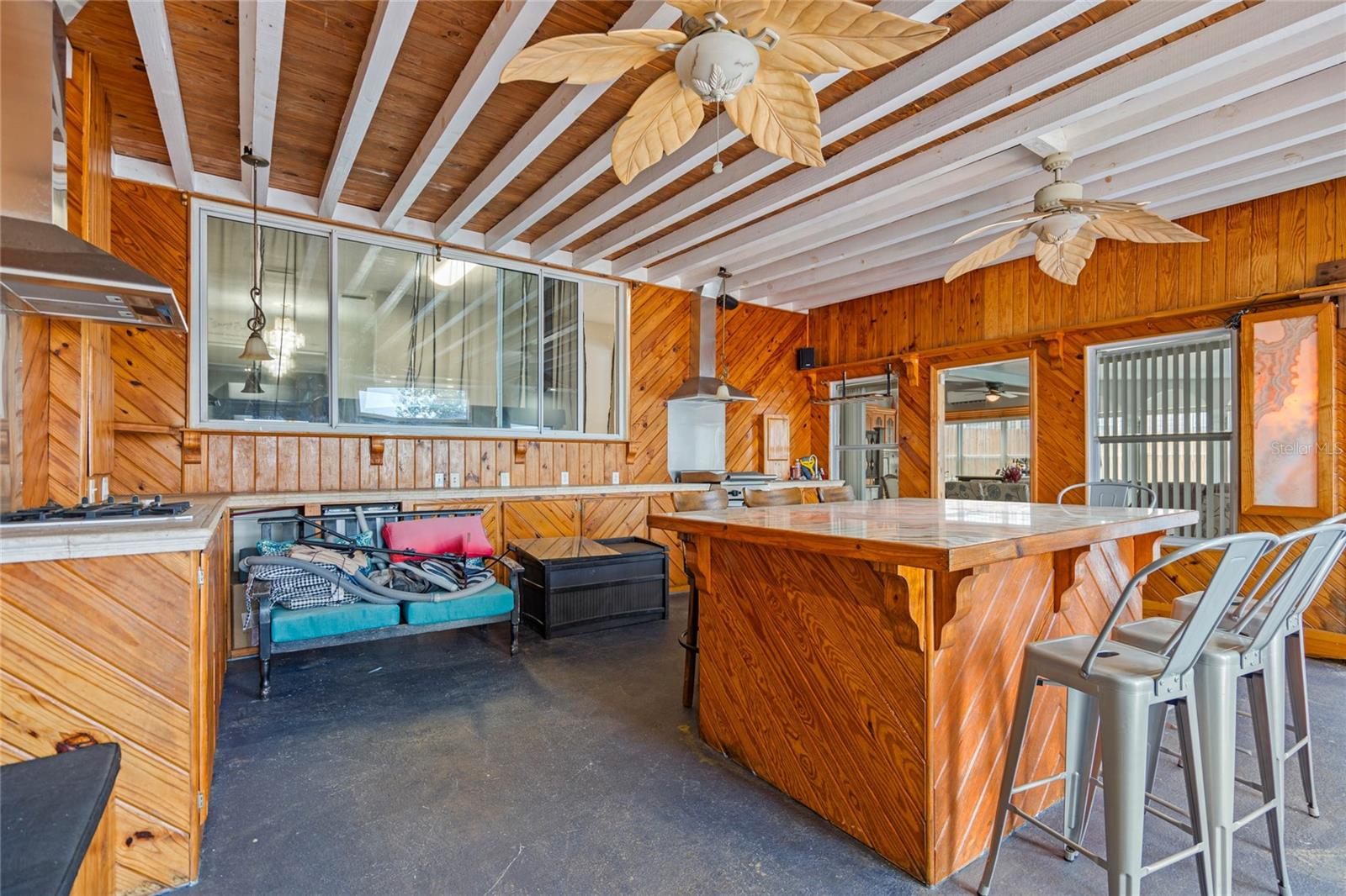 Welcome to 331 Bay Street, a stunning true lakefront retreat with over 100 feet of frontage on the shores of Lake Ariana. This one-of-a-kind home blends Key West charm with luxurious custom features, offering an unparalleled waterfront lifestyle. This home features three bedrooms, three bathrooms, and three kitchens, designed for both comfort and entertaining. It includes two master suites, each offering space and privacy. The bonus room is equipped with a Show Guns griddle, a gas range, a small refrigerator, and a large island. The Florida Room includes a Jenn-Air grill, allowing for game-day cooking while enjoying the views. Artistic woodwork and indoor waterfalls add to the home's distinctive character. The luxury master suite includes a spa-like bathroom with a Jacuzzi tub and a hidden, spacious closet. Expansive outdoor living areas include multiple decks, screened-in porches, and an outdoor kitchen complete with ice machines, refrigerators, and two fireplaces. The screened-in pool area features a waterfall, creating a resort-style atmosphere. A long private dock extends to a Tiki Bar equipped with electricity, water, and music, making it the perfect gathering spot for relaxing lakeside or socializing with neighbors arriving by boat. The home also includes a security system for added peace of mind. Owner recently replaced one of the back flat roofs with a new roof. Contact us today to schedule a private tour of this incredible lakefront property.
