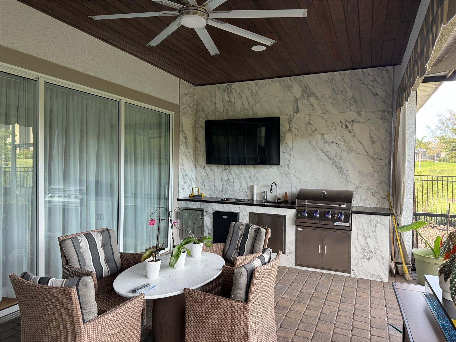 Nestled within the exclusive and highly sought after Water Ridge gated community, this Custom-built by the award-winning Hulbert Homes with numerous upgrades offers a split floor plan exudes elegance and charm from every angle. Open-concept living space with built-in shelving, crown molding, upgraded custom PVC blinds and panoramic sliders and oversize windows in the kitchen/nook area allowing an abundance of natural light. Energy efficient with no need for solar panels as the current owners pay an average of no more than $180/mo. in power charges (based on year 2024). High Ceilings with wood-like ceilings in the foyer and family room. The chef’s kitchen features stainless steel appliances, a double oven and granite counter tops. The Master Suite is a true retreat featuring a spacious bedroom with His & Hers walk-in & built-in closets, ensuite spacious bathroom. The indoor utility room boasts a convenient sink and cabinets throughout providing you practical space for laundry and other cleaning needs. Huge covered back porch with built in grill, sink and wall TV for great entertainment. Also features a dog run area. You could not be in a convenient and better location between Tampa and Orlando. The Water Ridge community presents you a premier lifestyle characterized by lakefront elegance and an array of resort-style amenities. Relax and enjoy 3 lakes, 3 resort-style pools, a state-of-the-art fitness center with a sauna and showers, basketball/volleyball courts, pickle ball and tennis courts, and a stunning clubhouse. In addition, Water Ridge offers you unique advantages with exclusive 2 private lake access and 3 fishing docks for you to enjoy both sides of the community and an on-site boat/RV storage area.