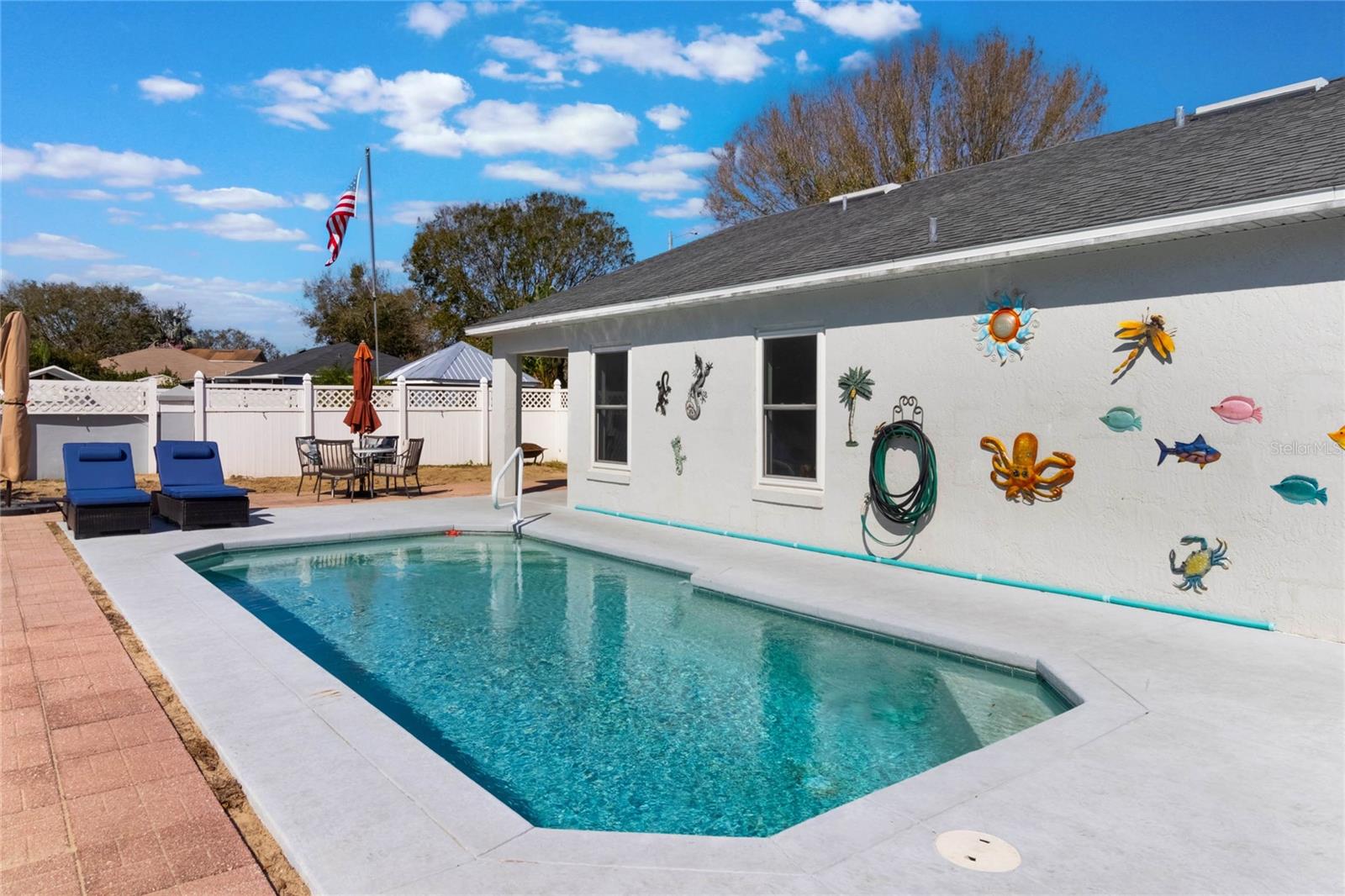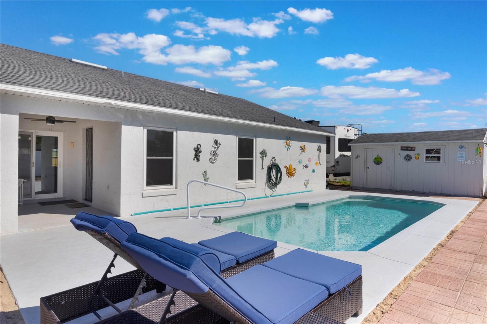 Welcome to this beautiful 3/2 pool home in Auburndale. Featuring a fully renovated kitchen with brand-new cabinets, countertops, and appliances, seamlessly flowing into the freshly painted, open-concept family and dining areas. Step outside to your private backyard oasis, complete with an oversized saltwater pool, a newer pool pump (July 2023), a new pool filter (2024), a new timing unit (2024), and a new salt cell (2025). The spacious backyard also includes a shed, perfect for storage, and plenty of room for extra storage or RV parking. Stay comfortable year-round with a brand-new A/C unit (October 2024). The garage features a pull-down screen, allowing for airflow while keeping the bugs out—ideal for projects or extra workspace. Don't miss this move-in ready gem—schedule your showing today!