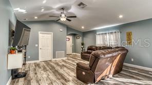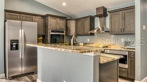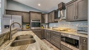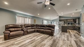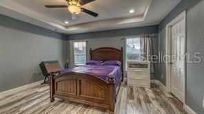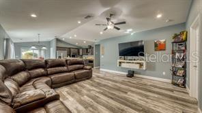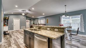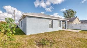 Welcome home! NO CDD and NO HOA! You can gather friends and family at the heart of the house offering OPEN-FLOOR PLAN | VAULTED CEILINGS | TRAY CEILING | KITCHEN FEATURING stainless steel appliances, electric cooktop, stainless steel wall oven, stainless steel range hood, built-it microwave cabinet, upgraded walk-in tile shower and tub surround, built-in island sink with raised bar and dishwasher, vinyl plank flooring throughout, BEDROOM RETREAT with free-standing garden tub offering a cozy ambiance. Property includes a build in SHED built on a CONCRETE SLAB offering 12ftX16ft for additional storage space. Enjoy COVERED LANAI valuable addition where you can unwind and bask in the beauty of the outdoors. WALKING DISTANCE to schools, restaurants, shopping and dining. SHORT DRIVE to WORLD—CLASS attractions, major roads, shopping and dining!