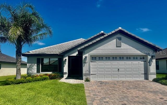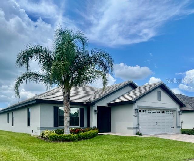 Welcome to your well-maintained dream home with over $30,000 in upgrades already completed for you. The exterior features a paver driveway that has been widened and an easy to maintain irrigation system that has been upgraded after construction. Tile roof completes the look of this quality home. Step inside a light and inviting open floor plan with neutral floor tile in all the common areas and continuing on to the primary suite. Bedrooms 2 and 3 have carpet. The kitchen features granite countertops and newly added GE profile convection/induction stove and dishwasher. The spacious primary suite also features a tray ceiling with professionally added closet organization features. Step outside to enjoy the extended paver lanai with privacy screens for your very own relaxing oasis. The community is gated, has a gorgeous clubhouse with fitness center, pool overlooking the lake, playground area and tennis courts.