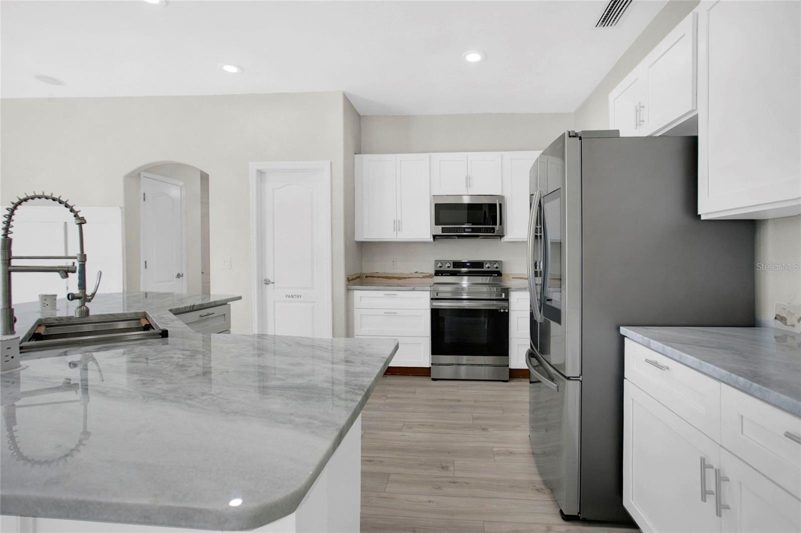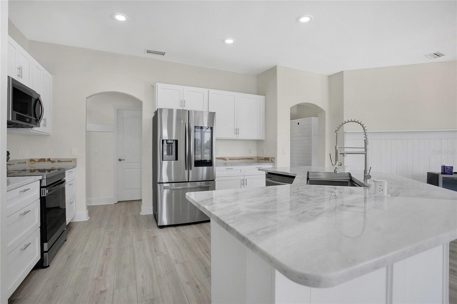 Nestled in a quiet cul-de-sac in the highly sought-after Estates of Auburndale, this breathtaking 4-bedroom, 3-bathroom pool home is ready for you to call it home. NEW Roof 2023, AC 2021. Step inside and fall in love with the open-concept layout, flooded with natural light and adorned with custom details like shiplap, wainscoting, and tray ceilings, creating that perfect blend of cozy charm and high-end appeal. The heart of the home is the stunning kitchen, featuring 42” wood cabinets, stainless steel appliances, and a large island/bar ideal for entertaining or gathering with family. The split-bedroom floor plan provides privacy for the spacious master suite, which offers dual walk-in closets, dual vanities, a soaking tub, and a walk-in shower—your very own private retreat. Step outside to your screened-in pool and patio oasis, complete with tranquil pond views and a soothing fountain. Whether you're hosting friends or simply enjoying a peaceful Florida afternoon, this outdoor space is sure to be your favorite escape. The Estates of Auburndale is a gated, amenity-rich community featuring a resort-style pool, kiddie pool, basketball court, playground, and a unique tortoise preserve with walking trails. Known for its beautiful oak-lined streets and vibrant neighborhood events, this community truly stands out. Ideally located near I-4 for an easy commute to both Orlando and Tampa, this home offers the best of both convenience and serenity. Don’t miss your chance to own this exceptional home—schedule your private showing today and discover why one step through the front door will make you feel right at home!